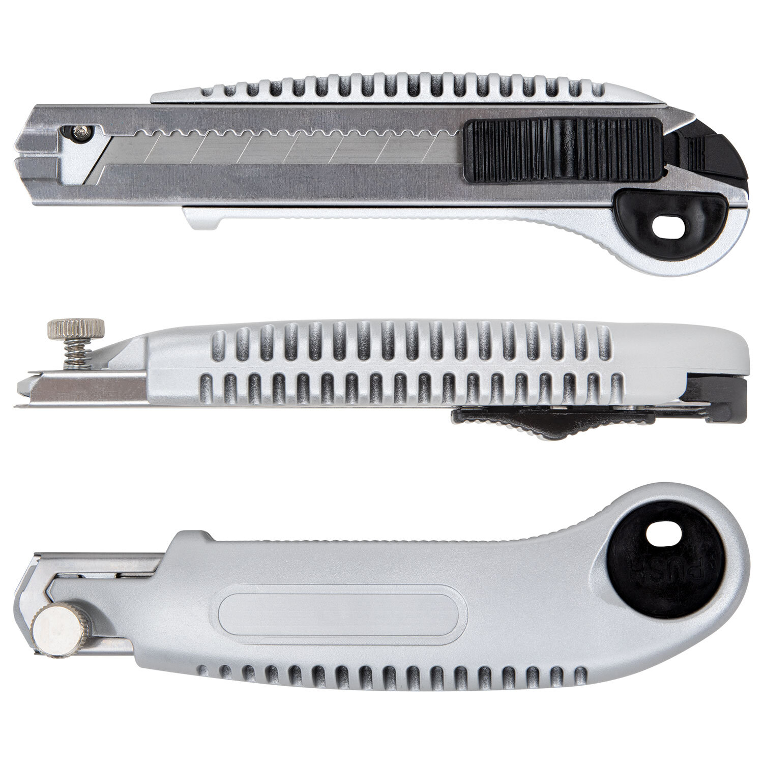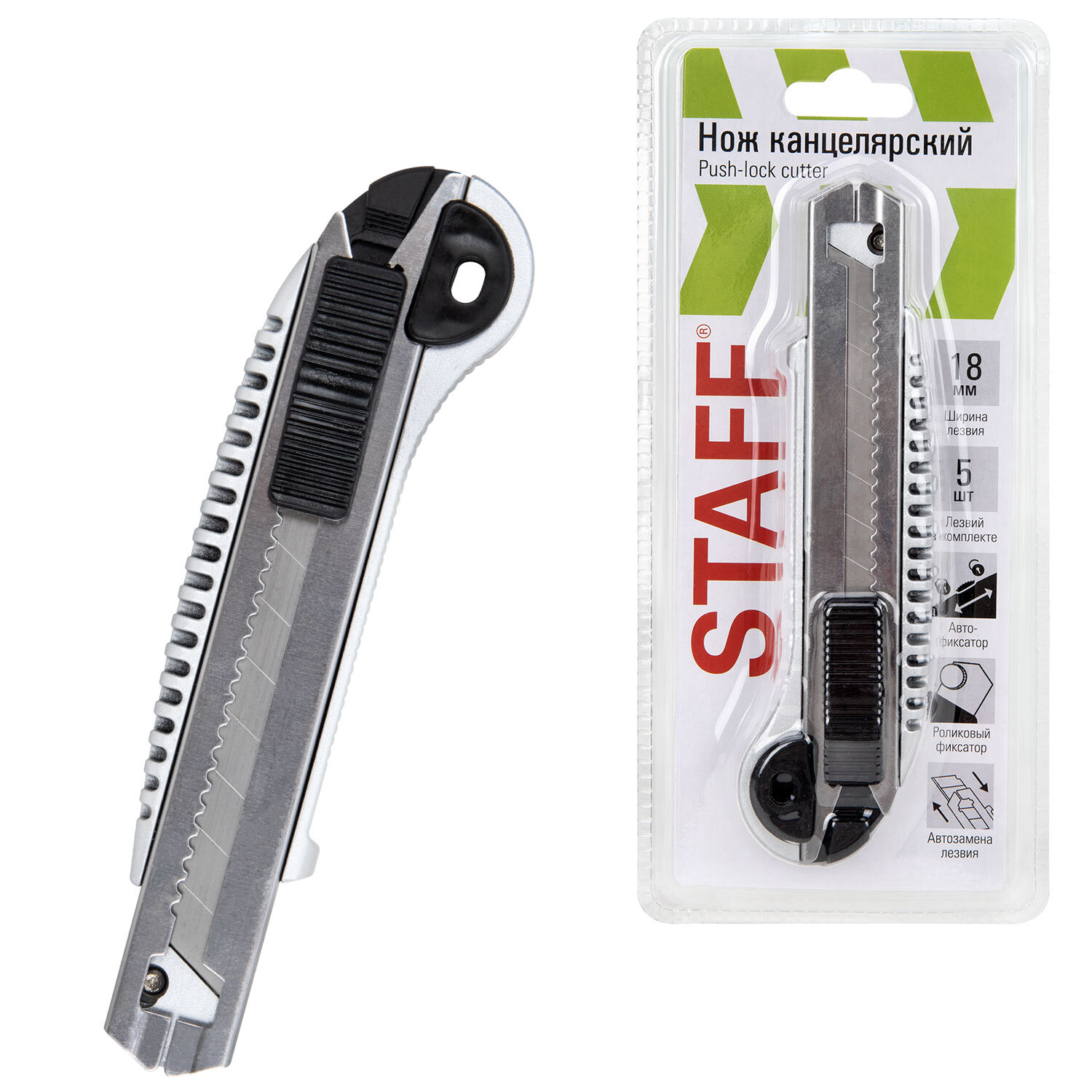 Нож канцелярский 18 мм, 5 лезвий в комплекте, автофиксатор, металлический цвет, STAFF Код товара: 273930 300,2 ₽ Купить Производитель:STAFF Канцелярский нож STAFF – универсальный, удобный и простой инструмент, который применяется во многих сферах: на складе, в офисе, строительстве, производстве, творчестве и дома. Предназначен для резки различных материалов разной плотности и толщины. Благодаря своей обтекаемой форме нож удобно держать в руке. Пластиковый корпус гарантирует безопасность применения. Автофиксатор позволяет закрепить лезвие в нужном положении с помощью защелки. Для того, чтобы хранить и переносить инструмент было проще, в корпусе имеется небольшое отверстие. Нож усилен металлическими направляющими, которые надежно удерживают лезвие шириной 18 мм и позволяют выдерживать большую нагрузку. Чтобы восстановить функциональность инструмента из-за затупившегося лезвия, необходимо обломать его по наклонной метке на поверхности лезвия. При этом его нужно выдвинуть только на одно деление. В щель на снятой крышке необходимо поместить затупившийся край лезвия ножа. Инструмент нужно держать в руках таким образом, чтобы лезвие было обращено вверх той стороной, где нет разделительных меток. После этого необходимо согнуть лезвие по линии излома ОТ СЕБЯ. При этом затупившийся обломок остаётся в щели крышки, а инструмент вновь становится пригодным к полноценной работе.Производство: КитайШирина лезвия: 18 ммКоличество ножей в комплекте: 1 шт.Количество запасных лезвий в комплекте: 5 шт.Тип механизма фиксации: система блокировки лезвияМатериал корпуса: пластикНаличие металлических направляющих: даОтверстие для подвеса: даАвтоматическая замена лезвия из обоймы: даЦвет корпуса: MetallicУпаковка: блистер с европодвесомВес: 144 грРазмер упаковки: 3.5 × 21.6 × 9.7 смОбъём: 0.0007 м3Промежуточная упаковка: 6 штТранспортная упаковка: 72 штШтрих-код: 4606224502250 Файлы Сертификат-1.jpg Сертификат-2.jpg Сертификат-3.jpg Сертификат-4.jpg Сертификат-5.jpg Сертификат-6.jpg Сертификат-7.jpg Сертификат-8.jpg Сертификат-9.jpg Сертификат-10.jpg Сертификат-11.jpg Сертификат-12.jpg Сертификат-13.jpg Сертификат-14.jpg Сертификат-15.jpg Сертификат-16.jpg Сертификат-17.jpg Сертификат-18.jpg Сертификат-19.jpg Сертификат-20.jpg Сертификат-21.jpg Сертификат-22.jpg Сертификат-23.jpg Сертификат-24.jpg Сертификат-25.jpg Сертификат-26.jpg Сертификат-27.jpg Сертификат-28.jpg