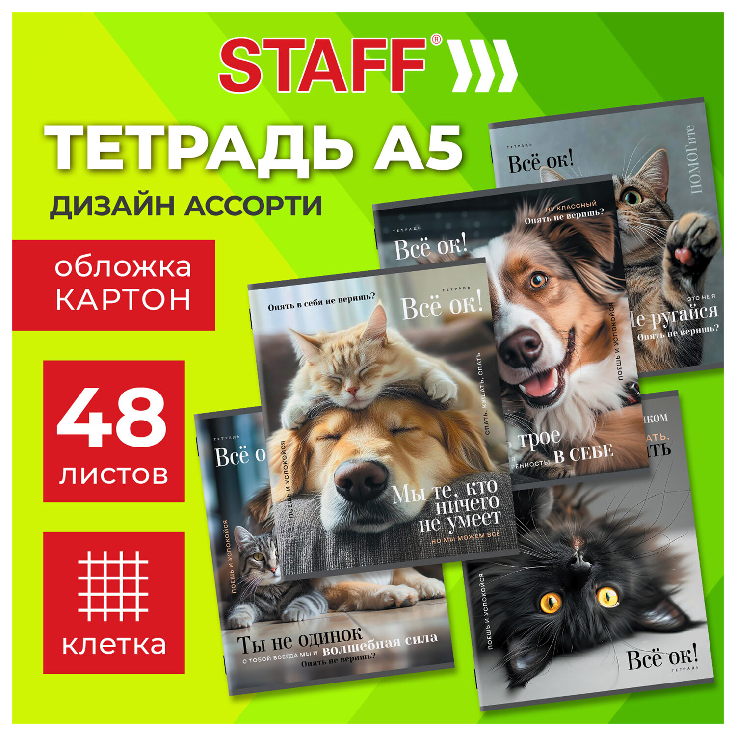 Тетрадь А5 48 л. STAFF "College", скоба, клетка, офсет №2 ЭКОНОМ, обложка картон, "ПУШИСТЫЕ ДРУЗЬЯ" Код товара: 405627 30,17 ₽ Купить Производитель:STAFF Удобная, практичная тетрадь для учебы и работы. Поставляется в нескольких вариантах цвета (без возможности выбора). Внутренний блок из офсетной бумаги с серым оттенком. Общая тетрадь формата А5 содержит 48 листов с линовкой в клетку и полями, универсальна для любых записей и даже небольших зарисовок. Скрепка плотно соединяет листы, которые при желании можно аккуратно вырвать. Обложка изготовлена из картона плотностью 190 г/м2. Внутренний блок – типографская бумага плотностью 60 г/м2. Поставляется в одном или нескольких вариантах дизайна без возможности выбора. Это товар эконом-сегмента, поэтому он отличается привлекательной ценой. Товар обладает базовым набором характеристик и простой упаковкой, при этом полностью соответствует основным требованиям потребителей.Производство: РоссияКоличество листов: 48Линовка блока: клеткаТип скрепления: скобаМатериал обложки: мелованный картонФормат: А5Наличие полей: даСерия: КартонДизайн: ПУШИСТЫЕ ДРУЗЬЯЦвет бумаги блока: офсет №2Плотность внутреннего блока: 60 г/м2Белизна: 65 %Товар относится к сегменту ЭКОНОМ: даКоличество дизайнов в минимальной упаковке: 5 шт.Количество дизайнов в транспортной упаковке: 5 шт.Длина: 203 ммШирина: 165 ммВес: 110 грРазмер упаковки: 0.6 × 20.7 × 16.5 смОбъём: 0.0002 м3Промежуточная упаковка: 10 штТранспортная упаковка: 100 штШтрих-код: 4606224543642 Файлы Сертификат-1.jpg Сертификат-2.jpg Сертификат-3.jpg Сертификат-4.jpg