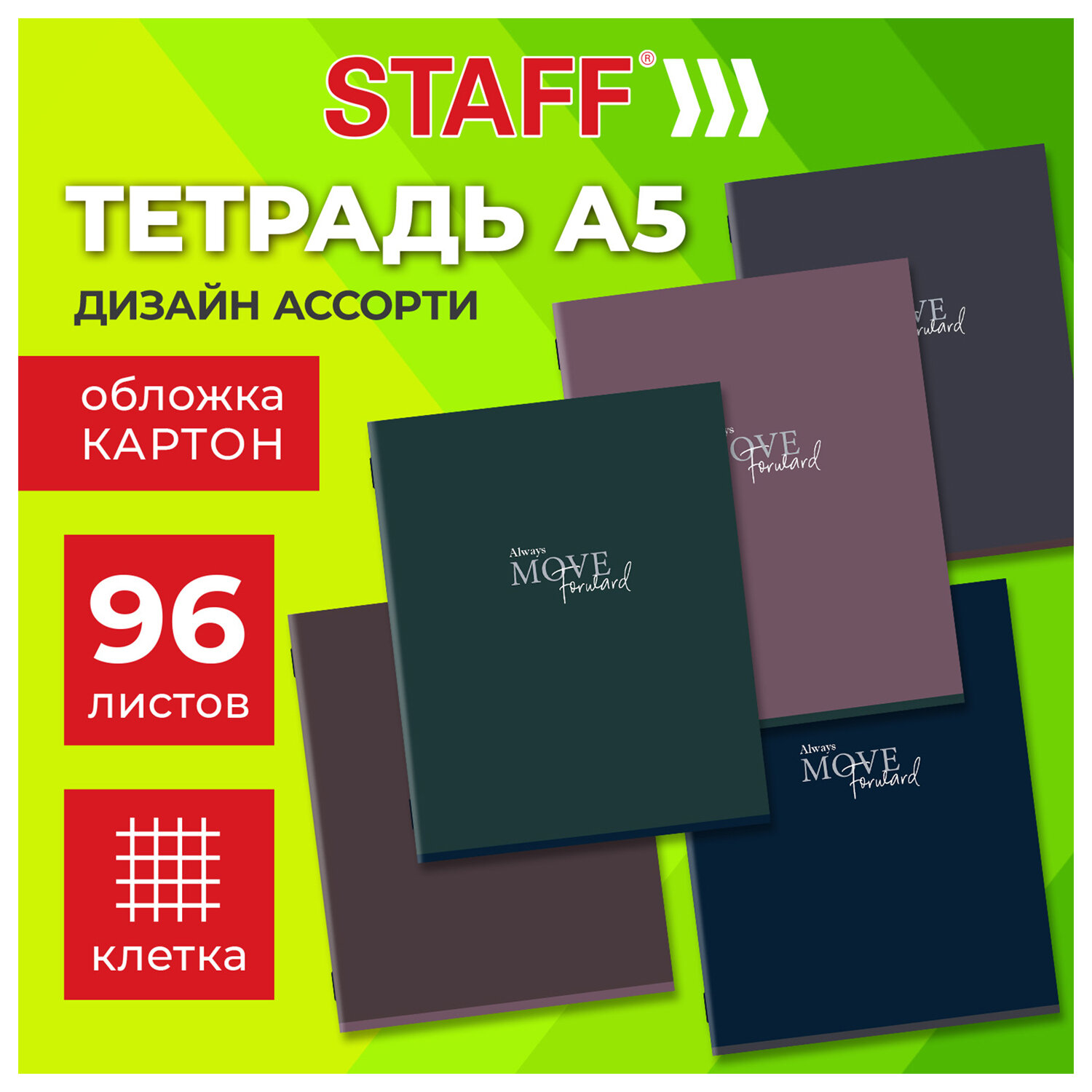 Тетрадь А5 96 л. STAFF "College", скоба, клетка, офсет №2 ЭКОНОМ, обложка картон, "МОНОКОЛОР" Код товара: 405631 54,23 ₽ Купить Производитель:STAFF Удобная, практичная тетрадь STAFF незаменима для учебы и работы. Отлично подходит для записей большого объема. Поставляется в нескольких вариантах цвета (без возможности выбора). Внутренний блок содержит 96 листов типографской бумаги плотностью 60 г/м2 с серым оттенком. Однотонная обложка выполнена из картона 190 г/м2. Линовка – клетка с полями. Скрепка надежно скрепляет листы между собой. Белизна – 65%. Формат А5. Поставляется в одном или нескольких вариантах дизайна без возможности выбора. Это товар эконом-сегмента, поэтому он отличается привлекательной ценой. Товар обладает базовым набором характеристик и простой упаковкой, при этом полностью соответствует основным требованиям потребителей.Производство: РоссияКоличество листов: 96Тип скрепления: скобаФормат: А5Материал обложки: мелованный картонЛиновка блока: клеткаНаличие полей: даСерия: КартонДизайн: МоноколорЦвет бумаги блока: офсет №2Плотность внутреннего блока: 60 г/м2Белизна: 65 %Товар относится к сегменту ЭКОНОМ: даОднотонный дизайн обложки: даКоличество дизайнов в минимальной упаковке: 5 шт.Количество дизайнов в транспортной упаковке: 5 шт.Длина: 203 ммШирина: 165 ммВес: 206 грРазмер упаковки: 1 × 20.6 × 16.4 смОбъём: 0.0004 м3Промежуточная упаковка: 5 штТранспортная упаковка: 50 штШтрих-код: 4606224543680 Файлы Сертификат-1.jpg Сертификат-2.jpg Сертификат-3.jpg Сертификат-4.jpg