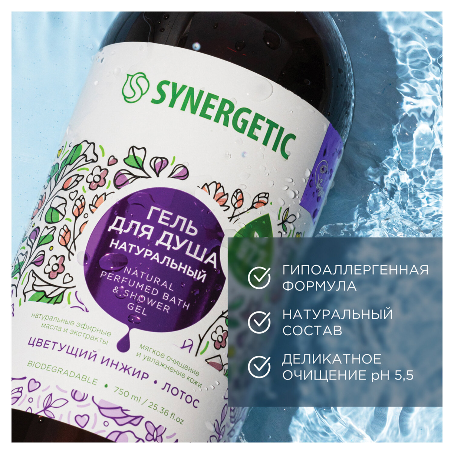 Растительные компоненты, натуральные масла, экстракты и уникальный аромат – вот рецепт парфюмированного геля для душа SYNERGETIC.