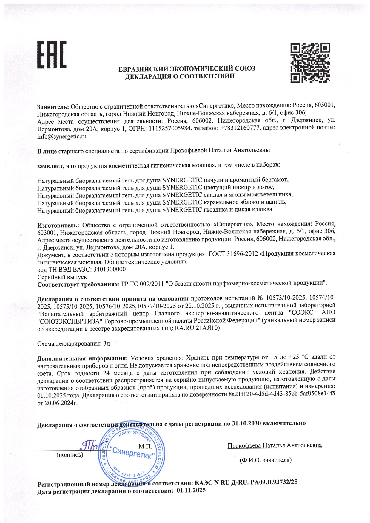 Растительные компоненты, натуральные масла, экстракты и уникальный аромат – вот рецепт парфюмированного геля для душа SYNERGETIC.