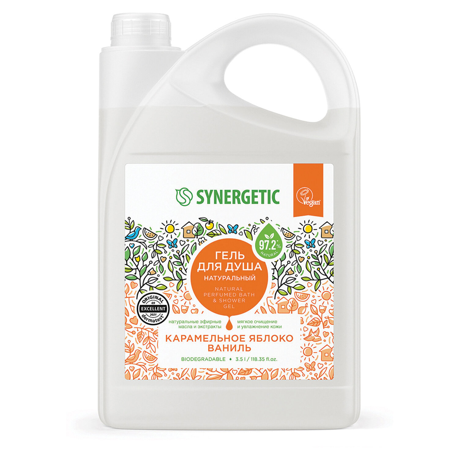 Гель дерматологически протестирован независимым исследовательским институтом Dermatest в Германии. Средство не содержит SLS, SLES, силиконов, минеральных масел, красителей и компонентов животного происхождения, не тестируется на животных и сертифицировано британской организацией The Vegan Society. Знак Vegan – мировой стандарт этичной продукции. Гель для душа биоразлагаемый, а значит не вредит микрофлоре септических установок и разлагается в условиях естественной среды.