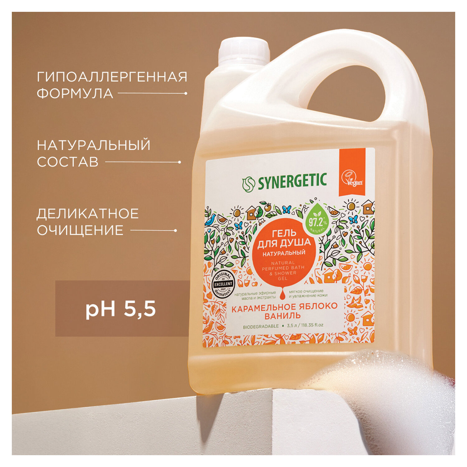 Растительные компоненты, натуральные масла, экстракты и уникальный аромат – вот рецепт парфюмированного геля для душа SYNERGETIC.