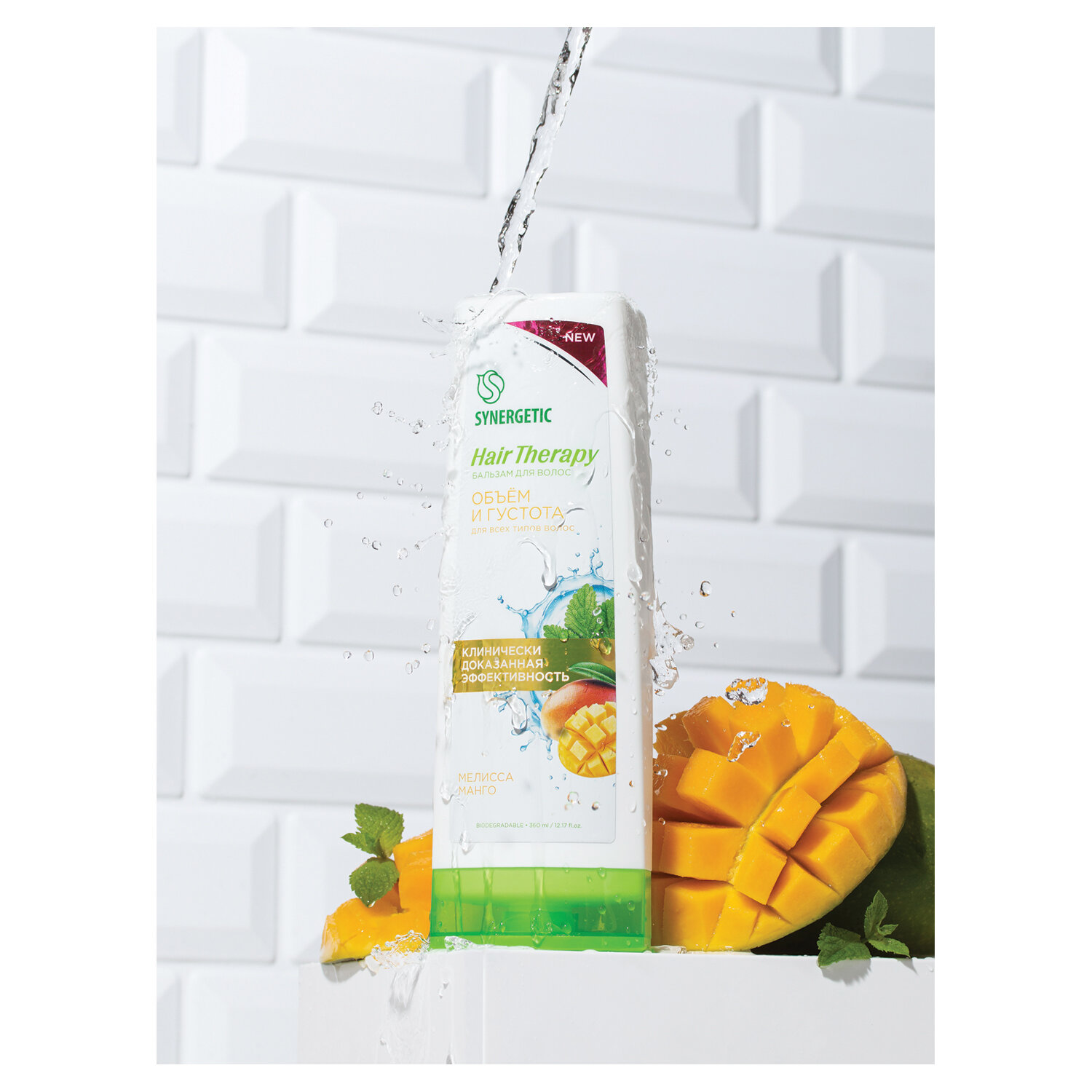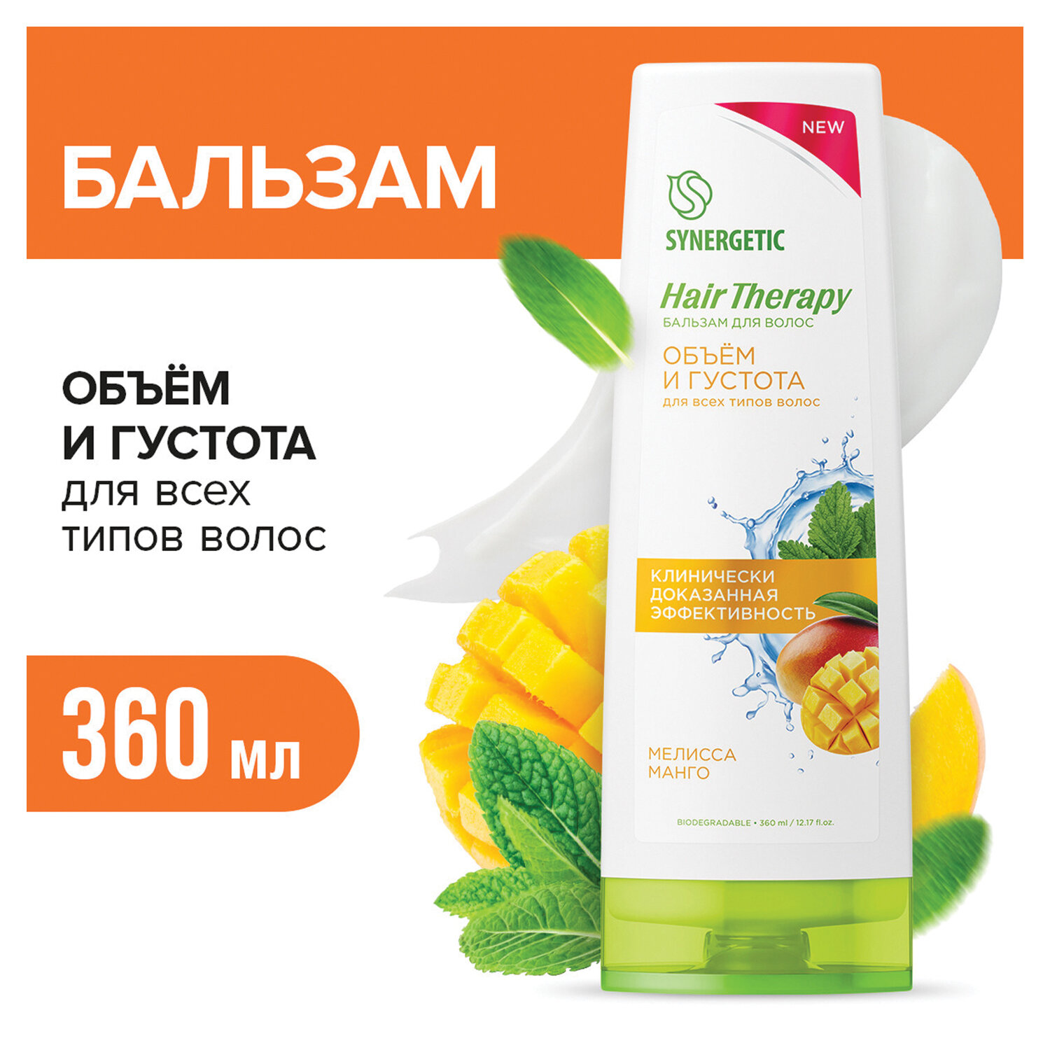 Протеины пшеницы и сои питают и укрепляют тонкие ослабленные волосы. Экстракты мелиссы и манго в сочетании с маслом кокоса эффективно увлажняют и тонизируют, придают волосам блеск, гладкость и эластичность, помогают увеличить прикорневой объем.
