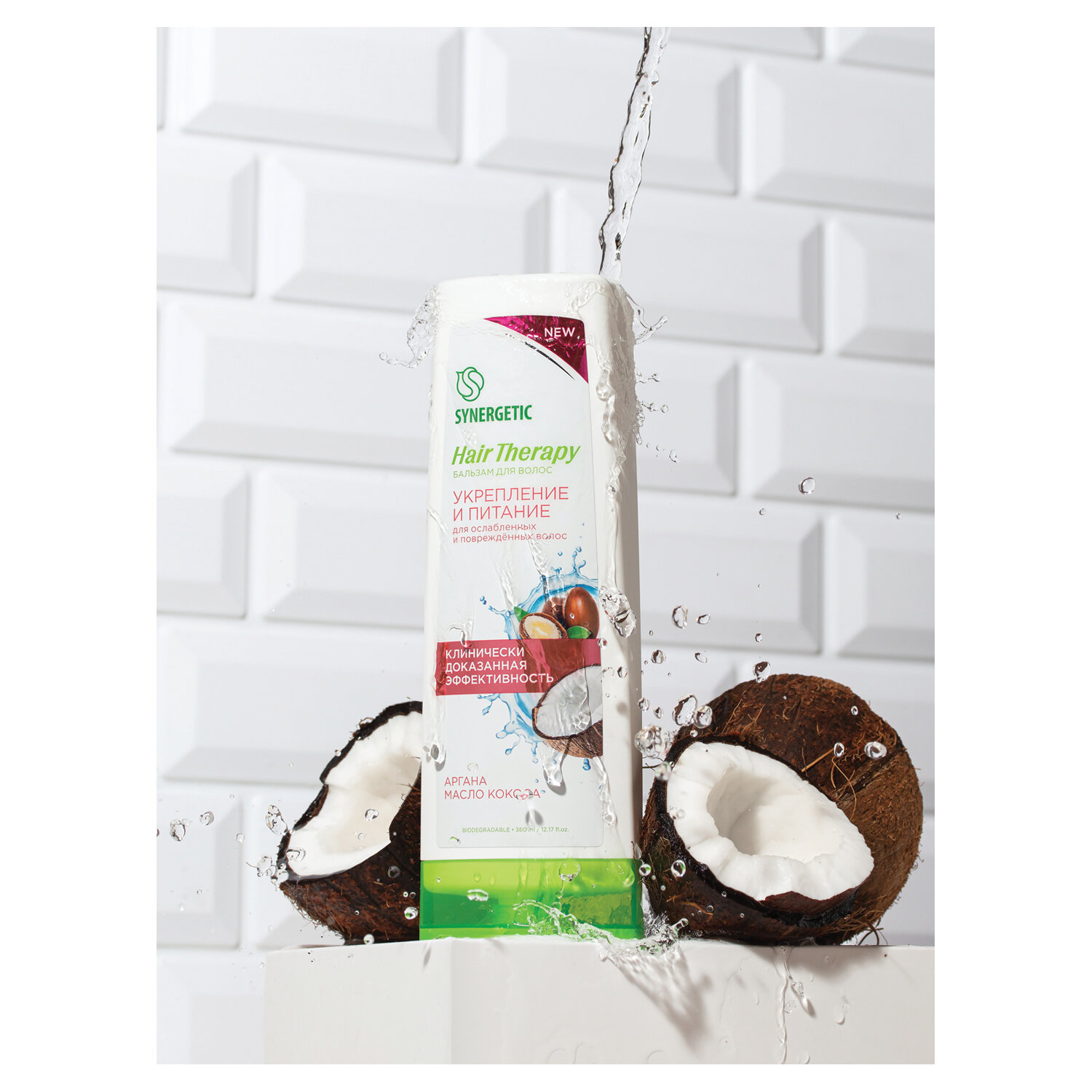 Масла кокоса, арганы и японской камелии питают, увлажняют и укрепляют волосы по всей длине.