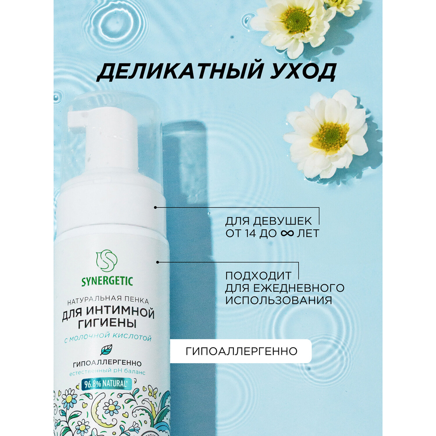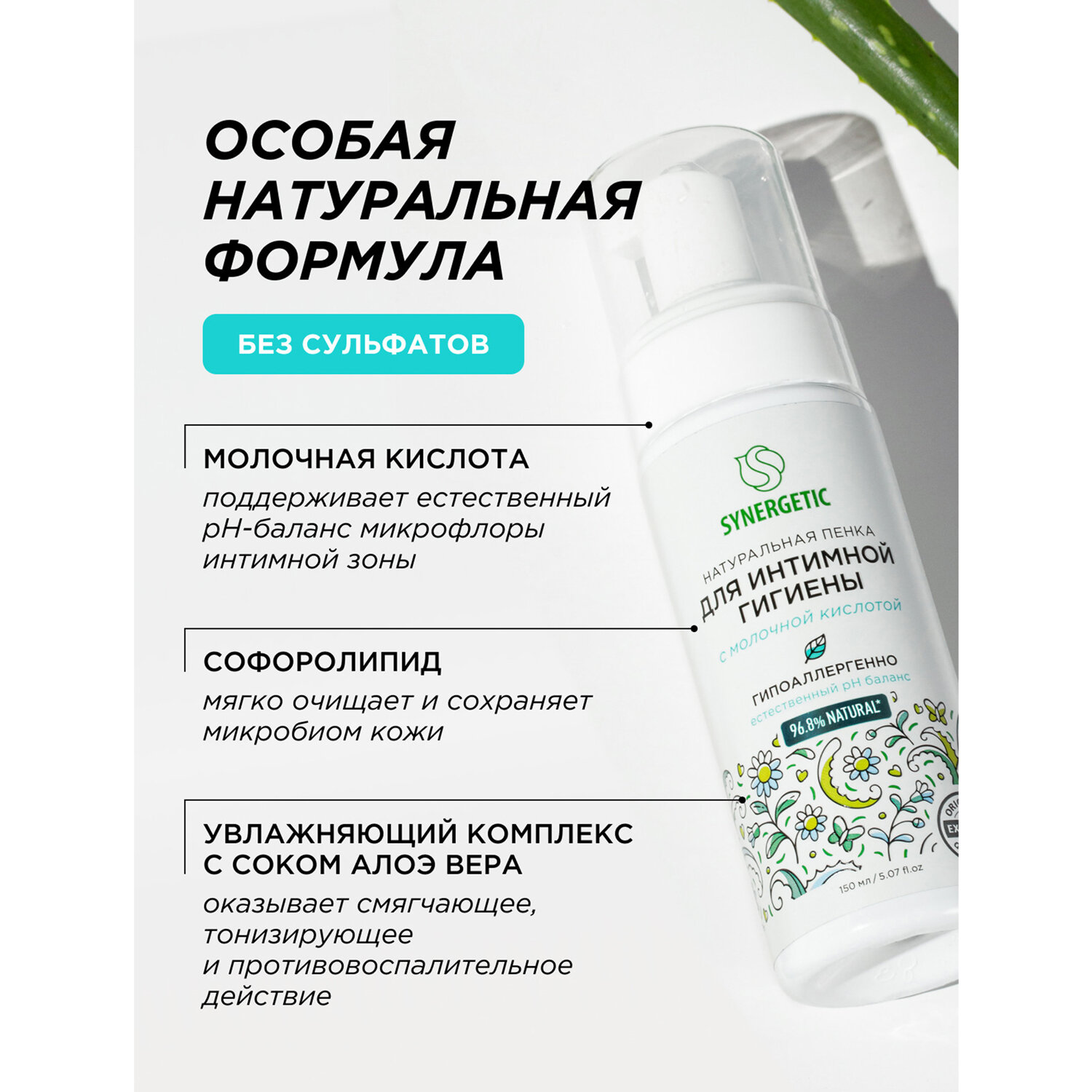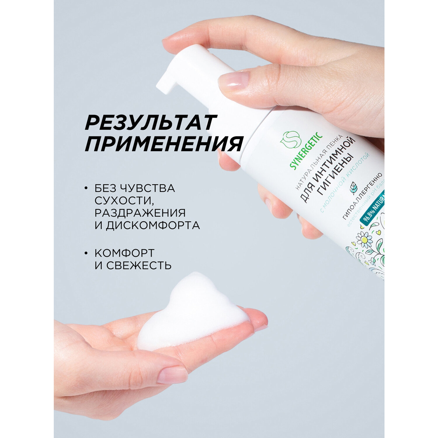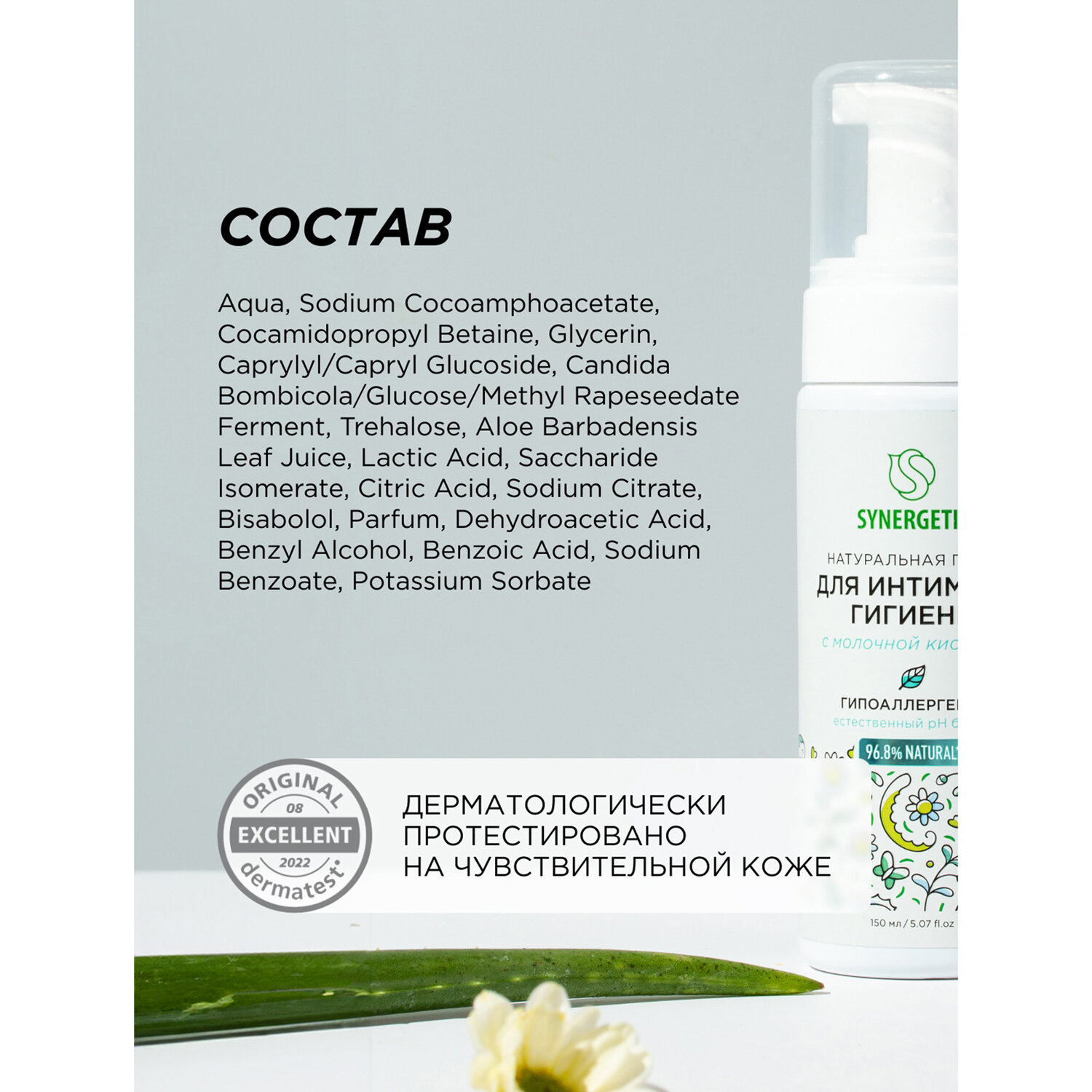 Пенка для интимной гигиены 150 мл, SYNERGETIC с молочной кислотой, натуральная Код товара: 701911 265,45 ₽ Купить Производитель:SYNERGETIC Натуральная пенка SYNERGETIC для интимной гигиены имеет легкую невесомую текстуру и обеспечивает деликатный ежедневный уход за самыми нежными местами. Бессульфатная пенка бережно очищает и увлажняет чувствительную кожу интимной зоны, поддерживая необходимый pH баланс, предотвращая раздражения и сохраняя естественную среду. Средство легко смывается, обеспечивая комфорт и чувство свежести. Мультифункциональный компонент натурального происхождения софоролипид мягко очищает и сохраняет естественный микробиом кожи. Натуральный пребиотик и природный антиоксидант трегалоза активно увлажняет и успокаивает чувствительную кожу, помогает уменьшить раздражение и дискомфорт. Противовоспалительный и заживляющий компонент бисаболол оказывает регенерирующее действие на кожу, способствует восстановлению гидробаланса. Молочная кислота способствует поддержанию естественного баланса микрофлоры, не вызывая чувство сухости. Активный увлажняющий комплекс в сочетании с соком алоэ вера обладает смягчающим, тонизирующим и противовоспалительным действием. Продукт дерматологически протестирован на чувствительной коже независимым институтом Dermatest в Германии. Пенка не содержит SLS, SLES, силиконов, минеральных масел, красителей, не тестируется на животных и сертифицирована британской организацией The Vegan Society. Знак Vegan – мировой стандарт этичной продукции. Состав ГОСТ: Aqua (вода); Sodium Cocoamphoacetate (мягкий ПАВ); Cocamidopropyl Betaine (мягкий ПАВ из кокосового масла); Glycerin (увлажняющий компонент растительного происхождения); Caprylyl/Capryl Glucoside (мягкий ПАВ); Candida Bombicola/Glucose/Methyl Rapeseedate Ferment (софоролипид, мультифункциональный компонент натурального происхождения, мягко очищает и поддерживает естественную микрофлору кожи); Trehalose (натуральный пребиотик); Aloe Barbadensis Leaf Juice (сок алоэ); Lactic Acid (молочная кислота); Saccharide Isomerate (увлажняющий компонент натурального происхождения); Citric Acid (лимонная кислота, стабилизатор кислотности); Sodium Citrate (соль лимонной кислоты, поддерживающая оптимальный уровень рН); Bisabolol (заживляющий актив); Parfum (парфюмерная композиция); Dehydroacetic Acid; Benzyl Alcohol; Benzoic Acid; Sodium Benzoate; Potassium Sorbate (консерванты природного происхождения). Состав INCI: Aqua; Sodium Cocoamphoacetate; Cocamidopropyl Betaine; Glycerin; Caprylyl/Capryl Glucoside; Candida Bombicola/Glucose/Methyl Rapeseedate Ferment; Trehalose; Aloe Barbadensis Leaf Juice; Lactic Acid; Saccharide Isomerate; Citric Acid; Sodium Citrate; Bisabolol; Parfum; Dehydroacetic Acid; Benzyl Alcohol; Benzoic Acid; Sodium Benzoate; Potassium Sorbate.Производство: РоссияОбъем: 150 млТип средства: пенаУровень pH: -Отдушка: нейтральнаяПодходящий тип кожи: для всех типовОснова состава: -Тип дозирования: дозаторСерия: Для интимной гигиеныВид упаковки: флаконГипоаллергенно: даСрок годности: 36 месВес: 231 грРазмер упаковки: 5 × 17.6 × 4.7 смОбъём: 0.0006 м3Промежуточная упаковка: 6 штТранспортная упаковка: 6 штШтрих-код: 4607971455929