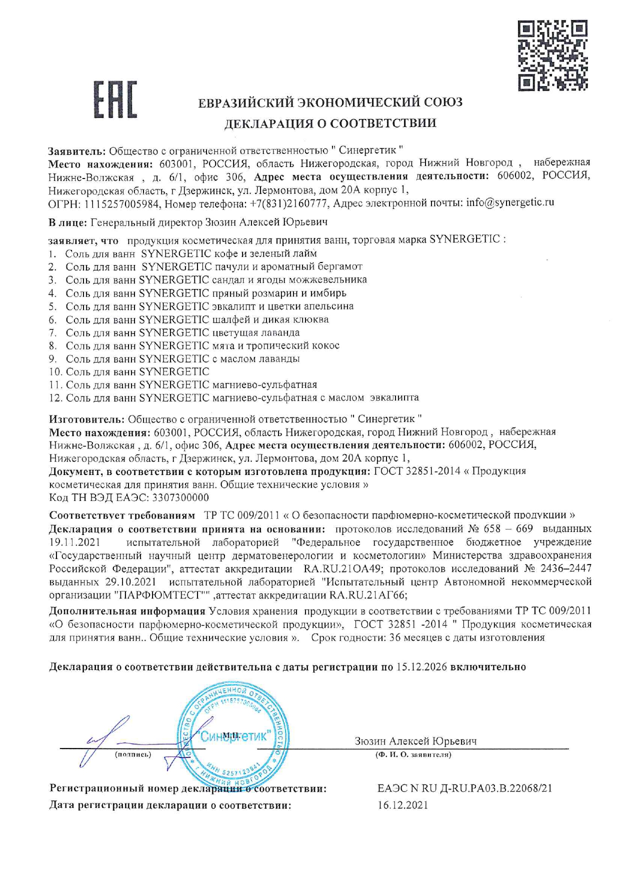 Соль для ванн 1 кг, SYNERGETIC "Детокс и расслабление", морская с лавандой, натуральная Код товара: 701915 190,22 ₽ Купить Производитель:SYNERGETIC Натуральная морская соль для ванн SYNERGETIC с маслом лаванды бережно очищает и улучшает состояние кожи, а бисаболол интенсивно питает, делая ее гладкой и шелковистой. Солевые ванны способствуют уменьшению проявлений целлюлита, успокаивают и восстанавливают барьерные функции кожи. Ванны с морской солью способствуют восстановлению защитных сил организма, а нежный аромат лаванды помогает расслабиться и улучшает настроение. Морская соль состоит из хлорида натрия, поэтому она имеет соленый привкус. Помимо этого в ней содержится сульфат магния, кальция и калия, а также йод, фтор и еще множество полезных для организма минералов. Благодаря отсутствию химической и высокотемпературной обработки все они сохраняются в неизменном природном виде. Теплая ванна с морской солью SYNERGETIC – это прекрасный способ восстановить силы и насытить организм полезными веществами. Состав INCI: Sodium Chloride, Lavandula Angustifolia Flower Oil, Bisabolol. Активные компоненты: морская соль, бисаболол, масло лаванды. Инструкция по применению: Ванна: растворить 300-500 грамм соли во всем объеме ванны при температуре воды 36-40 °C. Ванночка для ног: растворить соль из расчета 1 столовая ложка на литр воды при температуре 40-50 °C. Продолжительность процедуры: 10-15 минут.Производство: РоссияТип товара: соль для ваннНазначение : Для ваннВид: морскаяДобавки: с лавандойВес: 1 кгСерия: соль для ванныСрок годности: 36 месРазмер упаковки: 4.2 × 26.5 × 16.5 смОбъём: 0.0019 м3Промежуточная упаковка: 6 штТранспортная упаковка: 6 штШтрих-код: 4607971454038 Файлы Сертификат-1.jpg Сертификат-2.jpg Сертификат-3.jpg