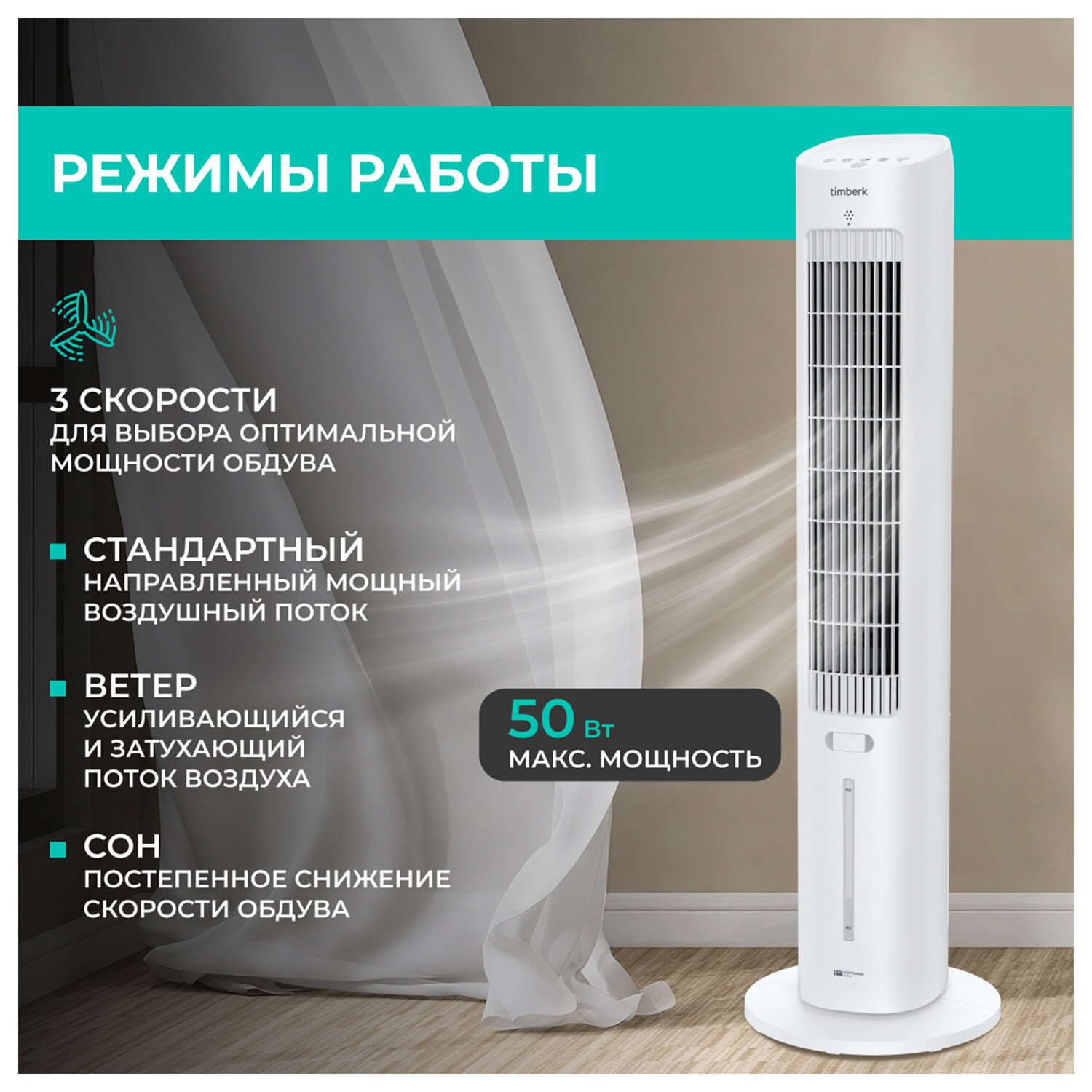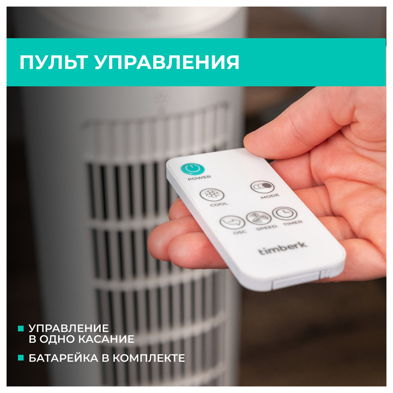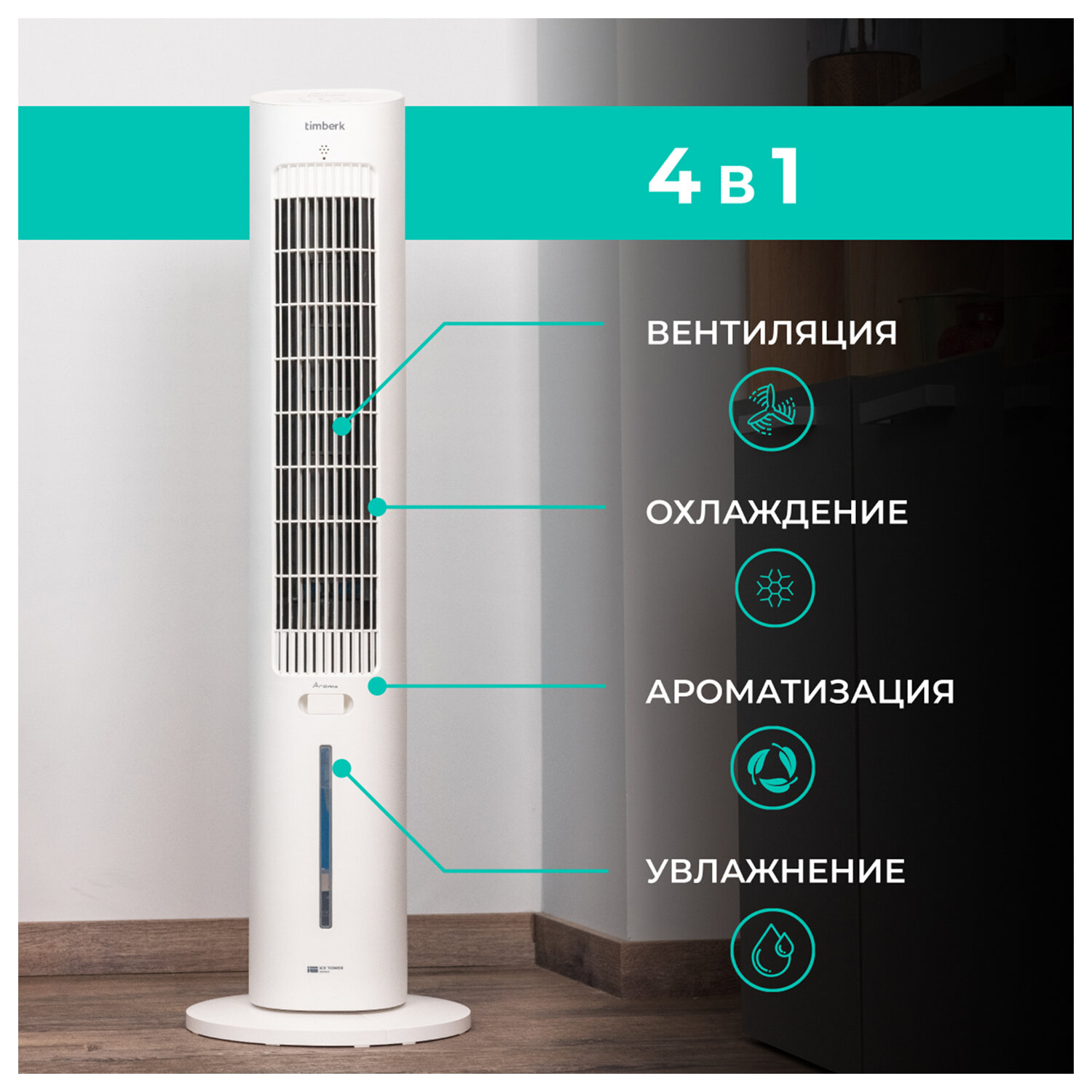 Охладитель воздуха колонный TIMBERK T-SAC01RC, 4 в 1, 3 режима, 50 Вт, бак 3 л, пульт ДУ, белый Код товара: 458437 7 392 ₽ Купить Производитель:TIMBERK Создайте прохладу и комфорт в доме даже в самые жаркие дни с колонным охладителем TIMBERK T-SAC01RC – стильным и эффективным решением для создания комфортного микроклимата! Это не просто вентилятор, а полноценный испарительный охладитель, который снижает температуру воздуха за счёт циркуляции через водяной фильтр. Объём резервуара составляет 3 литра, что обеспечивает длительную работу без частого долива. Модель оснащена 3 скоростями вентилятора, автоматическим поворотом для равномерного распределения воздушного потока и таймером до 12 часов, что делает использование максимально удобным. Управление – сенсорное, также в комплекте предусмотрен пульт ДУ, позволяющий настраивать параметры на расстоянии. Уровень шума составляет 63 дБ, что делает устройство достаточно тихим для постоянного использования в гостиной, спальне или офисе. Колонный охладитель работает от сети 220-240 В, потребляемая мощность – всего 50 Вт, что делает его экономичным. Белый корпус выполнен в лаконичном дизайне и гармонично впишется в любой интерьер. Габариты устройства – 29х97,5х29 см, вес – 4,5 кг, что обеспечивает устойчивость и мобильность одновременно. Производитель оставляет за собой право без предварительного уведомления вносить изменения в технические характеристики, комплектацию и конструкцию, не ухудшающие эксплуатационные характеристики изделий.Производство: КитайВид: напольныйМощность: 50 ВтКоличество скоростей: 3Диаметр решетки: 0 ммПульт ДУ: даРегулировка скорости: ступенчатаяУправление: ЭлектронноеСерия: IсеЗащитная решетка: даЦвет корпуса: белыйМатериал корпуса: пластикДлина шнура: 1.3 мВысота: 97.5 смШирина: 29 смГлубина: 29 смВес (без упаковки): 4.5 кгВес: 5,58 кгРазмер упаковки: 22 × 100 × 23.5 смОбъём: 0.0517 м3Промежуточная упаковка: 1 штТранспортная упаковка: 1 штШтрих-код: 5050370334071 Файлы Приложение-1.pdf Сертификат-1.jpg Сертификат-2.jpg Сертификат-3.jpg Сертификат-4.jpg Сертификат-5.jpg
