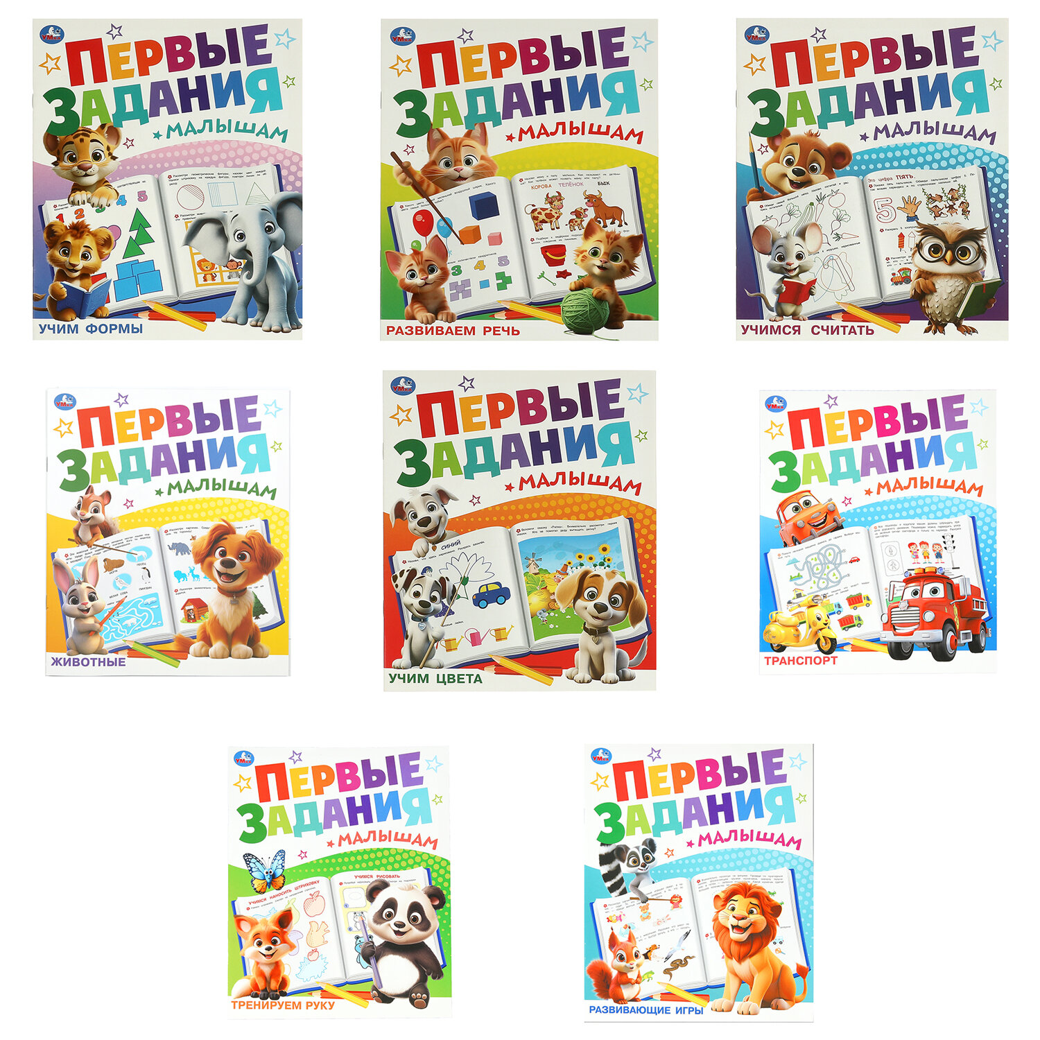 Книжка - пособие ПЕРВЫЕ ЗАДАНИЯ МАЛЫШАМ, ассорти, 197х235 мм, 16 стр., УМКА Код товара: 691221 82,5 ₽ Купить Производитель:УМКА Книжки-пособия серии "ПЕРВЫЕ ЗАДАНИЯ МАЛЫШАМ" помогают ребенку познакомиться с названиями цветов, разными видами транспорта, цифрами, формами и другими понятиями. Все задания сопровождаются яркими иллюстрациями, чтобы заниматься было весело и интересно.Производство: РоссияСерия: МалышамФормат: 197 Х 235Сюжет: ассортиВозрастная группа: 0+Количество листов: 8Обложка: глянцеваяВнутренний блок: офсетПлотность внутренного блока: 80 г/м2Тип скрепления: скобаВес: 56 грРазмер упаковки: 0.3 × 23.7 × 19.6 смОбъём: 0.0002 м3Промежуточная упаковка: 24 штТранспортная упаковка: 24 штШтрих-код: 6934600007692