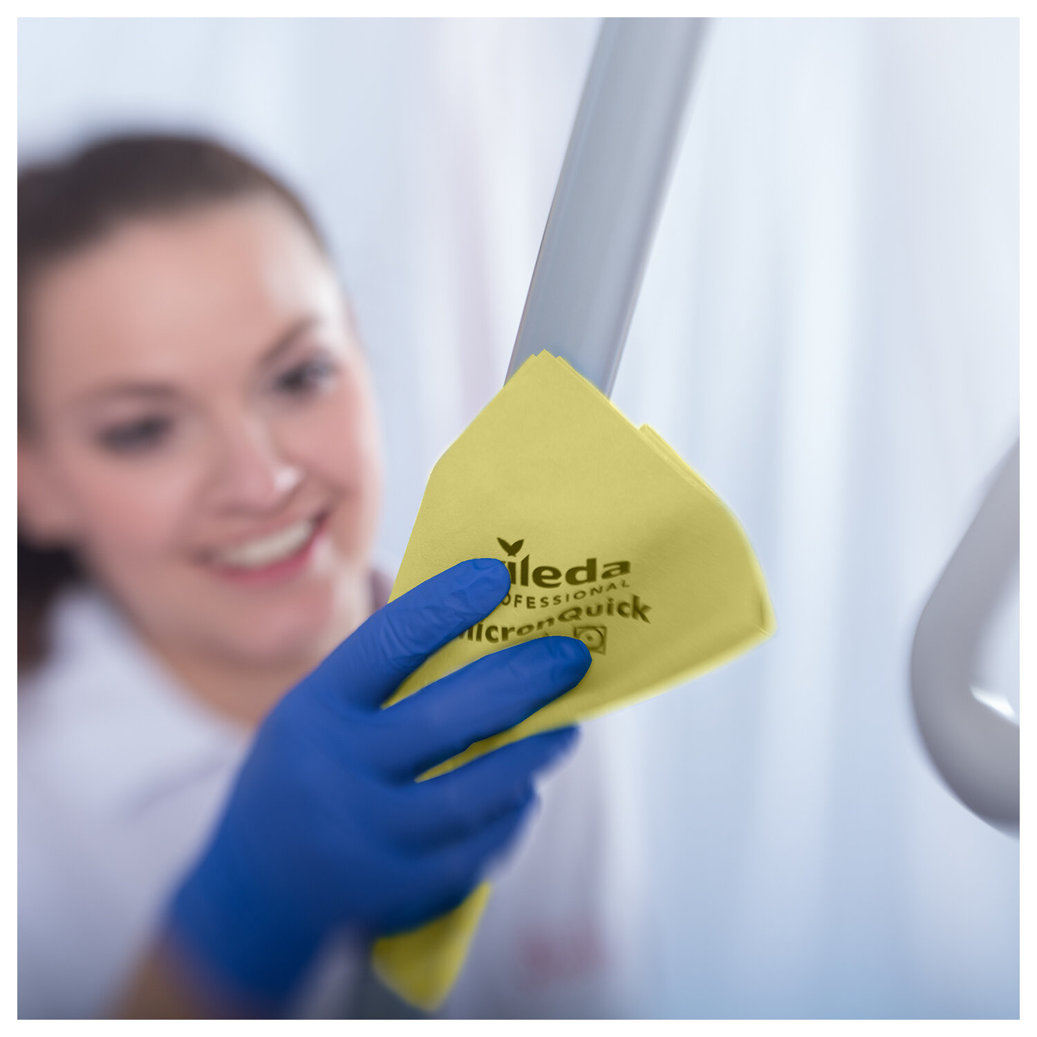 Уникальное ультратонкое нетканое микроволокно разделено на 32 сегмента для более глубокого проникновения в поверхность и максимально эффективной очистки. Отлично очищает и полирует, убирает без разводов и ворса, за счет чего повышается скорость уборки, так как поверхности протираются за 1 раз. Салфетки МикронКвик убирают до 99,99% бактерий с поверхностей без использования дезинфектанта (доказано исследованиями в лаборатории в Германии).