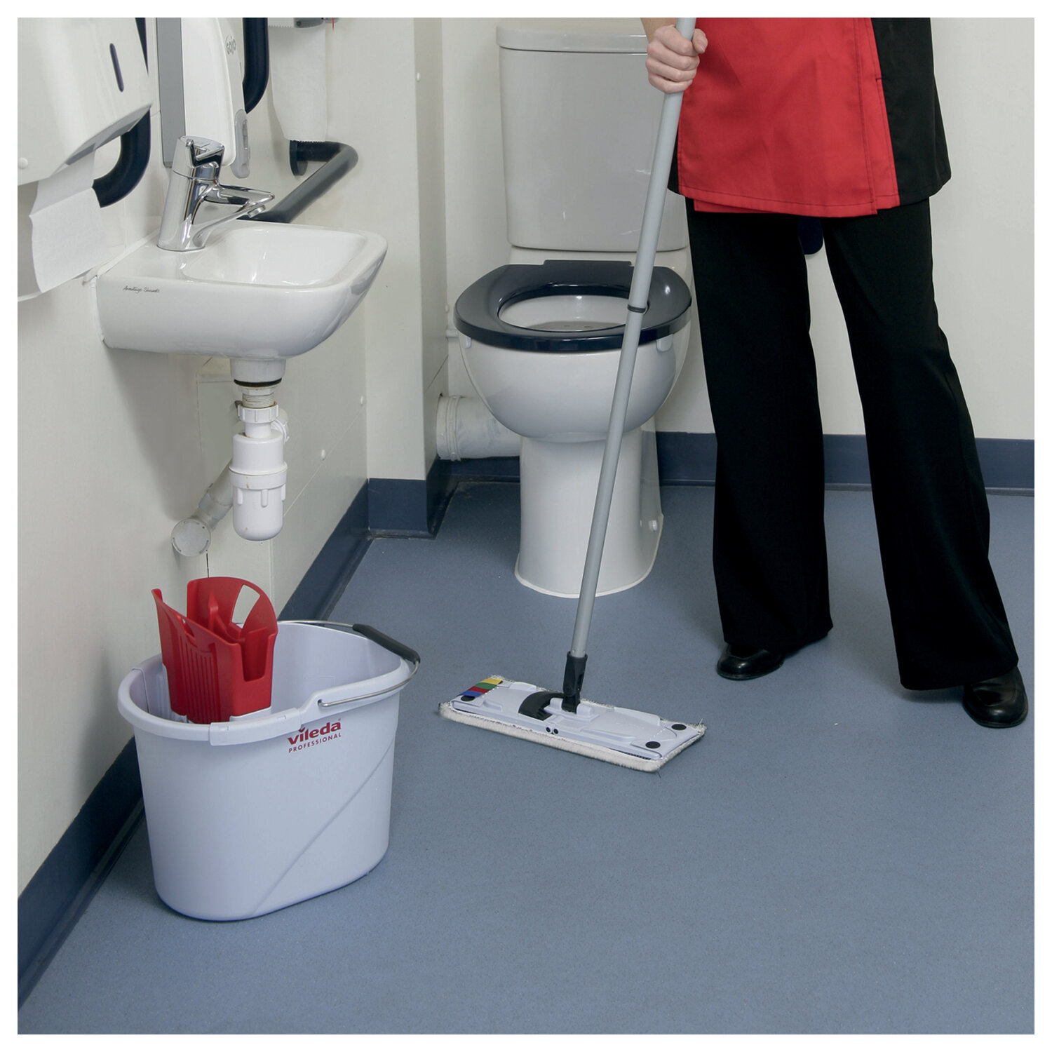 Швабра с отжимом и ведром 10л+черенок КОМПЛЕКТ, салфетки, перчатки, СпидМини VILEDA, красный Код товара: 703645 6 149,87 ₽ Купить Производитель:Vileda Professional Компактный набор для уборки в небольших санузлах. В комплекте туннельный отжим с красной маркировкой, швабра с мопом из микроволокна, салфетка ПВАмикро для всех поверхностей и перчатки. Набор Санузлы с УльтраСпид Мини: ведро 10 л с красным туннельным отжимом, ручка телескопическая, держатель мопов 34 см, моп МикроЛайт УльтраСпид Мини, 1 пара красных перчаток Многоцелевые размер М, 1 красная салфетка ПВА Микро. Специальная цена! Компактный набор с красной цветовой кодировкой для уборки ежедневных загрязнений в санузлах., Эффективная уборка с помощью микроволокна., Легкая, компактная и прочная система., Высококачественные, износостойкие и прочные материалы продолжительного срока службы., Все элементы системы полностью совместимы между собой., Цветовая кодировка отжима и мопа для маркировки инвентаря и исключения перекрестных загрязнений., В комплекте универсальная салфетка для любых поверхностей в санузле, включая зеркала и стекла, а также защитные перчатки из латекса., Гарантия качества от немецкого бренда. Подходит для уборки любых напольных покрытий, включая плитку, керамогранит, линолеум и ламинат. Область применения: Коммерческая недвижимость, HoReca, общий клининг.Производство: РоссияТип товара: набор для уборкиОбъем ведра: 10 лОтжим: туннельный отжимКомплектация: ведро, держатель МОПов, Моп, отжим, ручка телескопическаяПолезный объем: 8 лВедро с отжимом: даФорма насадки: прямоугольнаяМатериал насадки: микрофибраМатериал инвентаря: пластик, металлОсновной цвет: серыйВес: 2,4 кгРазмер упаковки: 60 × 41 × 40 смОбъём: 0.0984 м3Промежуточная упаковка: 1 штТранспортная упаковка: 1 штШтрих-код: 4023103186743 Файлы