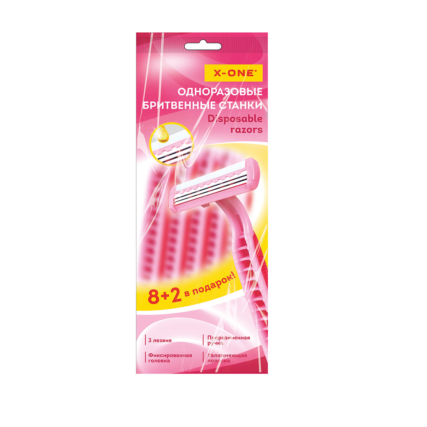 Бритвенные станки одноразовые, 3 лезвия, увлажняющая полоска, фиксированная головка, 10 шт., розовый, X-ONE (ИКС-УАН) Код товара: 700031 197,16 ₽ Купить Производитель:X-ONE Одноразовая женская бритва X-ONE с тремя тонкими и острыми лезвиями. Смазывающая полоска снижает раздражение. В упаковке 10 штук. 10 одноразовых женских бритвенных станков X-ONE с системой из 2 лезвий для чистого бритья. Каждое лезвие выполняет свою функцию – от захвата волоса до его точного среза для длительной гладкости. Смазывающая полоска, уменьшающая раздражение. Фиксированная головка и ребристая ручка обеспечивают полный контроль и комфорт во время бритья. Всего одно движение для невероятно чистого бритья и шелковистой гладкости кожи. В комплекте 10 одноразовых женских бритв X-ONE с двумя лезвиями и увлажняющей полоской.Производство: КитайПол: женскийМатериал: пластикКоличество лезвий: 3Количество станков в комплекте: 10 шт.Эффект от использования: гладкость, комфорт, чистотаСерия: Станки одноразовые с фиксированной головкойВид головки: фиксированнаяУвлажняющая полоска: даЦвет: розовыйВес: 85 грРазмер упаковки: 4 × 30 × 11 смОбъём: 0.0005 м3Промежуточная упаковка: 24 штТранспортная упаковка: 144 штШтрих-код: 4606224461786 Сертификат-1.jpg Сертификат-2.jpg Сертификат-3.jpg