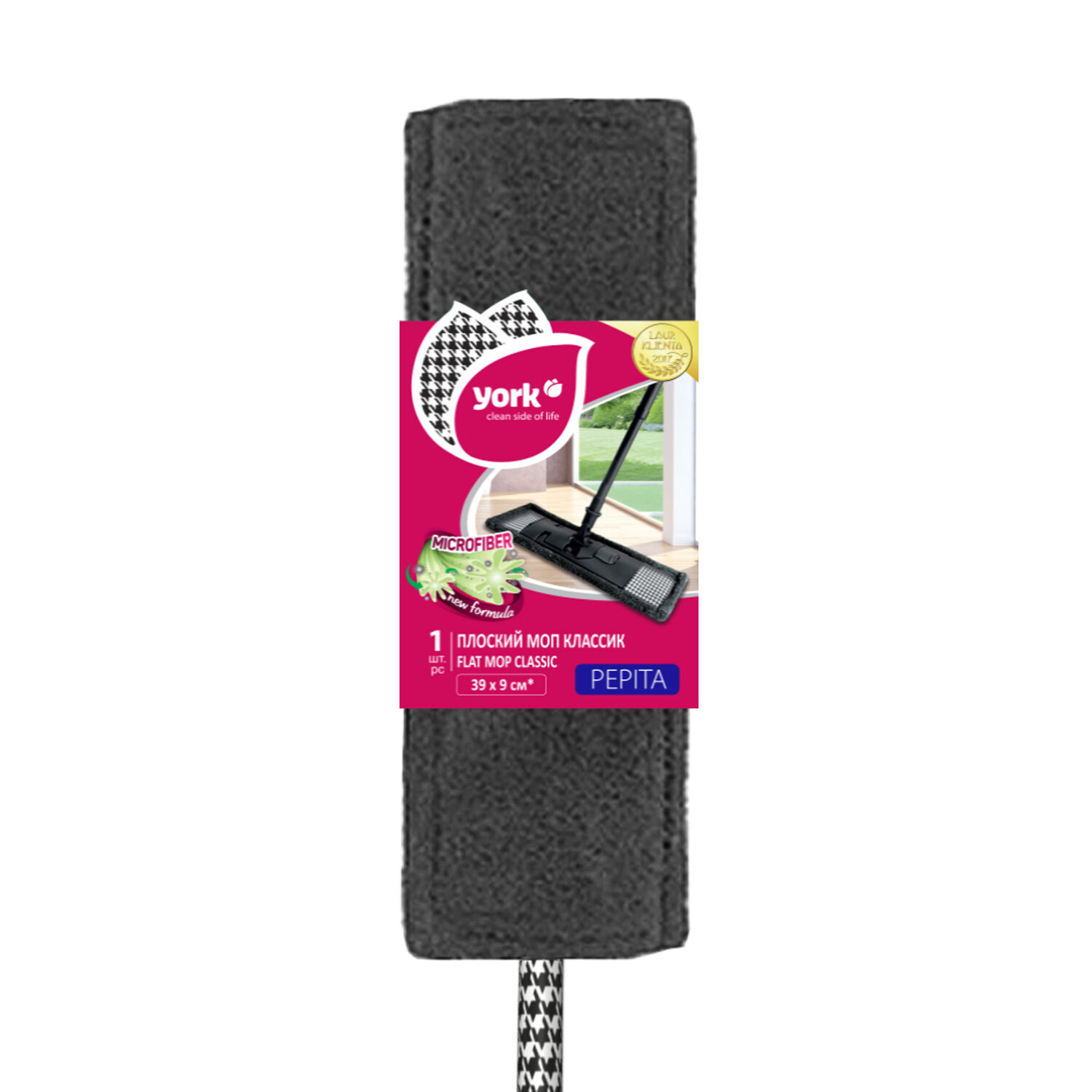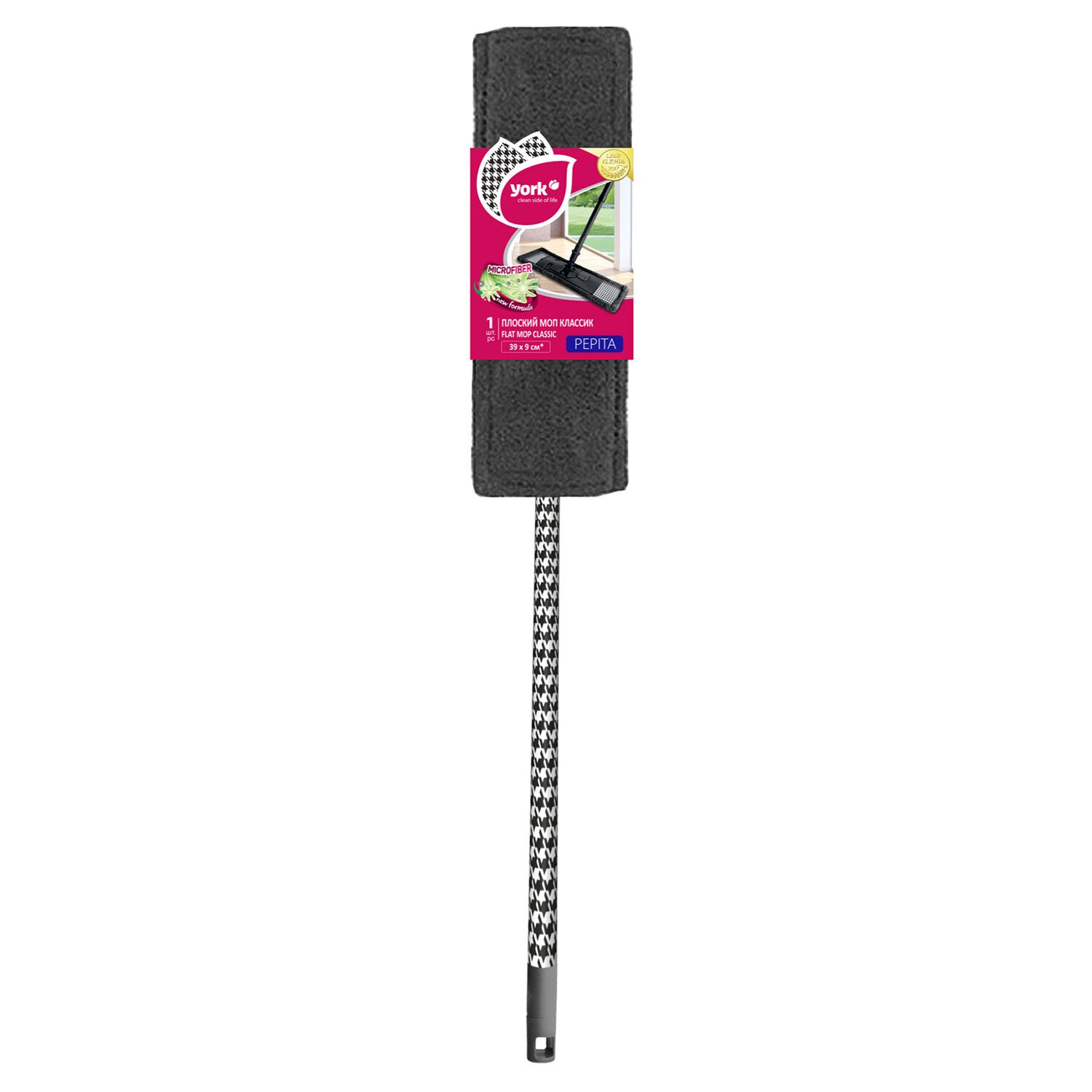 Швабра КОМПЛЕКТ черенок 80-130см +флаундер+МОП микрофибра, "Pepita", YORK, 0 Код товара: 703762 699,3 ₽ Купить Производитель:YORK Швабра Пепита с телескопической рукояткой 130 см и насадкой из микрофибры типа классик от YORK -отличная помощница для быстрой уборки. Подходят любые насадки ПЕПИТА. Стильная швабра ""Классик"" с плоским МОПом из коллекции ПЕПИТА. Очень маневренная, проходит в самые узкие места, благодаря чему незаменима при уборке полов под мебелью. Микроволокна удаляют сильные загрязнения без использования моющих средств. Не оставляет разводов. Подходит для всех видов полов. Насадка легко снимается и одевается. Возможна стирка в стиральной машине при температуре до 40 С. Имеет телескопическую складную рукоятку, компактна при хранении. Состав: насадки - 100% полиэстер; швабра- полипропилен, сталь. Состав швабры: полипропилен, сталь; насадка: 100% полиэстер Высота швабры: 135 см Платформа: 39 х 9см (складная) Рукоятка: телескоп Крепление насадки: карманыПроизводство: КитайТип швабры: плоская (флаундер)Вид швабры: стандартТип крепления насадки: карманы (ТИП К)Тип крепления черенка: еврорезьбаДиаметр черенка: 2 смМаксимальная длина черенка: 130 смМинимальная длина черенка: 80 смТелескопическая ручка: даДлина держателя: 39 смШирина держателя: 9 смДлина насадки: 41 смШирина насадки: 12 смПодвижное соединение ручки и держателя: даЦвет: черныйМатериал насадки: микрофибраМатериал черенка: металлопластикМатериал держателя: пластикВес: 440 грРазмер упаковки: 100 × 14 × 7 смОбъём: 0.003 м3Промежуточная упаковка: 24 штТранспортная упаковка: 24 штШтрих-код: 5903355143659 Файлы