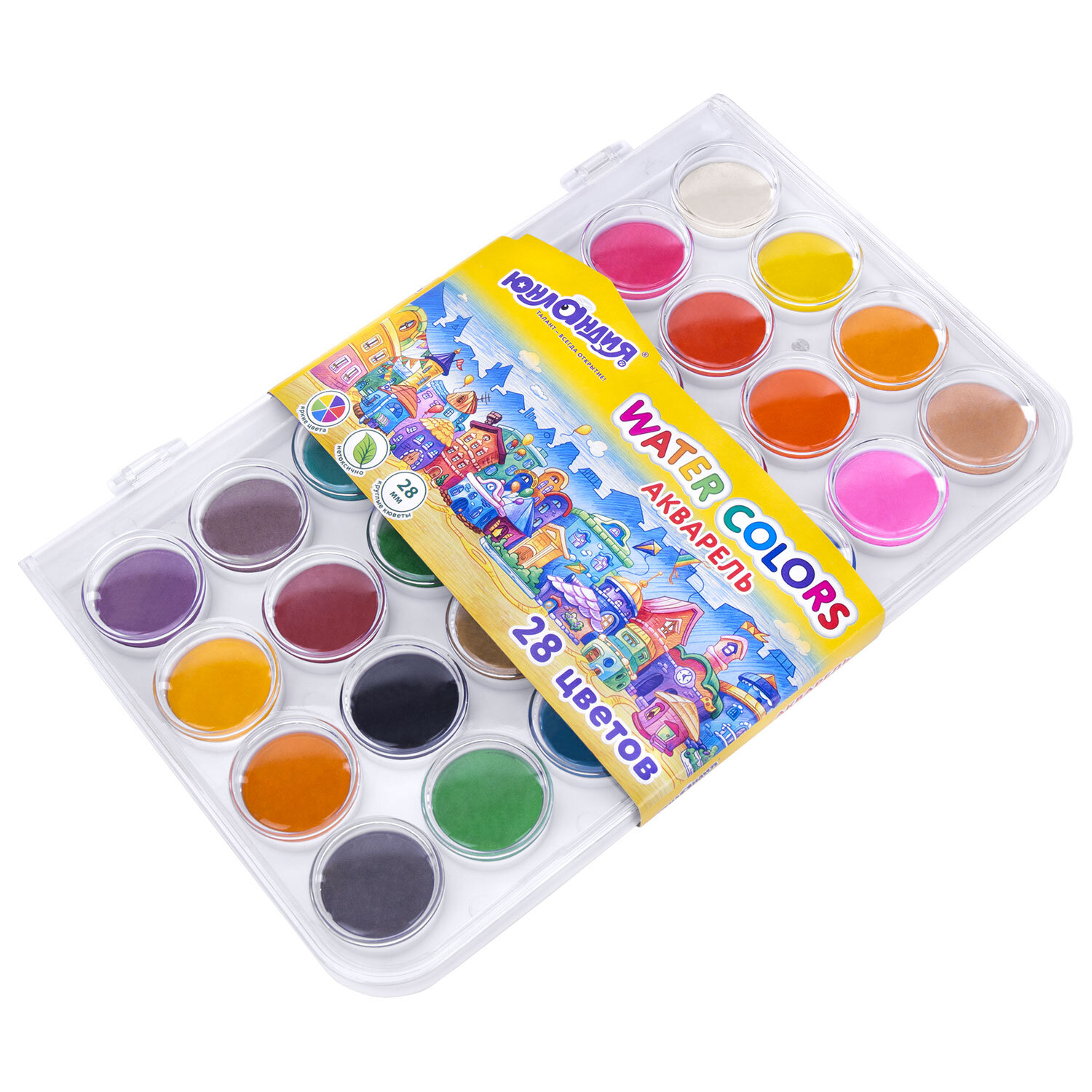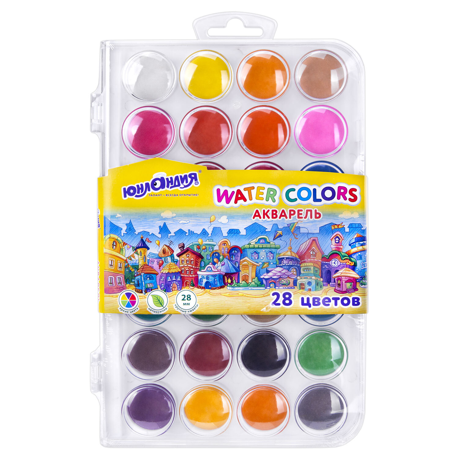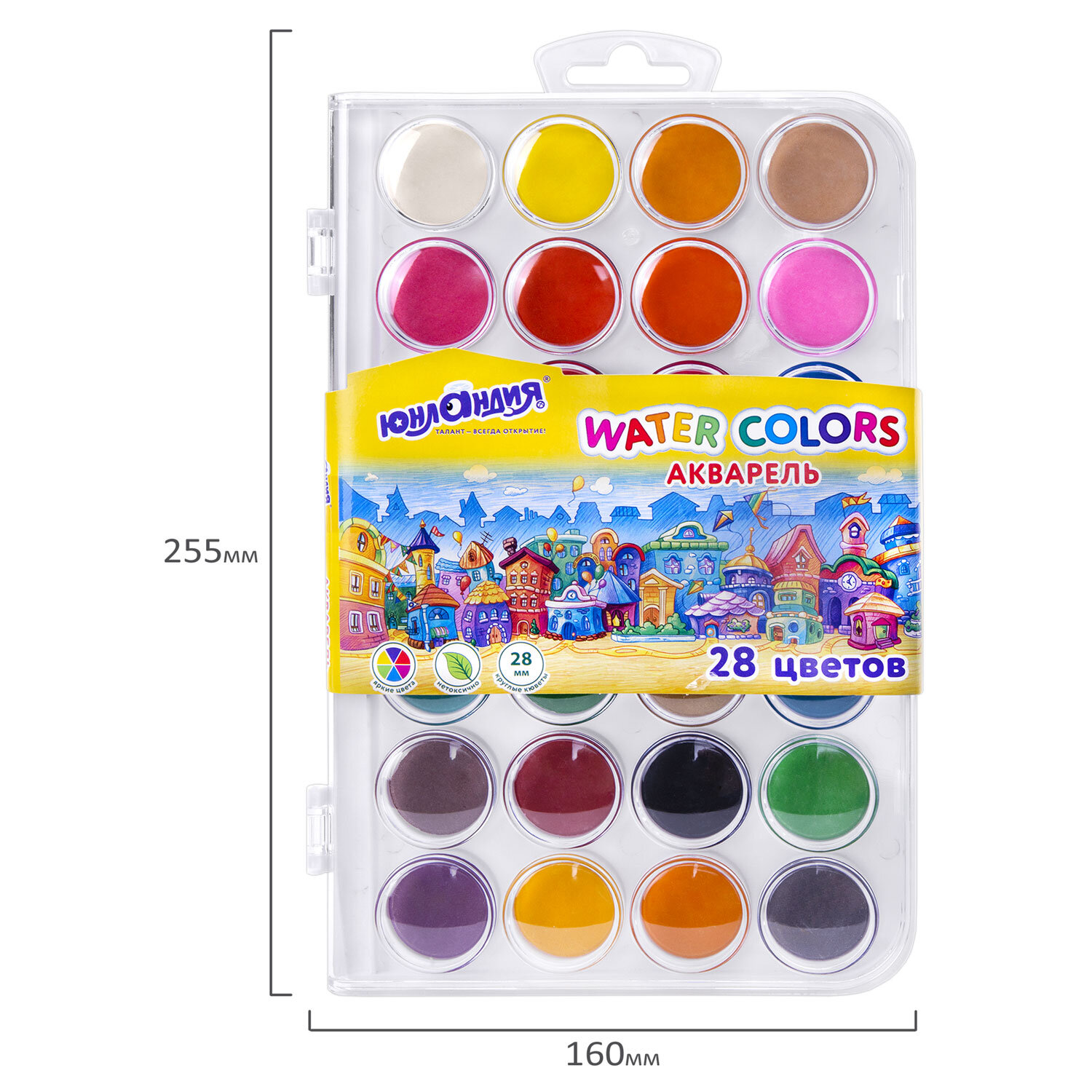 Краски акварельные ЮНЛАНДИЯ "ДОМИКИ", 28 цветов, круглые кюветы 28 мм, пенал Код товара: 192632 268,28 ₽ Купить Производитель:ЮНЛАНДИЯ Акварельные краски ЮНЛАНДИЯ "ДОМИКИ" идеально подходят для уроков детского творчества и художественного изобразительного искусства. Рисование способствует развитию образного мышления, глазомера, мелкой моторики рук, тонкого восприятия цветовой гаммы. В наборе 28 насыщенных цветов, которые отлично смешиваются, позволяя создавать множество оттенков. Краски легко наносятся, образуя интенсивное яркое покрытие даже при нанесении в один слой. Обеспечивают однородное окрашивание, быстро высыхают и не портятся со временем. Краски безопасны для детей, нетоксичны. Выпускаются в пластиковом пенале с европодвесом, прозрачной крышкой, круглой формой кювет и отделением для кисточки. Съемную пластиковую крышку можно использовать в качестве палитры для смешивания красок.Производство: КитайКоличество цветов в наборе: 28 шт.Добавка в основу: нетОтделение для кисточки: даФорма кювет: круглаяСпецэффект: классическийСерия: Юнландия домикиУпаковка: пластиковая коробка с европодвесомВес: 292 грРазмер упаковки: 1.6 × 23.8 × 15.6 смОбъём: 0.0009 м3Промежуточная упаковка: 12 штТранспортная упаковка: 24 штШтрих-код: 4606224485959 Файлы Сертификат-1.jpg Сертификат-2.jpg Сертификат-3.jpg Сертификат-4.jpg Сертификат-5.jpg Сертификат-6.jpg