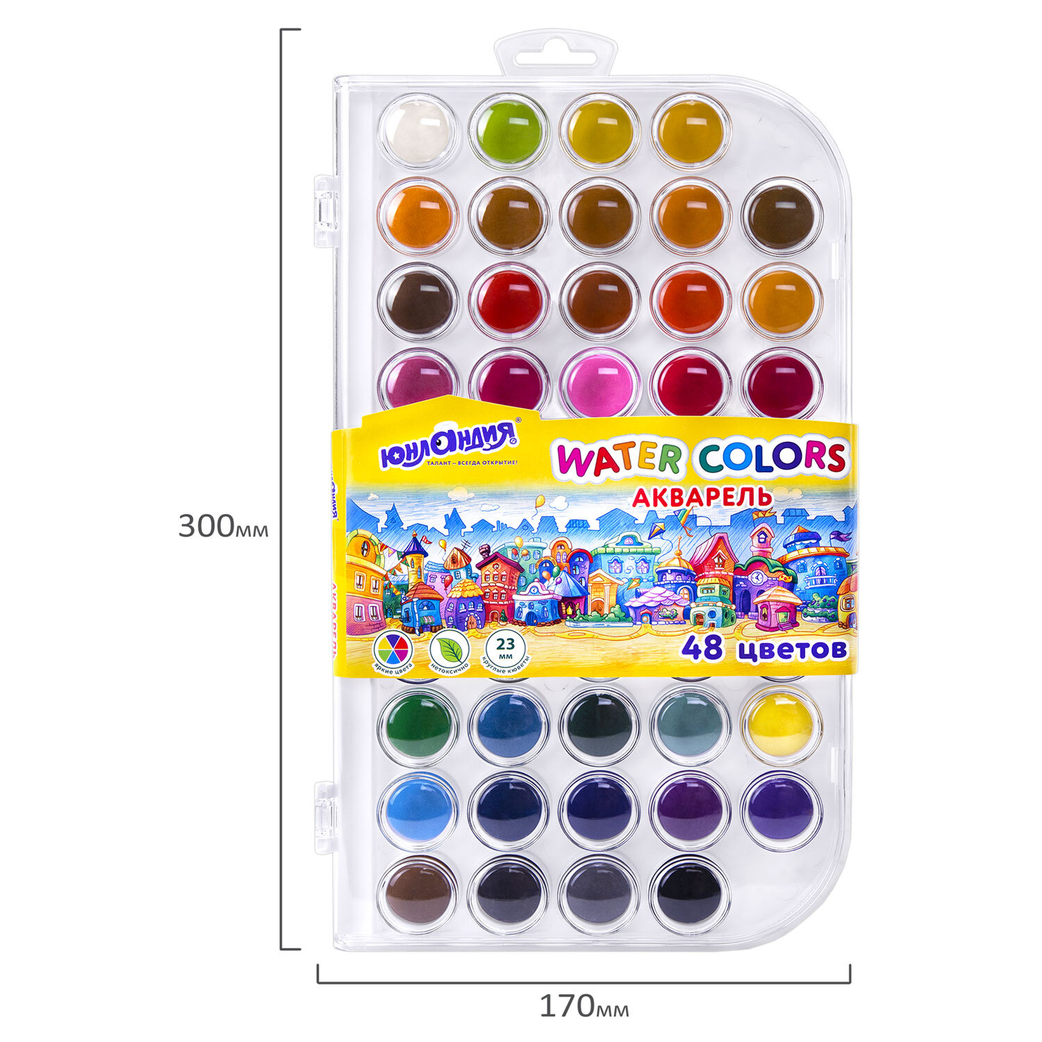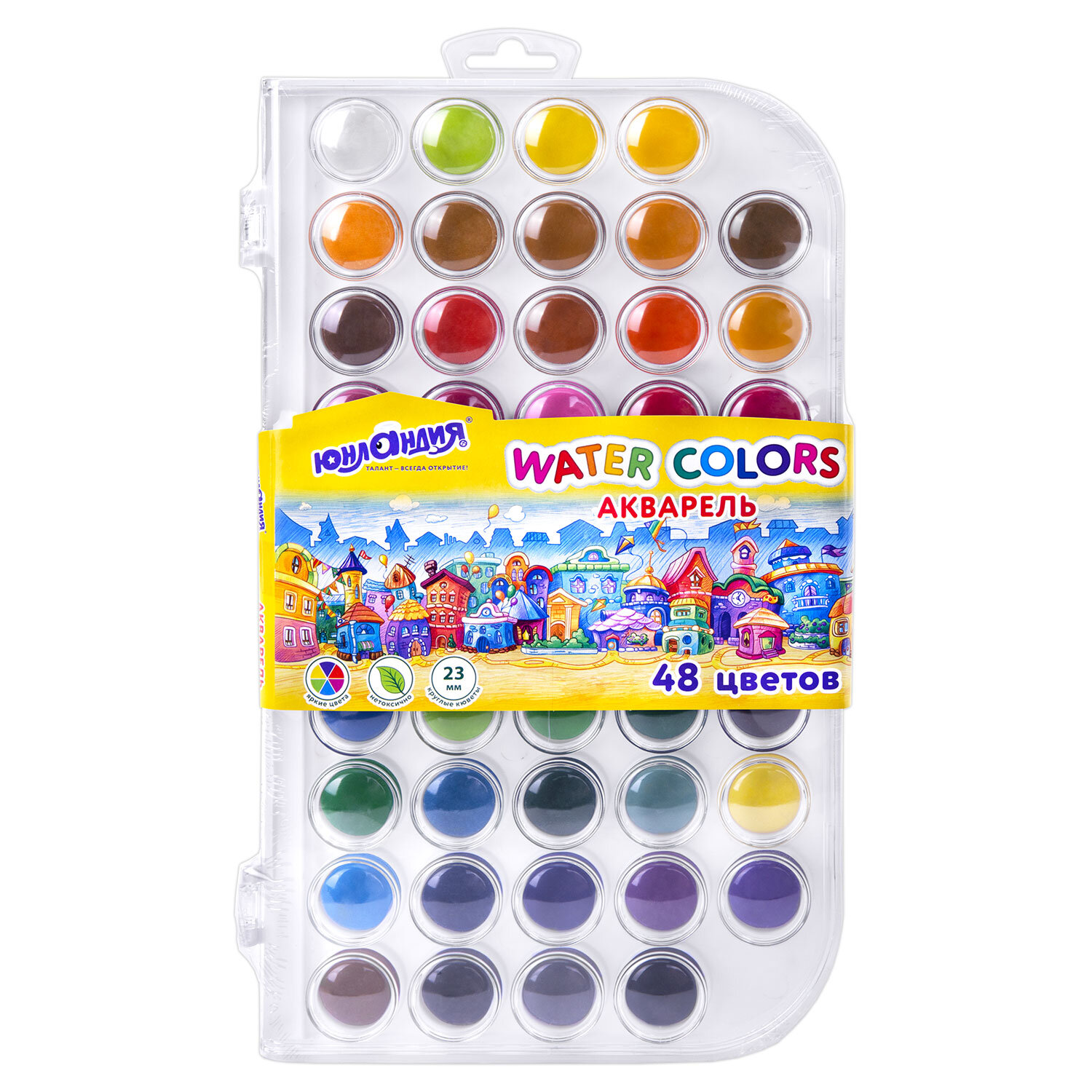 Краски акварельные ЮНЛАНДИЯ "ДОМИКИ", 48 цветов, круглые кюветы 23 мм, пенал Код товара: 192634 334,54 ₽ Купить Производитель:ЮНЛАНДИЯ Акварельные краски ЮНЛАНДИЯ "ДОМИКИ" идеально подходят для уроков детского творчества и художественного изобразительного искусства. Рисование способствует развитию образного мышления, глазомера, мелкой моторики рук, тонкого восприятия цветовой гаммы. В наборе 48 насыщенных цветов, которые отлично смешиваются, позволяя создавать множество оттенков. Краски легко наносятся, образуя интенсивное яркое покрытие даже при нанесении в один слой. Обеспечивают однородное окрашивание, быстро высыхают и не портятся со временем. Краски безопасны для детей, нетоксичны. Выпускаются в пластиковом пенале с европодвесом, прозрачной крышкой, круглой формой кювет и отделением для кисточки. Съемную пластиковую крышку можно использовать в качестве палитры для смешивания красок.Производство: КитайКоличество цветов в наборе: 48 шт.Добавка в основу: нетОтделение для кисточки: даФорма кювет: круглаяСпецэффект: классическийСерия: Юнландия домикиУпаковка: пластиковая коробка с европодвесомВес: 323 грРазмер упаковки: 1.4 × 28.4 × 16.4 смОбъём: 0.0011 м3Промежуточная упаковка: 12 штТранспортная упаковка: 24 штШтрих-код: 4606224485973 Файлы Сертификат-1.jpg Сертификат-2.jpg Сертификат-3.jpg Сертификат-4.jpg Сертификат-5.jpg Сертификат-6.jpg