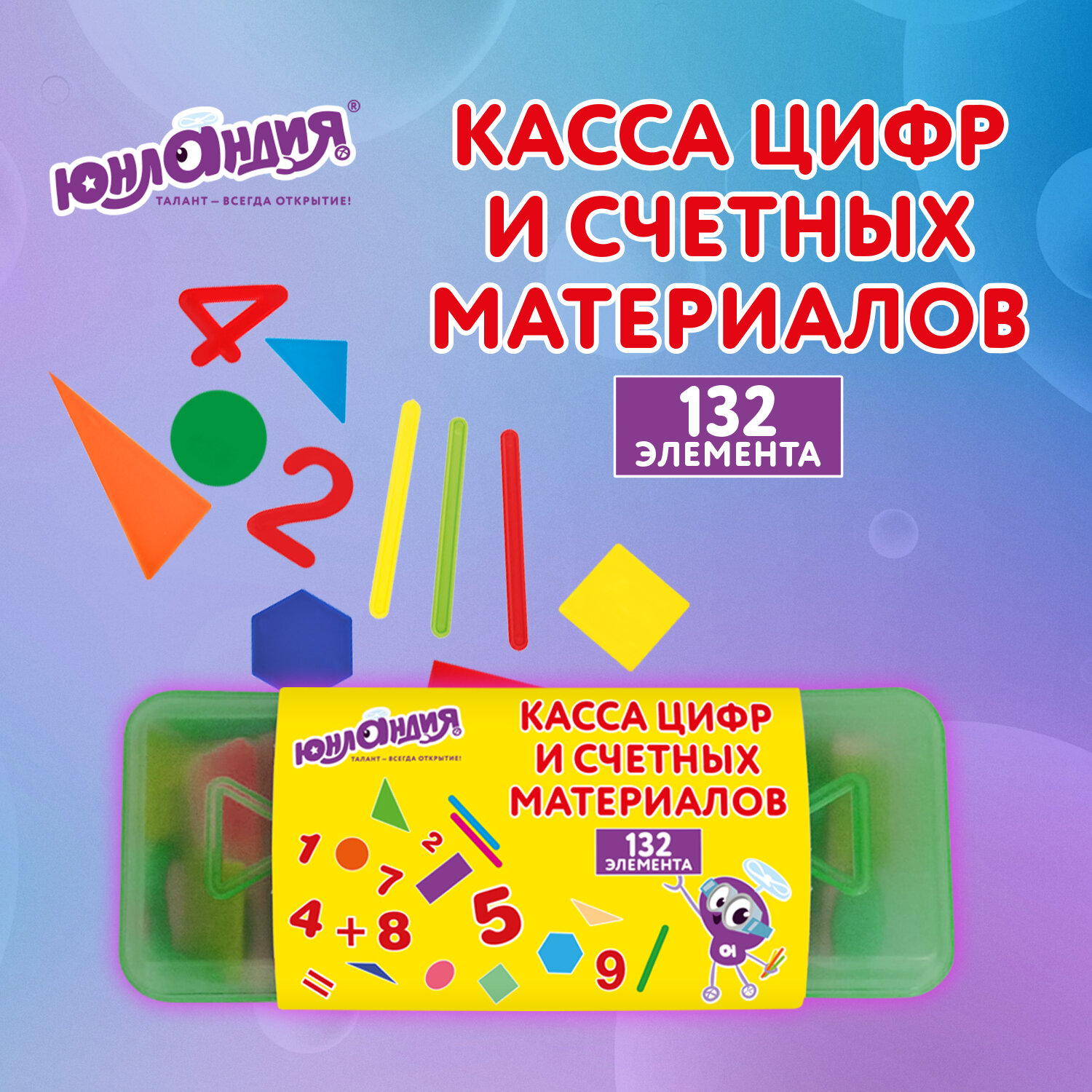 Набор счетных материалов мозаика, пенал, 132 элемента, ЮНЛАНДИЯ, 274055 Код товара: 274055 294,3 ₽ Купить Производитель:ЮНЛАНДИЯ Набор счетных материалов ЮНЛАНДИЯ (132 элемента) из безопасного пластика – это универсальное пособие для изучения цифр, фигур и счета в удобном пенале. Универсальный набор счетных материалов ЮНЛАНДИЯ 132 элемента – идеальный инструмент для подготовки детей к школе и развития базовых математических навыков. Этот набор развивает мелкую моторику, внимание и логику, делая процесс обучения эффективным и интересным для детей от 3 лет.Производство: РоссияМатериал наглядных пособий: пластикОбщее количество элементов: 132 штКомплектация: геометрические фигуры, математические знаки, счетные палочки, цифрыЗакругленные углы: даМаксимальная высота символа: 70 ммВозрастная группа: от 3 летУпаковка: пластиковый пеналВес: 225 грРазмер упаковки: 4.4 × 20.8 × 8 смОбъём: 0.0008 м3Промежуточная упаковка: 20 штТранспортная упаковка: 20 штШтрих-код: 4606224513485 Файлы Сертификат-1.jpg Сертификат-2.jpg Сертификат-3.jpg Сертификат-4.jpg