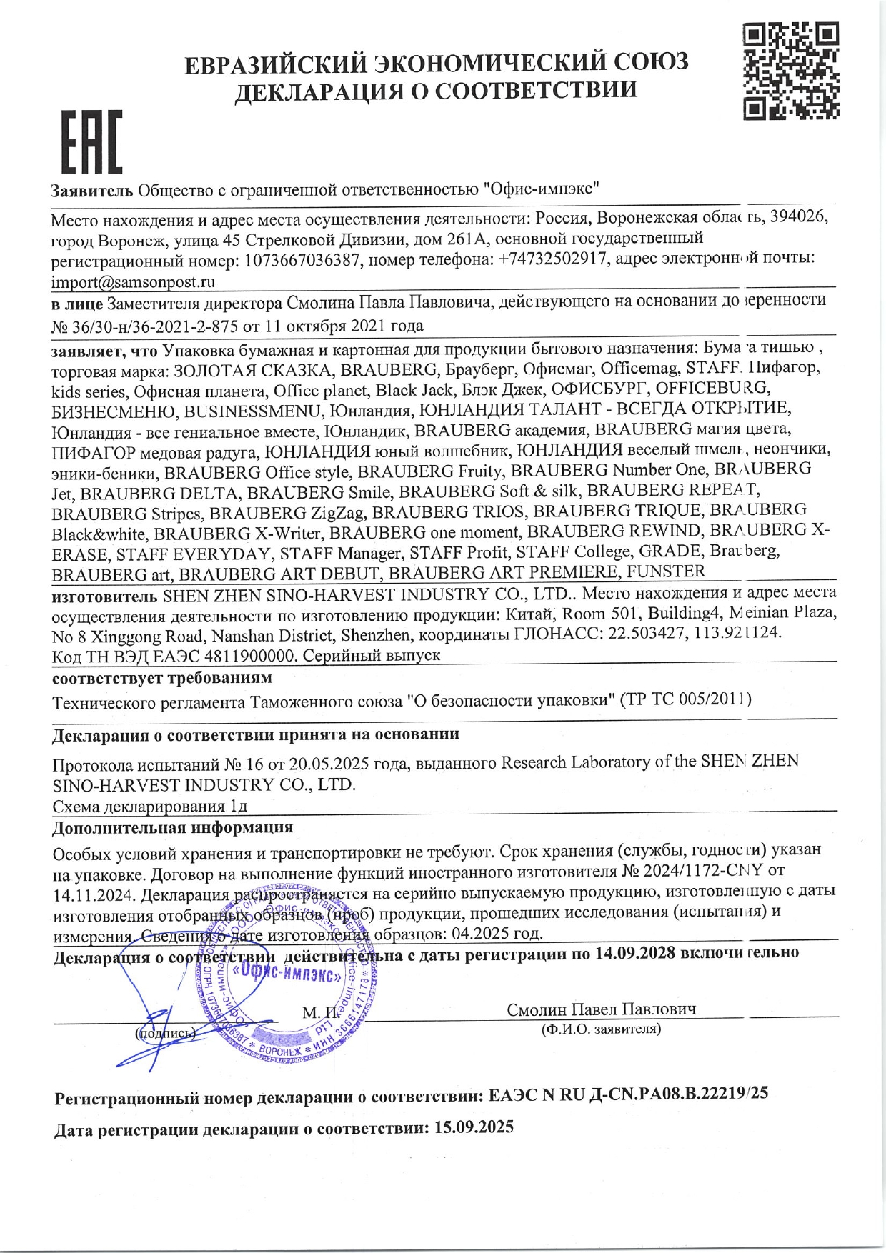 Цветная бумага ТИШЬЮ 17 г/м2, 50х66 см, 100 листов, 20 цветов, пастель ассорти, ЗОЛОТАЯ СКАЗКА Код товара: 116495 402,58 ₽ Купить Производитель:ЗОЛОТАЯ СКАЗКА Бумага тишью предназначена для оформления подарков, декорирования, создания красивых цветочных композиций, украшения интерьеров, скрапбукинга. Может использоваться детьми от 3 лет для развития моторики и воображения. Набор бумаги пастельного тона состоит из 100 листов, представленных в 20 цветах, формата 50х66 см и имеет плотность 17 г/м2. Бумага упакована в пакет. Ваши творческие идеи оживут от одного прикосновения к этой бумаге! Она позволит вам раскрыться в полной мере, как дизайнеру, при оформлении подарков на свадьбы, дни рождения, памятные даты!Производство: КитайТип бумаги: двусторонняя, матоваяВнутренний блок: офсетФормат: 50х66 смКоличество листов: 100Количество цветов: 20Тип товара: Бумага тишьюПлотность бумаги: 17 г/м2Прокрас бумаги: с 2 сторонЦвет: пастельный ассортиШирина: 500 ммДлина: 660 ммИндивидуальная упаковка: даУпаковка: пакетВес: 613 грРазмер упаковки: 1.4 × 50.7 × 22.3 смОбъём: 0.0019 м3Промежуточная упаковка: 8 штТранспортная упаковка: 8 штШтрих-код: 4606224456058 Сертификат-1.jpg Сертификат-2.jpg Сертификат-3.jpg