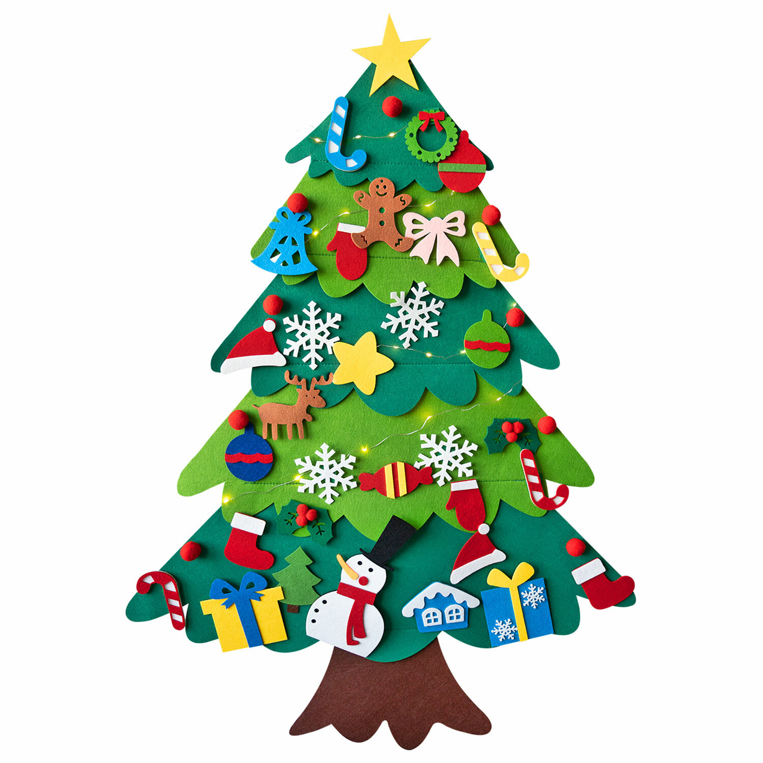 Фетровая ель с игрушками 102х68 см, 32 украшения, 3 м гирлянда, ЗОЛОТАЯ СКАЗКА Код товара: 592141 619,99 ₽ Купить Производитель:ЗОЛОТАЯ СКАЗКА Новогодняя елочка из фетра ЗОЛОТАЯ СКАЗКА – это оригинальное новогоднее украшение интерьера и увлекательная развивающая игра для детей по методике Монтессори. В набор входят: • ель из фетра толщиной 3 мм, размер – 102х68 см; • 32 игрушки из фетра разной формы на прочных липучках и светодиодная гирлянда 3 м – ими можно украсить елочку; • конверт из фетра для хранения игрушек; • самоклеящийся настенный крючок, с помощью которого елочку можно легко и удобно разместить в любом помещении. Яркие и красочные игрушки привлекают внимание детей и стимулируют их воображение. Игрушки легко крепятся и снимаются, что позволяет детям самостоятельно украшать елочку, развивая при этом мелкую моторику и координацию движений. Набор упакован в картонный короб размером 7х17х28 см, что делает его идеальным подарком. После распаковки рекомендуется прогладить елку утюгом или отпарить для лучшего вида. Гирлянда работает от 2 батареек типа AA (в комплект не входят).Производство: КитайТип товара: ельМатериал: фетрДлина: 102 смШирина: 68 смЦвет: мультицветныйСпособ крепления: самоклеящийся крючокДизайн: ЕлочкаВес: 469 грРазмер упаковки: 6.5 × 30 × 21.6 смОбъём: 0.0047 м3Промежуточная упаковка: 20 штТранспортная упаковка: 20 штШтрих-код: 4606224447445 Сертификат-1.jpg Сертификат-2.jpg Сертификат-3.jpg