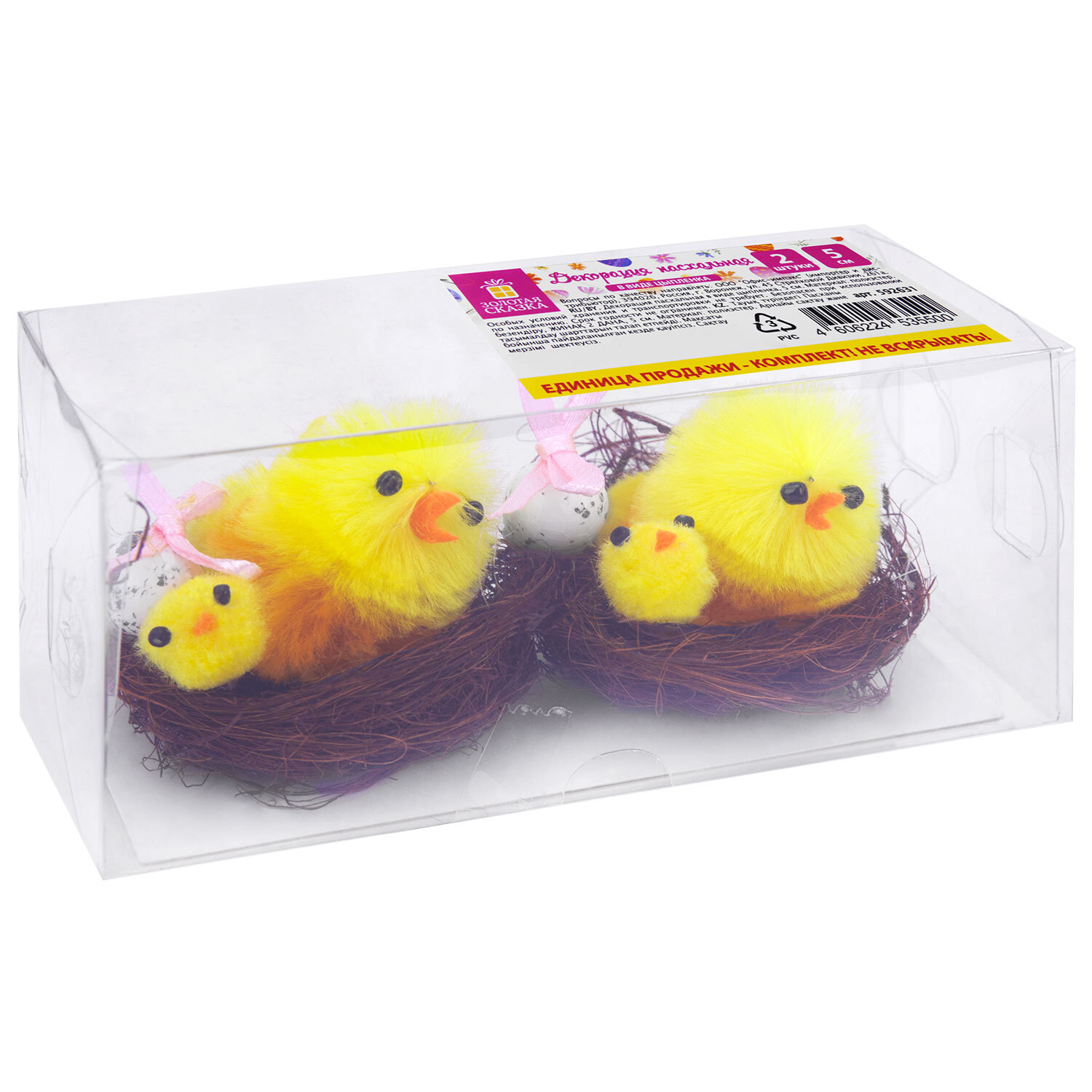 Декорация пасхальная 5 см "Птенцы в гнезде", КОМПЛЕКТ 2 штуки, полиэстер, ЗОЛОТАЯ СКАЗКА Код товара: 592631 131,64 ₽ Купить Производитель:ЗОЛОТАЯ СКАЗКА Украсьте свой праздник тёплыми символами весны и возрождения с очаровательной декорацией "Птенцы в гнезде" ЗОЛОТАЯ СКАЗКА. Миниатюрные фигурки изображают милых птенцов, уютно устроившихся в плетёном гнёздышке – трогательный образ новой жизни, гармонии и семейного тепла. Такой декор станет изюминкой интерьерного оформления дома, офиса или витрины, фотозоны на празднике, подарочной упаковки. В комплекте 2 декоративных украшения диаметром 5 см. Выполнены из полиэстера, полипропилена, полистирола, медной проволоки. Упакованы в прозрачный ПВХ-бокс.Производство: КитайТип товара: пасхальная декорацияМатериал: полиэстер, полипропилен, полистирол, медная проволокаРазмер: 5х5 смКоличество в комплекте: 2 шт.Цвет: желтыйДизайн: Птенцы в гнездеУпаковка: ПВХ-боксВес: 34 грРазмер упаковки: 5 × 11.5 × 5.5 смОбъём: 0.0005 м3Промежуточная упаковка: 5 штТранспортная упаковка: 60 штШтрих-код: 4606224535500 Файлы Сертификат-1.jpg Сертификат-2.jpg