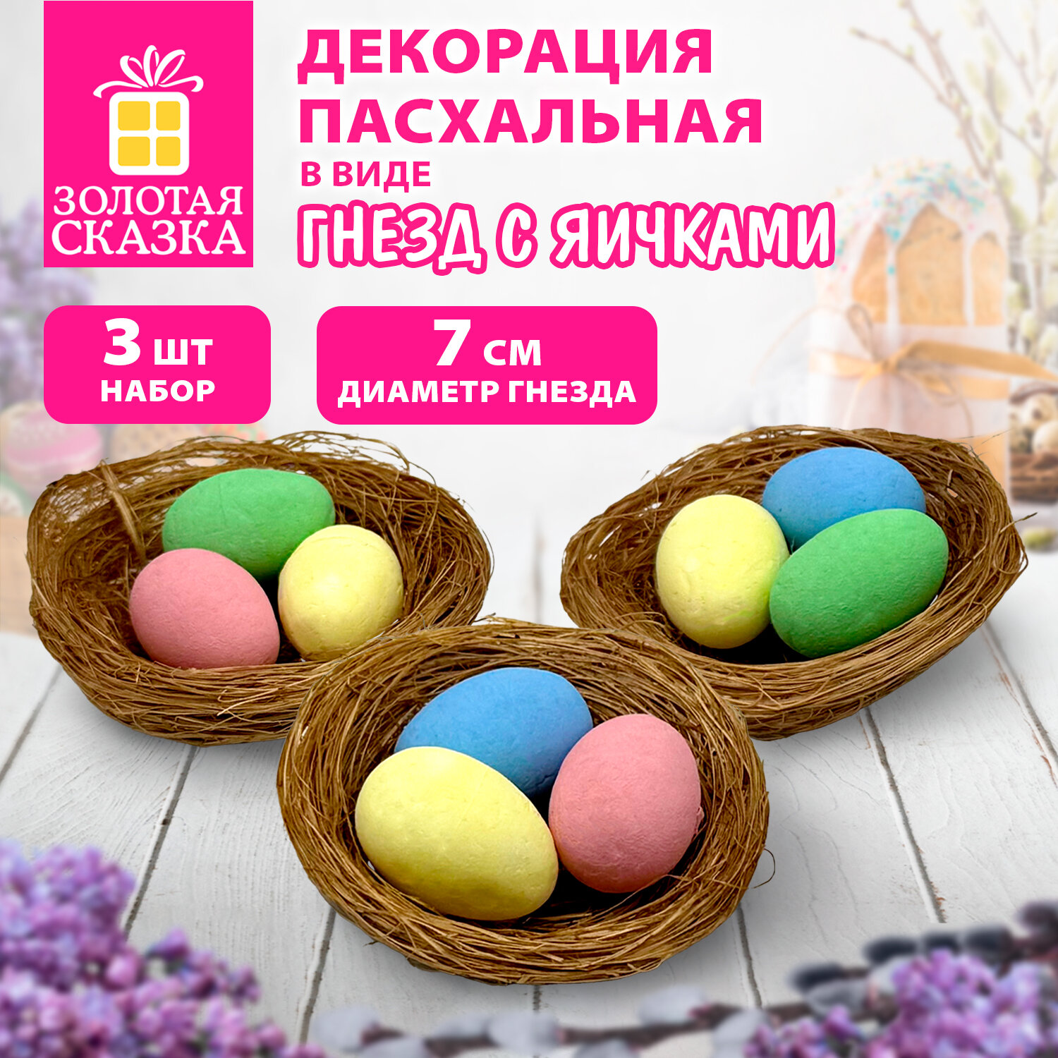 Декорация пасхальная 7 см "Гнездо", КОМПЛЕКТ 3 штуки, пластик, ЗОЛОТАЯ СКАЗКА Код товара: 592639 114,74 ₽ Купить Производитель:ЗОЛОТАЯ СКАЗКА Окунитесь в атмосферу тёплого, светлого праздника Пасхи с очаровательной декорацией "Гнездо" ЗОЛОТАЯ СКАЗКА. Комплект гнезд из 3 штук диаметром 7 см каждое с яичками внутри – идеальный выбор для тех, кто хочет создать тёплую, уютную атмосферу праздника, наполненную символами обновления и заботы. Идеально подходит для оформления праздничного стола, интерьера, подарка или выпечки. Упакованы в прозрачный ПВХ-бокс.Производство: КитайТип товара: пасхальная декорацияМатериал: полистирол, деревоРазмер: 7 смКоличество в комплекте: 3 шт.Цвет: ассортиДизайн: ГнездоУпаковка: ПВХ-боксВес: 6 грРазмер упаковки: 2.8 × 6.5 × 19 смОбъём: 0.0006 м3Промежуточная упаковка: 6 штТранспортная упаковка: 60 штШтрих-код: 4606224535586 Сертификат-1.jpg Сертификат-2.jpg