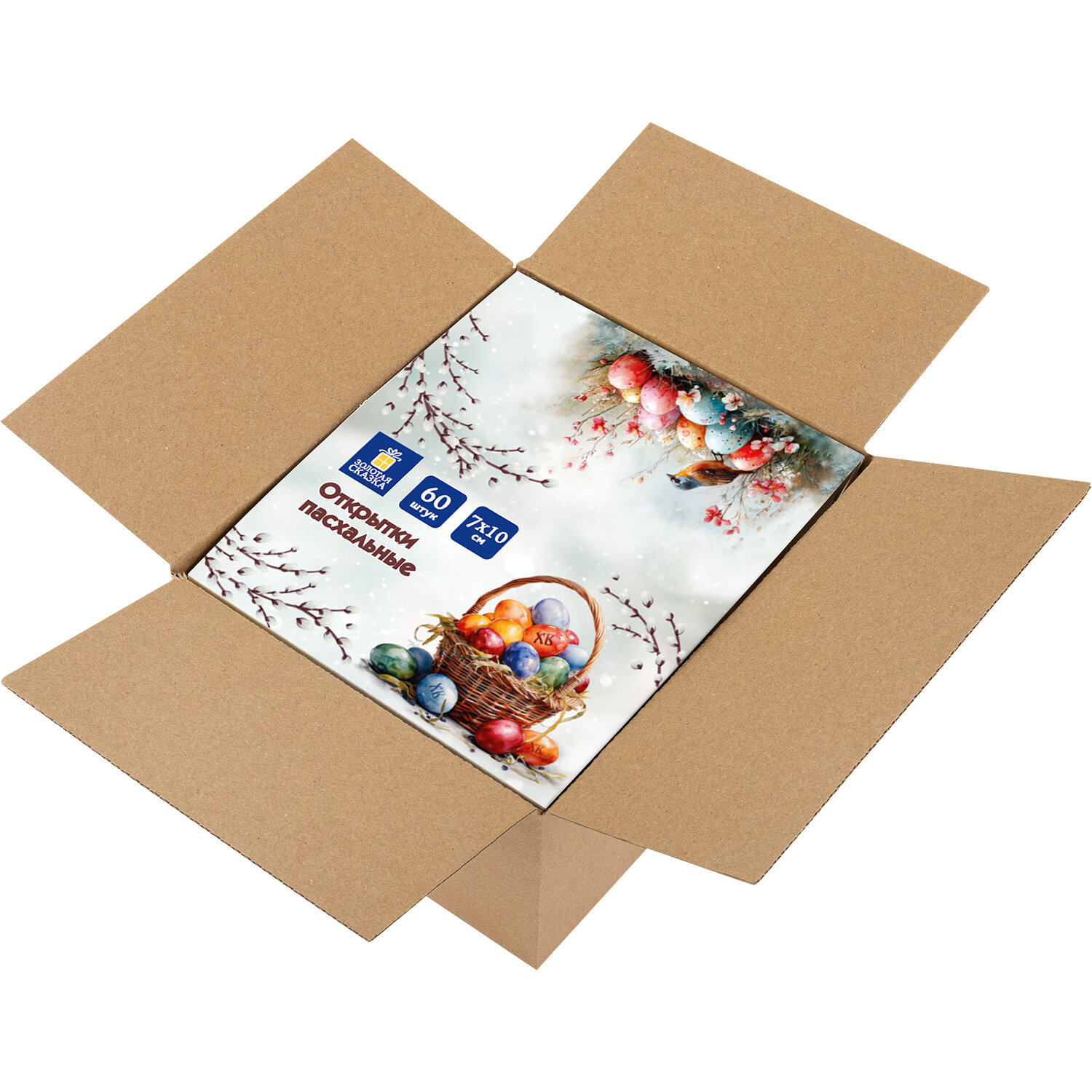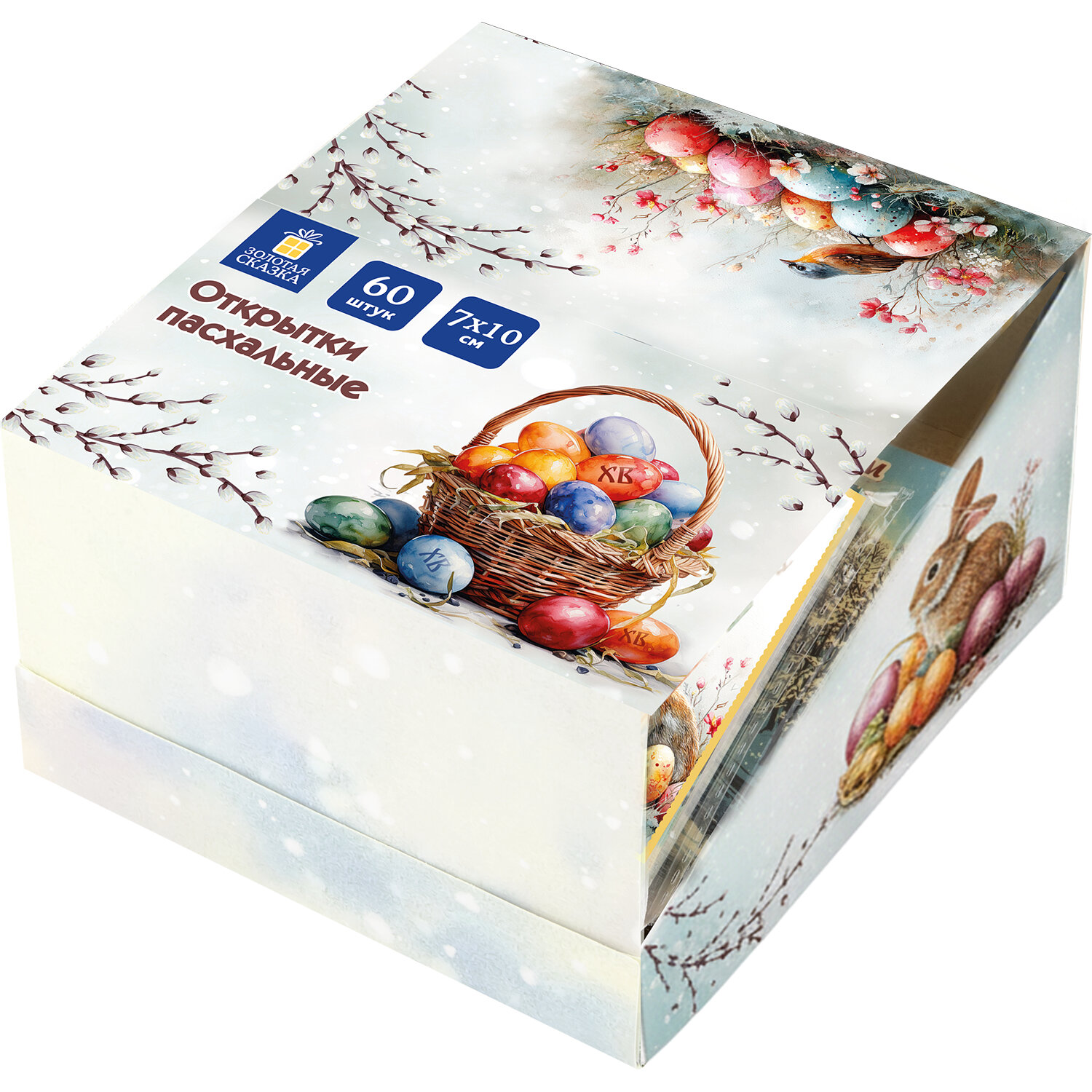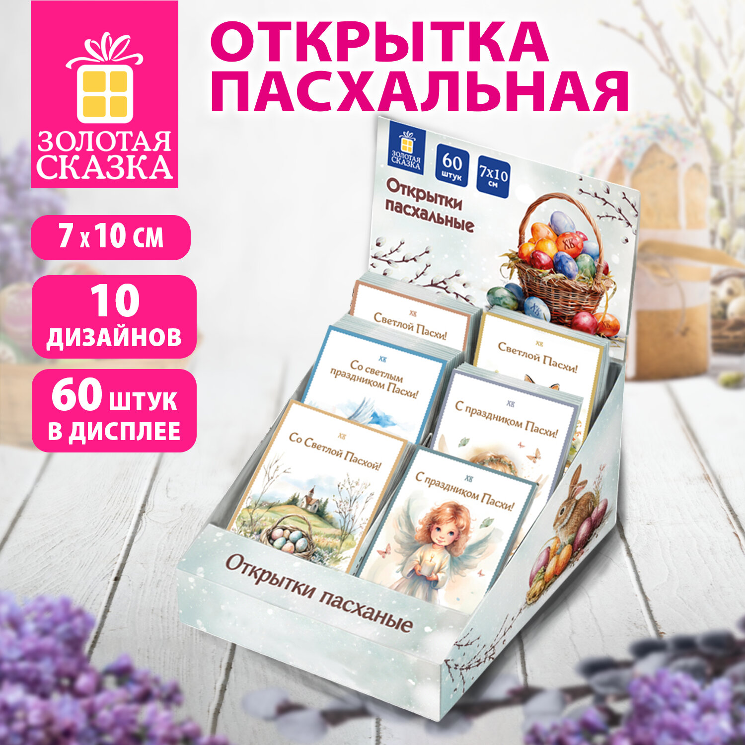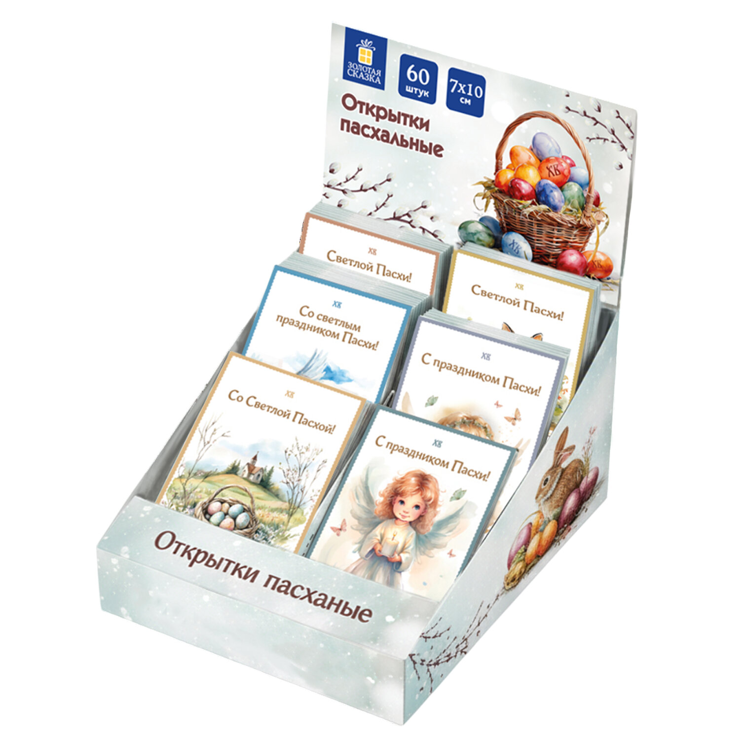 Открытка пасхальная (1 шт.), 7х10 см "Светлая Пасха", картон, ассорти, ЗОЛОТАЯ СКАЗКА Код товара: 592642 23,23 ₽ Купить Производитель:ЗОЛОТАЯ СКАЗКА Настоящее пасхальное настроение в каждой детали с открытками ЗОЛОТАЯ СКАЗКА, созданными, чтобы дарить тепло и улыбки! Открытки размером 7х10 см изготовлены из плотного картона 250 г/м2 с глянцевой поверхностью. Открытки поставляются в 10 уникальных дизайнах: с изображением пасхальных яиц, цыплят, кроликов, куличами, ангелочков, цветочных мотивов и нежных весенних узоров (без возможности выбора). Удобный формат открыток идеален для того, чтобы положить в пакетик к куличу, прикрепить на упаковку, использовать как бирки или в качестве сувенира. А насыщенные краски и глянец придают открыткам праздничный блеск и делают их настоящим акцентом в любом оформлении. Поставляются в цветном картонном дисплее. Дисплей упакован в дополнительный гофрокороб.Производство: КитайТип товара: открытка пасхальнаяРазмер: 7х10 смКоличество в комплекте: 1 шт.Дизайн: Светлая ПасхаУпаковка: дисплейВес: 2 грРазмер упаковки: 0.1 × 7 × 10 смОбъём: 0.0001 м3Промежуточная упаковка: 60 штТранспортная упаковка: 480 штШтрих-код: 4606224535616 Сертификат-1.jpg Сертификат-2.jpg