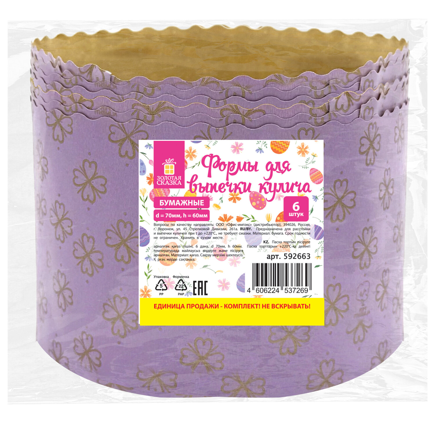 Форма бумажная для выпечки пасхального кулича "Клевер", КОМПЛЕКТ 6 шт., 7х6 см, ЗОЛОТАЯ СКАЗКА, 592663 Код товара: 592663 79,21 ₽ Купить Производитель:ЗОЛОТАЯ СКАЗКА Сделайте пасхальный кулич по-настоящему идеальным с комплектом бумажных форм для куличей "Клевер" ЗОЛОТАЯ СКАЗКА! В комплекте 6 бумажных форм размером 7х6 см, выполненных в нежном лавандовом цвете с декоративным принтом в виде клевера – символа удачи и весны. Формы идеально подходят для расстойки, использования в духовке при t до +220 °С и не требуют смазки. После выпечки можно украсить кулич сверху глазурью, посыпкой или марципаном – форма дополнит праздничный вид десерта. Идеальны для домашней выпечки на Пасху!Производство: РоссияТип товара: форма для выпечки куличаМатериал: бумагаРазмер: 7х6 смКоличество в комплекте: 6 шт.Дизайн: Клевер сиреньУпаковка: пакетВес: 29 грРазмер упаковки: 7.5 × 8.1 × 7.4 смОбъём: 0.0008 м3Промежуточная упаковка: 16 штТранспортная упаковка: 16 штШтрих-код: 4606224537269 Файлы Сертификат-1.jpg Сертификат-2.jpg Сертификат-3.jpg Сертификат-4.jpg Сертификат-5.jpg Сертификат-6.jpg Сертификат-7.jpg