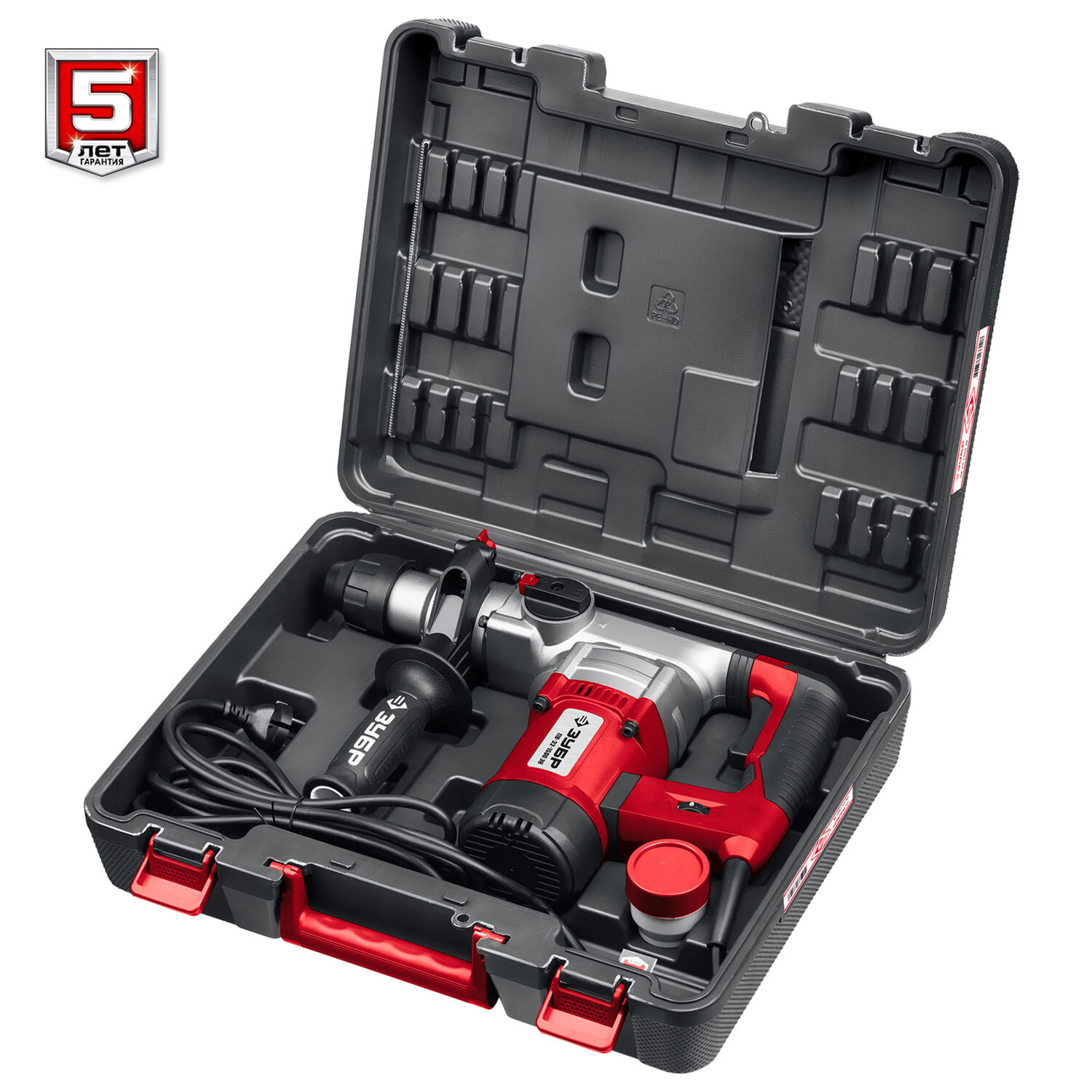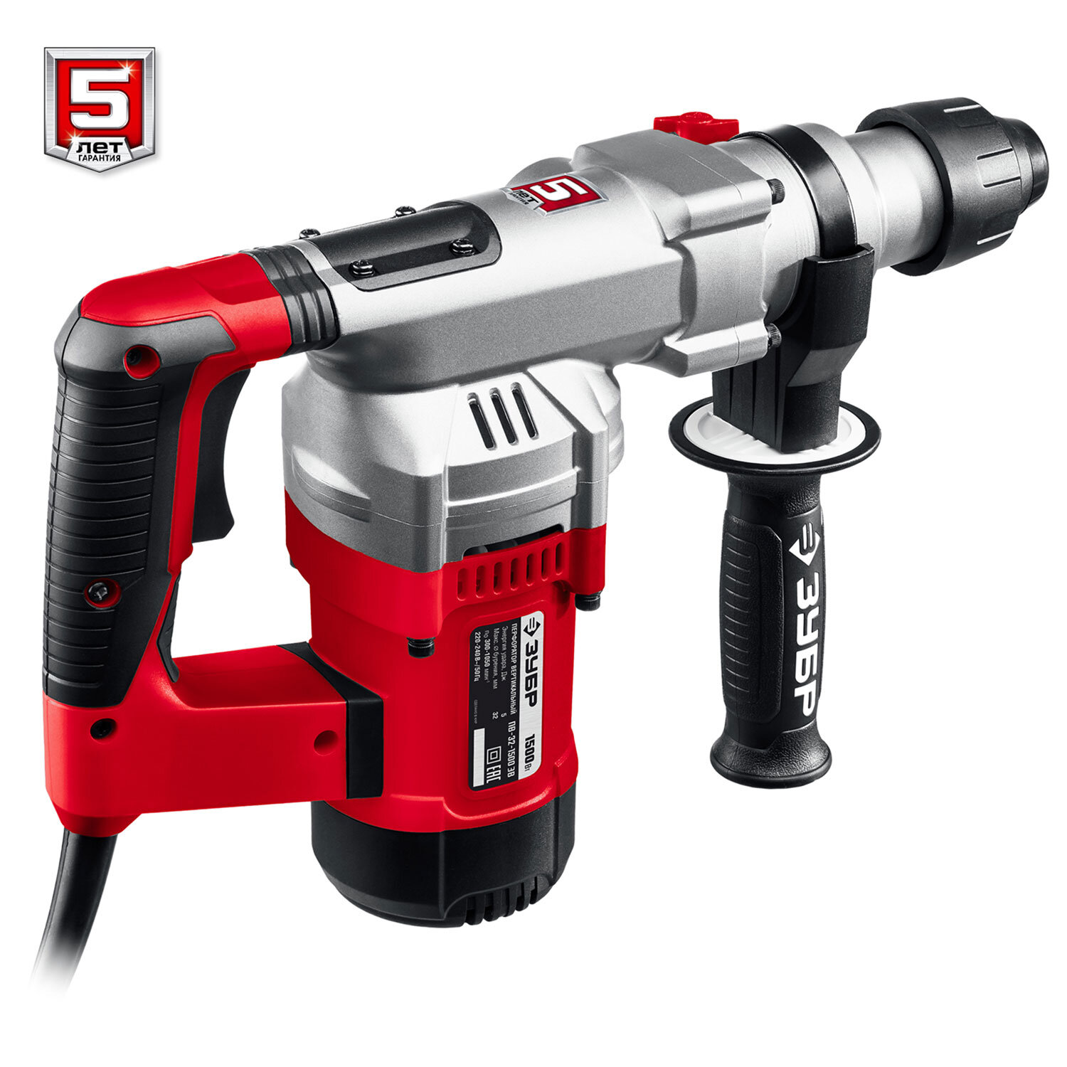 Перфоратор 1500 Вт, 1050 об/мин, 4200 уд/мин, SDS Plus, АВТ, ЗУБР Мастер Код товара: 671518 11 572,4 ₽ Купить Производитель:ЗУБР Легкий инструмент в вертикальной компоновке для сверления и бурения отверстий, а также ударного долбления. Очень удобная работа благодаря небольшому весу, антивибрационной системе, индикаторам состояния и быстрой замене расходного инструмента. Достаточная сила удара позволяет быстро выполнять отверстия даже в самых твердых материалах без перегрузки изделия и утомления. Три режима работы - сверление, сверление с ударом и удар - делают изделие универсальным инструментом широкого применения. Патрон SDS Plus для установки широкого спектра расходного инструмента и быстрой замены в процессе работы. Регулировка частоты вращения и ударов помогает при выполнении различных работ и работе с разными материалами. Антивибрационная система значительно снижает вредное воздействие вибрации на оператора при длительной работе. Предохранительная муфта эффективно защищает изделие и оператора от перегрузок при заклинивании инструмента. Небольшой вес и эффективный теплоотвод благодаря корпусу редуктора из магниевого сплава. Надежность и долговечность обеспечиваются качественными материалами, точностью изготовления и тщательностью сборки. Противоскользящее покрытие рукояток для надежного удержания. Удобный вместительный кейс в комплекте для хранения и переноски изделия и сменного инструмента. Сетевой кабель длиной 3 метра.Производство: КитайТип патрона: SDS+Мощность: 1500 ВтЭнергия удара: 5 ДжКоличество ударов в минуту: 4200 уд/минСкорость вращения: 1050 об/минКоличество режимов работы: 3Тип расположения двигателя: вертикальныйРегулировка скорости: даМаксимальный диаметр сверления (бетон): 32 ммМаксимальный диаметр сверления (дерево): 40 ммМаксимальный диаметр сверления (металл): 13 ммТип упаковки: кейсДлина: 430 ммШирина: 330 ммГлубина: 125 ммВес изделия нетто: 6.78 кгВес: 7,13 кгРазмер упаковки: 12.7 × 44.1 × 34.3 смОбъём: 0.0228 м3Промежуточная упаковка: 2 штТранспортная упаковка: 2 штШтрих-код: 4606373433108 Приложение-1.pdf