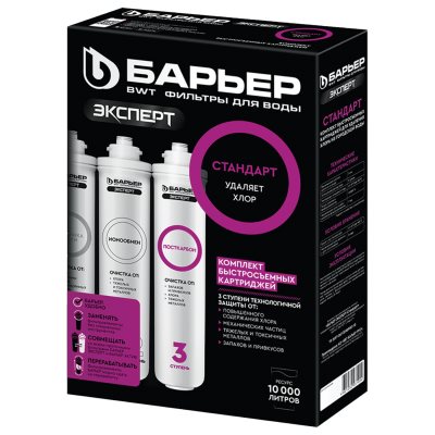 Наша организация сотрудничает с юридическими лицами и индивидуальными предпринимателями. С физическими лицами, в связи с отсутствием ККА по ФЗ от 22.05.2023 г. N 54ФЗ наша организация не сотрудничает. Каталог Популярное Новинки По размеру скидки Дешевле Дороже По названию А-Я По названию Я-А Код: 600264Сменная кассета БАРЬЕР "Стандарт", универсальная, ресурс 350 литров, К041Р20 342,4 ₽Купить Код: 600404Сменная кассета БАРЬЕР "Жесткость", для жесткой воды, ресурс 350 литров 363,55 ₽Купить Код: 605409Сменная кассета БАРЬЕР "Стандарт", универсальная, КОМПЛЕКТ 3 шт., ресурс 3х350 литров 948,11 ₽Купить Код: 605413Кувшин-фильтр для очистки воды БАРЬЕР "Твист", 4 л, со сменной кассетой, зеленый 598,08 ₽Купить Код: 605415Кувшин-фильтр для очистки воды БАРЬЕР "Гранд Neo", 4,2 л, со сменной кассетой, ультрамарин 724,42 ₽Купить Код: 600405Сменная кассета БАРЬЕР "Железо", для удаления тяжелых металлов, ресурс 350 литров 432 ₽Купить Код: 609281Сменные кассеты БАРЬЕР "Жесткость", для жесткой воды, КОМПЛЕКТ 3 шт., ресурс 3х350 литров 976,32 ₽Купить Код: 609282Сменная кассета БАРЬЕР "Жесткость Х2", для жесткой воды, ресурс 350 литров 376 ₽Купить Код: 609280Кувшин-фильтр для очистки воды БАРЬЕР "Норма", 3,6 л, со сменной кассетой, малахит 600 ₽Купить Код: 605402Картриджи сменные БАРЬЕР "Эксперт Жесткость", для холодной воды, 3 ступени, ресурс 10000 л, комплект 3 шт. 2 806,75 ₽Купить Код: 605403Картриджи сменные БАРЬЕР "Эксперт Стандарт", для холодной воды, 3 ступени, ресурс 10000 л, комплект 3 шт. 2 836,8 ₽Купить Код: 605416Фильтр для воды БАРЬЕР "Эксперт Стандарт", для холодной воды, 3 ступени, ресурс 10000 л, кран в комплекте 5 053,76 ₽Купить Код: 702810Сменная кассета БАРЬЕР "Актив Сила Иммунитета", для минерализации воды, ресурс 350 литров 426,24 ₽Купить Код: 702811Сменная кассета БАРЬЕР "Жесткость Железо", для жесткой и железистой воды, ресурс 350 литров 426,24 ₽Купить Код: 702812Сменная кассета БАРЬЕР "Лайт", от запаха хлора, ресурс 200 литров 256,96 ₽Купить Код: 702814Сменная кассета БАРЬЕР "Классик для жесткой воды", для жесткой воды, ресурс 200 литров 291,2 ₽Купить Код: 702835Картриджи сменные БАРЬЕР "ПРОФИ Жесткость", 3 ступени, ресурс 10000 л, КОМПЛЕКТ 3 шт. 2 024,96 ₽Купить Код: 702838Фильтр для воды с краном в комплекте БАРЬЕР "ПРОФИ Жесткость", 3 ступени, ресурс 10000 л 4 178,08 ₽Купить Код: 702840Фильтр для воды с краном в комплекте БАРЬЕР "ПРОФИ Стандарт", 3 ступени, ресурс 10000 л 4 262,56 ₽Купить Код: 702845Фильтр для воды с краном в комплекте БАРЬЕР "ЭКСПЕРТ Жесткость", 3 ступени, ресурс 10000 л 4 369,31 ₽Купить Ничего не найдено Показать ещё Показано 20 из 24 товаров.