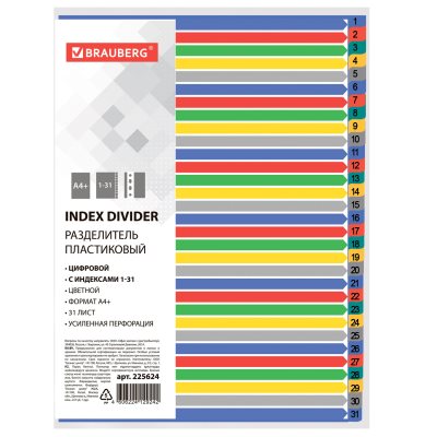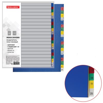 Разделители Популярное Новинки По размеру скидки Дешевле Дороже По названию А-Я По названию Я-А Код: 225611Разделитель пластиковый BRAUBERG, А4, 20 листов, цифровой 1-20, оглавление, цветной, РОССИЯ 509,01 ₽Купить Код: 225612Разделитель пластиковый BRAUBERG, А4, 31 лист, цифровой 1-31, оглавление, цветной, РОССИЯ 759,48 ₽Купить Код: 225613Разделитель пластиковый BRAUBERG, А4, 12 листов, Январь-Декабрь, оглавление, цветной, РОССИЯ 327,83 ₽Купить Код: 225615Разделитель пластиковый BRAUBERG, А4, 20 листов, алфавитный А-Я, оглавление, цветной, РОССИЯ 499,66 ₽Купить Код: 225624Разделитель пластиковый широкий BRAUBERG А4+, 31 лист, цифровой 1-31, оглавление, цветной 780,65 ₽Купить Код: 225625Разделитель пластиковый широкий BRAUBERG, А4+, 12 листов, Январь-Декабрь, оглавление, цветной 346 ₽Купить Код: 225627Разделитель пластиковый широкий BRAUBERG А4+, 20 листов, алфавитный А-Я, оглавление, цветной 451,1 ₽Купить Код: 225628Разделитель пластиковый МАЛЫЙ ФОРМАТ (210x162мм), А5, 5 листов, цифровой 1-5, оглавление, BRAUBERG 69,26 ₽Купить Код: 225632Разделитель пластиковый (полосы 100х240 мм), 12 листов, без индексации, по цветам, BRAUBERG 190,62 ₽Купить Код: 225967Разделители листов (полосы 240х105 мм) картонные, КОМПЛЕКТ 100 штук, ассорти, BRAUBERG 336,6 ₽Купить Код: 225972Разделители листов (трапеция 230х120х60 мм) картонные, КОМПЛЕКТ 100 штук, ассорти, BRAUBERG 336,6 ₽Купить Ничего не найдено Показать ещё Показано 31 из 31 товаров.