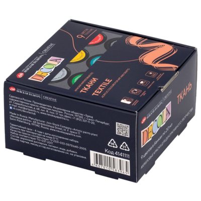 Краски по ткани Популярное Новинки По размеру скидки Дешевле Дороже По названию А-Я По названию Я-А ЛиквидацияКод: 191696Краски акриловые по ткани МЕТАЛЛИК ОСТРОВ СОКРОВИЩ 6 цветов по 25 мл 266,36 ₽Купить ЛиквидацияКод: 191695Краски акриловые по ткани ПЕРЛАМУТРОВЫЕ ОСТРОВ СОКРОВИЩ 6 цветов по 25 мл 208,91 ₽Купить Код: 190391Краски по ткани акриловые "Декола", 12 цветов по 20 мл, в баночках, Невская Палитра 820,69 ₽Купить Код: 191693Краски акриловые по ткани ОСТРОВ СОКРОВИЩ 6 цветов по 25 мл 236,5 ₽Купить Код: 191694Краски акриловые по ткани ОСТРОВ СОКРОВИЩ 12 цветов по 25 мл 310,86 ₽Купить Код: 191697Краски акриловые по ткани НЕОН ОСТРОВ СОКРОВИЩ 6 цветов по 25 мл 281,16 ₽Купить Код: 191040Краски по ткани акриловые "Декола" "Батик по шелку", НАБОР 6 цветов по 50 мл + резерв 2 тубы по 18 мл, Невская Палитра 839,48 ₽Купить Код: 191043Краски по ткани акриловые "Декола", 6 цветов по 20 мл, в баночках, Невская Палитра 407,21 ₽Купить Код: 191045Краски по ткани акриловые "Декола", 9 цветов по 20 мл, в банках, Невская Палитра 607,23 ₽Купить Код: 192609Краски по ткани акриловые "Декола", 18 цветов по 20 мл, в банках, Невская Палитра 1 203,09 ₽Купить Код: 192615Краски по ткани акриловые "Я - Художник!", 16 цветов по 15 мл, в банках, Невская Палитра 513,79 ₽Купить Код: 192616Краски по ткани акриловые "Я - Художник!", 6 цветов по 15 мл, в банках, Невская Палитра 248,87 ₽Купить Код: 192617Краски по ткани акриловые "Я - Художник!", 9 цветов по 15 мл, в банках, Невская Палитра 369,29 ₽Купить Код: 192627Краски по ткани акриловые "Декола", 2 цвета по 50 мл, в банках, Невская Палитра 373,16 ₽Купить Код: 192628Краски акриловые по коже "Декола", 11 цветов + акриловый лак по 20 мл, в банках, Невская Палитра 1 172,24 ₽Купить Код: 192441Краски акриловые по ткани 6 цветов по 20 мл, BRAUBERG HOBBY 293,21 ₽Купить Код: 192442Краски акриловые по ткани 9 цветов по 10 мл, BRAUBERG HOBBY 255,8 ₽Купить Ничего не найдено Показать ещё Показано 17 из 17 товаров.