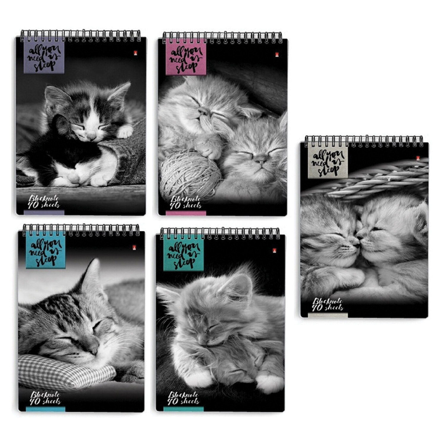 Блокнот А5, 40 л., гребень, ламинированный картон, клетка, Альт, "Кошки", (5 видов) Код товара: 111287 66 ₽ Купить Производитель:АЛЬТ Вертикально ориентированный блокнот для записей. Блок скреплен металлическим гребнем, что позволяет вырывать листы, не нарушая целостность остальных. Блокнот идеально подойдет для записей во время совещаний, конференций, семинаров. Размер изделия: 127х202 мм. Обложка (размер): 127х200 мм. Блок (размер): 127х200 мм.Производство: РоссияФормат: А5Количество листов: 40Тип обложки: мелованный картонСкрепление блока: гребень (евроспираль)Расположение переплета: верхнееЛиновка блока: клеткаСерия: ЖИВОЙ МИРТип спецэффектов на обложке: лакированныйКоличество разделителей: 0 шт.Внутренний блок: офсетПлотность внутреннего блока: 55 г/м2Цвет внутреннего блока: белыйШирина: 127 ммДлина: 202 ммЦвет обложки: с дизайномДизайн обложки: с рисункомКоличество дизайнов в упаковке: 5 шт.Вес: 90 грРазмер упаковки: 0.8 × 20 × 13.3 смОбъём: 0.0002 м3Промежуточная упаковка: 50 штТранспортная упаковка: 50 штШтрих-код: 4606016147591 Сертификат-1.jpg Сертификат-2.jpg Сертификат-3.jpg