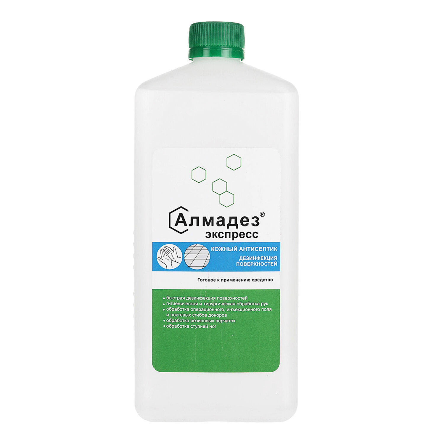 Средство дезинфицирующее «Алмадез-экспресс» представляет собой готовую к применению прозрачную бесцветную жидкость со специфическим запахом изопропилового спирта без посторонних механических включений. В качестве действующих веществ содержит: изопропиловый спирт (2-пропанол) - 63,5% и алкилдиметилбензиламмоний хлорид - 0,1%, а также функциональные добавки.