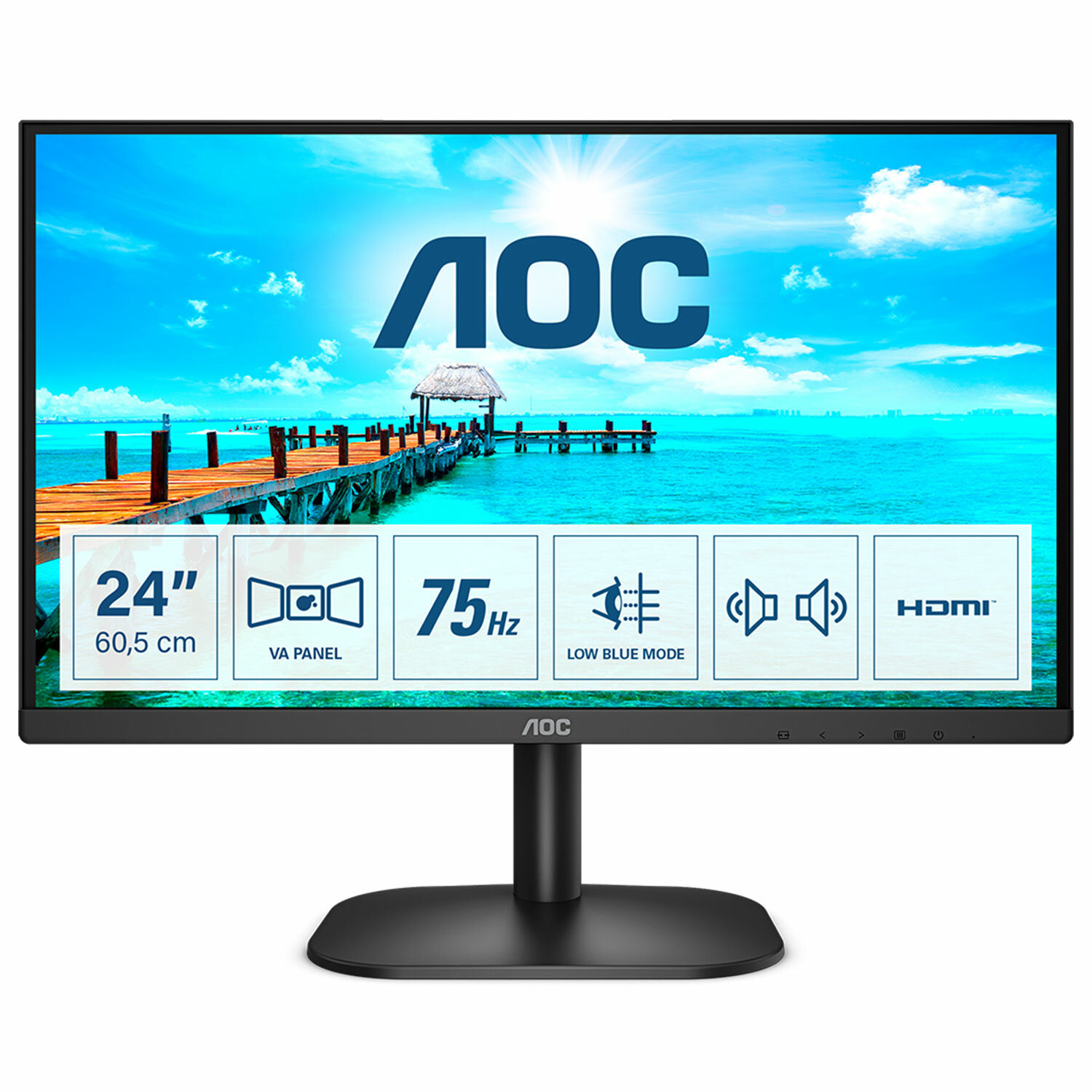 Монитор AOC 24B2XDAM 23.8" (60 см)/1920x1080/16:9/VA/4ms/250cd/HDMI/VGA/черный Код товара: 354941 14 075,21 ₽ Купить Производитель:AOC 23.8" Монитор AOC 24B2XDAM благодаря своим особенностям станет отличным выбором для комфортной работы и развлечений. В основе этой модели используется VA-матрица диагональю 23.8" с равномерной LED-подсветкой, что может обеспечить качественную передачу цветов и оттенков, а также широкие углы обзора по горизонтали и вертикали – вплоть до 178°. Благодаря матовому покрытию экран не подвержен бликам от солнца или искусственных источников света, а яркость до 250 Кд/м2 и контрастность 3000:1 обеспечит комфортную работу в дневное время. Разрешение матрицы составляет 1920x1080 пикселей, что способствует высокой четкости даже самых маленьких элементов изображения. Монитор AOC 24B2XDAM выполнен в корпусе из высококачественного черного пластика и отличается лаконичным дизайном, что вкупе с тонкими рамками вокруг экрана подарит вам комфорт при работе и украсит ваш интерьер дома или в офисе. Для подключения периферии на задней панели предусмотрены различные выходы, среди которых есть VGA (D-Sub), DVI-D и HDMI. Также на корпусе предусмотрен разъем для наушников. Модель также отличается встроенной акустической системой мощностью 2 Вт и возможностью монтажа на стену при помощи крепления VESA 100x100 мм. Монитор поставляется с набором кабелей и адаптером питания. Вся информация на сайте о товарах носит справочный характер и не является публичной офертой в соответствии с пунктом 2 статьи 437 ГК РФ. Производитель оставляет за собой право изменять характеристики товара, его внешний вид и комплектность без предварительного уведомления продавца.Производство: КитайДиагональ экрана: 23.8 "Разрешение экрана: 1920х1080 pxТип матрицы: VAСоотношение сторон экрана: 16:9Поверхность экрана: матоваяЯркость: 250 кд/м2Статическая контрастность: 3000:1Динамическая контрастность: 20M:1Время отклика: 4 мсМаксимальная частота обновления: 75 ГцПлотность пикселей: 93 ppiУглы обзора по вертикали/горизонтали: 178/178Разъем DisplayPort: 0 шт.Разъем HDMI: 1 шт.Разъем VGA (D-Sub): 1 шт.Разъем DVI: 1 шт.Разъем MHL-HDMI: 0 ммРазъем mini jack 3.5 мм: 1 шт.Разъем USB 2.0: 0 шт.Разъем USB 3.0: 0 шт.Разъем USB Type-C: 0 шт.Размер VESA крепления: 100х100Встроенная акустика: даРегулировка наклона: даЦвет: черныйШирина без подставки: 539 ммВысота без подставки: 321 ммГлубина без подставки: 38 ммШирина с подставкой: 539 ммВысота с подставкой: 420 ммГлубина с подставкой: 187 ммВес с подставкой: 2.7 кгВес: 4,66 кгРазмер упаковки: 47.8 × 61.3 × 10.2 смОбъём: 0.0299 м3Промежуточная упаковка: 1 штТранспортная упаковка: 1 штШтрих-код: 4038986149600 Сертификат-1.jpg Сертификат-2.jpg