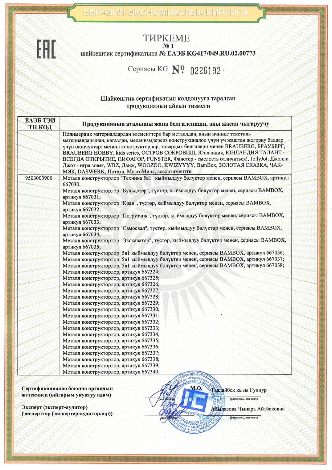 Конструктор металлический "Кран", цветной, с подвижными деталями, 139 элементов, BAMBOX Код товара: 667032 387,46 ₽ Купить Производитель:BAMBOX Металлический конструктор BAMBOX "Кран" – развивающая игрушка для детей старше 6 лет. Конструктор идеально подходит для домашних игр и занятий на уроках труда. Способствует комплексному развитию ребёнка. Каждый элемент металлического конструктора BAMBOX "Кран" продуман до мелочей. Круглые отверстия упрощают соединение деталей, а набор инструментов позволяет надежно закрепить их винтами и гайками. С помощью этого набора юный конструктор сможет не только собрать модель крана, но и начать постигать основы механики и техники. Это отличный способ развить креативность и научиться решать задачи, требующие логического мышления. Комплектация набора: 139 элементов, гаечный ключ, отвертка, пошаговая инструкция по сборке. Конструктор предназначен для детей старше 6 лет.Производство: РоссияТип товара: конструкторСерия: Для уроков трудаМатериал: металл, пластикНаличие подвижных деталей: даУровень сложности сборки: среднийРекомендуемый возраст: от 6 летТип деталей: разные формыСюжет: ТранспортКоличество элементов: 139 шт.Количество моделей для сборки: 1Комплектация: 1 отвертка, инструкция по сборкеЦвет: разноцветныйУпаковка: картонная коробкаВес: 246 грРазмер упаковки: 3.4 × 17.3 × 12 смОбъём: 0.0009 м3Промежуточная упаковка: 22 штТранспортная упаковка: 22 штШтрих-код: 4606224530505 Файлы Сертификат-1.jpg Сертификат-2.jpg Сертификат-3.jpg Сертификат-4.jpg Сертификат-5.jpg Сертификат-6.jpg
