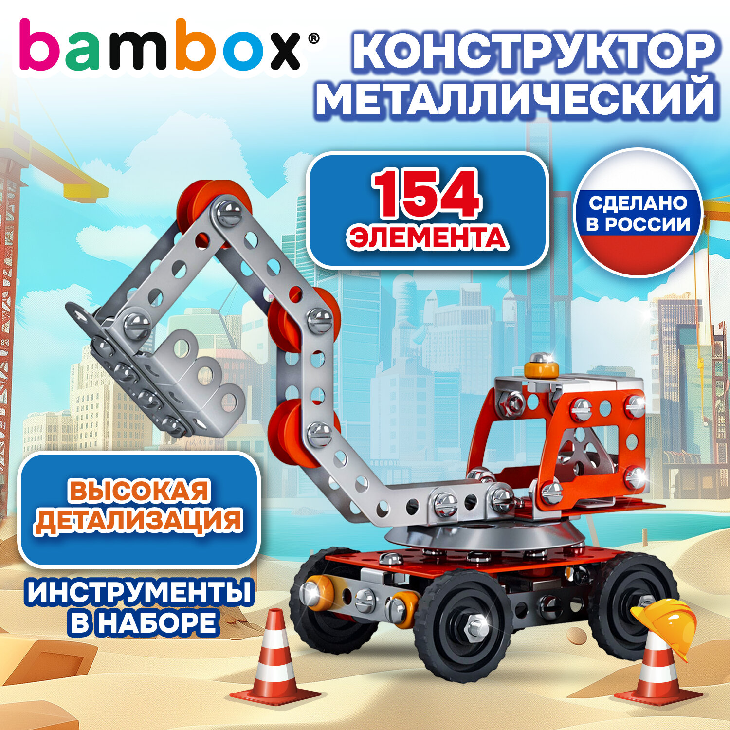 Конструктор металлический "Экскаватор", цветной, с подвижными деталями, 154 элемента, BAMBOX Код товара: 667035 420,95 ₽ Купить Производитель:BAMBOX Металлический конструктор BAMBOX "Экскаватор" – развивающая игрушка для детей старше 6 лет. Конструктор идеально подходит для занятий на уроках труда и комплексного развития ребёнка. Каждый элемент металлического конструктора BAMBOX "Экскаватор" продуман до мелочей. Круглые отверстия упрощают соединение деталей, а набор инструментов позволяет надежно закрепить их винтами и гайками. С помощью этого набора юный конструктор сможет не только собрать модель экскаватор, но и начать постигать основы механики и техники. Это отличный способ развить креативность и научиться решать задачи, требующие логического мышления. Комплектация набора: 154 элемента, гаечный ключ, отвертка, пошаговая инструкция по сборке. Конструктор предназначен для детей старше 6 лет.Производство: РоссияТип товара: конструкторСерия: Для уроков трудаМатериал: металл, пластикНаличие подвижных деталей: даУровень сложности сборки: среднийРекомендуемый возраст: от 6 летТип деталей: разные формыСюжет: ТранспортКоличество элементов: 154 шт.Количество моделей для сборки: 1Комплектация: 1 отвертка, инструкция по сборкеЦвет: разноцветныйУпаковка: картонная коробкаВес: 230 грРазмер упаковки: 3.3 × 12.2 × 17.3 смОбъём: 0.0009 м3Промежуточная упаковка: 22 штТранспортная упаковка: 22 штШтрих-код: 4606224530536 Файлы Сертификат-1.jpg Сертификат-2.jpg Сертификат-3.jpg Сертификат-4.jpg Сертификат-5.jpg Сертификат-6.jpg