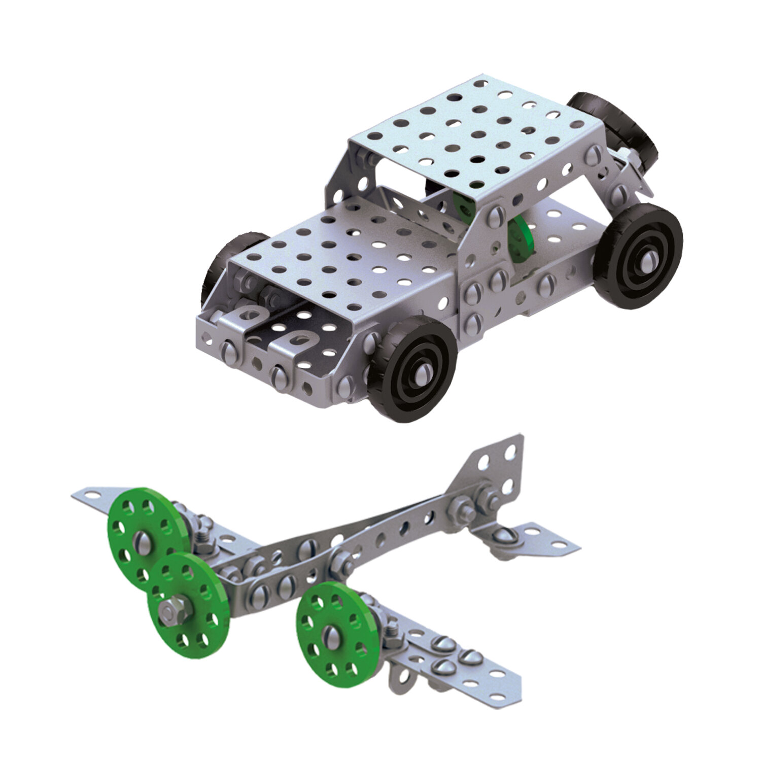 Конструктор металлический "Для уроков труда №3", 5 в 1 с подвижными деталями, 146 элементов, BAMBOX (БАМБОКС) Код товара: 667038 458,72 ₽ Купить Производитель:BAMBOX Металлический конструктор BAMBOX "Для уроков труда №3" – развивающая игрушка для детей старше 6 лет. Конструктор идеально для домашних игр и занятий на уроках труда. Способствует комплексному развитию ребёнка. Каждый элемент металлического конструктора BAMBOX "Для уроков труда №3" продуман до мелочей. Круглые отверстия упрощают соединение деталей, а набор инструментов позволяет надежно закрепить их винтами и гайками. С помощью этого набора юный конструктор сможет не только собрать предлагаемые модели, но и начать постигать основы механики и техники. Это отличный способ развить креативность и научиться решать задачи, требующие логического мышления. Комплектация набора: 146 элементов, гаечный ключ, отвертка, пошаговая инструкция по сборке. Конструктор предназначен для детей старше 6 лет.Производство: РоссияТип товара: конструкторСерия: Для уроков трудаМатериал: металл, пластикНаличие подвижных деталей: даУровень сложности сборки: среднийРекомендуемый возраст: от 6 летТип деталей: разные формыСюжет: Техно-коллекцияКоличество элементов: 146 шт.Количество моделей для сборки: 5Комплектация: 1 отвертка, инструкция по сборкеЦвет: разноцветныйУпаковка: картонная коробкаВес: 441 грРазмер упаковки: 3.6 × 23.2 × 20.3 смОбъём: 0.0024 м3Промежуточная упаковка: 10 штТранспортная упаковка: 10 штШтрих-код: 4606224530567 Файлы Сертификат-1.jpg Сертификат-2.jpg Сертификат-3.jpg Сертификат-4.jpg Сертификат-5.jpg Сертификат-6.jpg