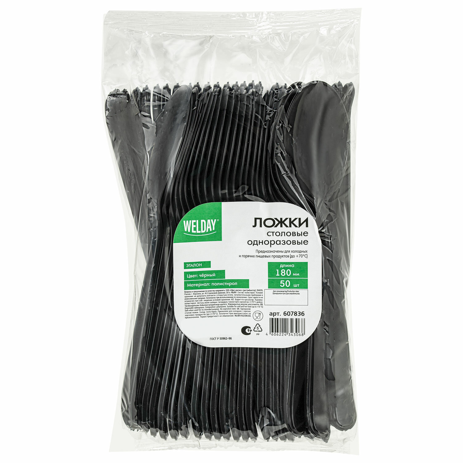 Ложка столовая одноразовая пластиковая 180 мм, черная, КОМПЛЕКТ 50 шт., ЭТАЛОН, WELDAY (ВЭЛДЭЙ) Код товара: 607836 150,99 ₽ Купить Производитель:WELDAY Одноразовые столовые ложки WELDAY используются в офисе, на предприятиях общественного питания, в дороге и быту. Приборы изготовлены из высококачественного пищевого полистирола черного цвета, поэтому они легкие и безопасные в использовании. Подойдут как для холодных, так и для горячих (до +70 °C) блюд. Длина – 180 мм. В комплекте – 50 штук.Производство: РоссияТип товара: ложка столоваяНазначение: для холодного и горячегоДлина: 180 ммСоответствует требованиям ГОСТа: ГОСТ Р 50962-96Материал: полистиролКоличество в упаковке: 50 шт.Цвет: черныйВес: 216 грРазмер упаковки: 5.4 × 18.7 × 11.1 смОбъём: 0.0012 м3Промежуточная упаковка: 40 штТранспортная упаковка: 40 штШтрих-код: 4606224343068 Файлы Сертификат-1.jpg Сертификат-2.jpg Сертификат-3.jpg Сертификат-4.jpg