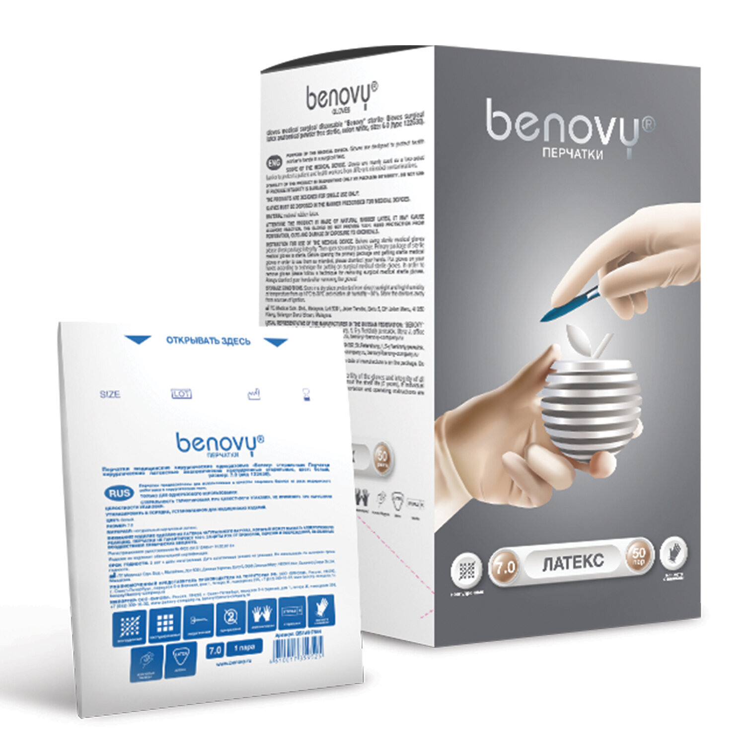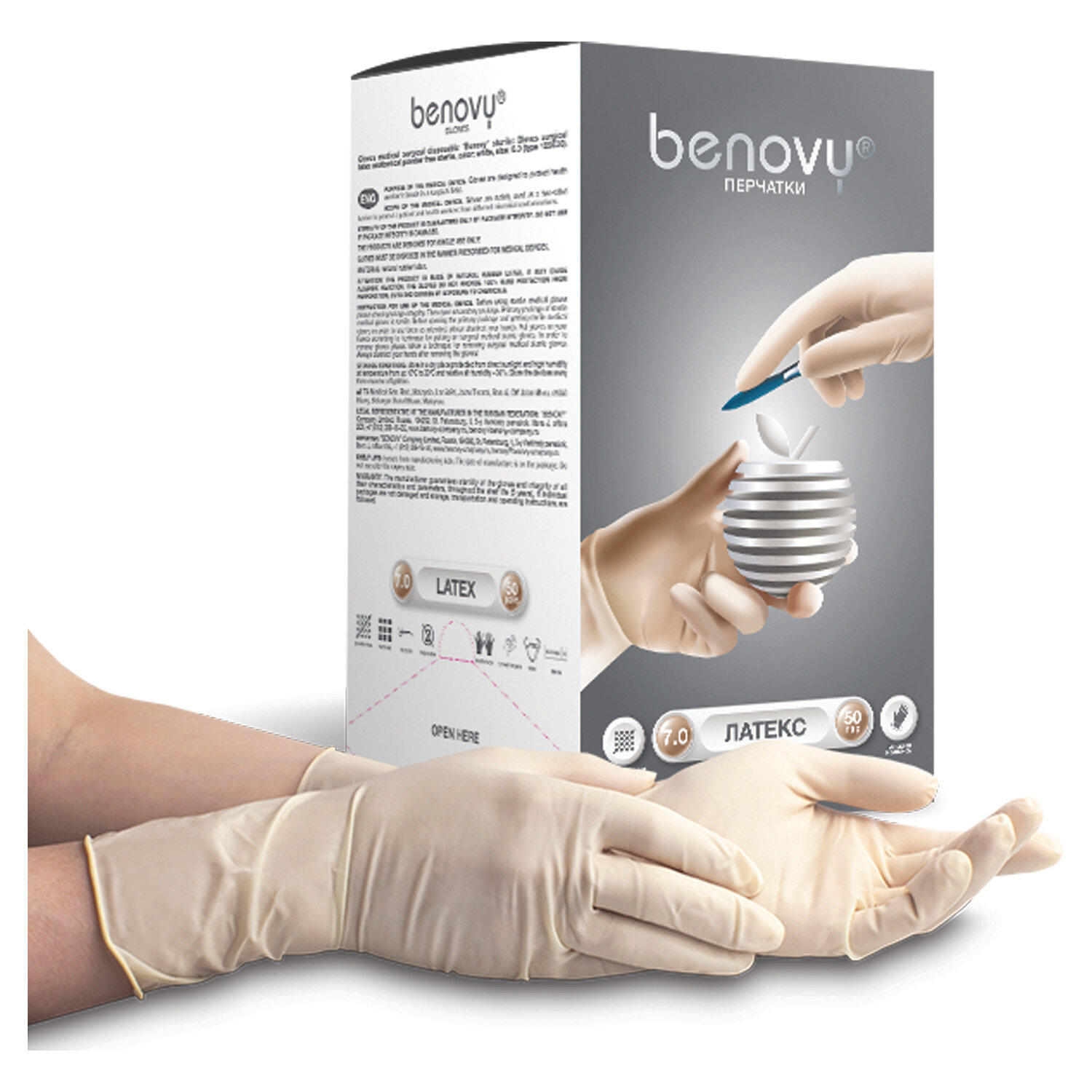 Перчатки латексные стерильные хирургические, КОМПЛЕКТ 50 пар (100 шт.), неопудренные, BENOVY, ЧЗ, размер M (7) Код товара: 631639 1 615,77 ₽ Купить Производитель:BENOVY Перчатки BENOVY хирургические стерильные используются в качестве защитного барьера на руках медицинского работника в хирургическом поле. Используются как двусторонний барьер для защиты пациента и медперсонала от различных загрязнений микроорганизмами. Перчатки хирургические стерильные предназначены для продолжительных оперативных хирургических вмешательств. Полностью повторяют анатомическое строение кисти и не создают дополнительное напряжение при работе. Мягкая, но прочная основа и форма, повторяющая строение руки, делают перчатку удобной и обеспечивают превосходную чувствительность в области пальцев и ладони. Микротекстурированная поверхность перчаток обеспечивает надёжный захват медицинских инструментов. Прочная манжета с закатанным вовнутрь валиком обеспечивает отличное облегание, при этом не сдавливая запястье. Внутреннее покрытие полимерное. Внимание! Изделие сделано из латекса натурального каучука, который может вызвать аллергическую реакцию. Только для одноразового использования. Стерильность гарантирована при целостности упаковки. Не применять при нарушении целостности упаковки. ИНСТРУКЦИЯ ПО ПРИМЕНЕНИЮ Перед применением перчаток медицинских стерильных необходимо убедиться в целостности упаковки, затем вскрыть внешнюю упаковку. Внутренняя упаковка перчаток медицинских является стерильной. Для того, чтобы открыть внутреннюю упаковку, достать перчатки и использовать их по назначению, необходимо предварительно обработать руки. Наденьте перчатки в соответствии с техникой надевания перчаток медицинских стерильных. Снятие перчаток следует выполнять согласно алгоритму снятия перчаток медицинских хирургических стерильных. Обязательно обработайте руки после снятия перчаток! Производитель гарантирует сохранность всех параметров и характеристик перчаток в течение всего срока годности при условии целостности упаковки, соблюдении условий хранения и эксплуатации в соответствии с инструкцией. ОБЛАСТЬ ПРИМЕНЕНИЯ Хирургия, акушерство и гинекология. Длина – 280 мм. ХРАНЕНИЕ И УТИЛИЗАЦИЯ Хранить в сухом месте, защищенном от воздействия прямых солнечных лучей и высокой влажности, при температуре от +10 до +30 °С. Изделие необходимо хранить вдали от источников возгорания. Сбор, временное хранение и вывоз отходов следует выполнять в соответствии со схемой обращения с медицинскими отходами, принятой в данной организации, осуществляющей медицинскую и/или фармацевтическую деятельность.Производство: КитайСтерильные: даМатериал: латексРазмер перчаток: 7-8 (M)Серия: ХирургическиеТип: хирургическиеНеопудренные: даТип поверхности: текстурированныеПовышенная чувствительность: даФорма: анатомическаяОсобенности: удлиненная манжетаСоответствует требованиям ГОСТа: Р 52238-2004Количество в комплекте: 50 парШирина ладони: 86 ммЦвет: белыйВид упаковки: картонная коробкаВес: 1,35 кгРазмер упаковки: 24.4 × 13.4 × 13.2 смОбъём: 0.005 м3Промежуточная упаковка: 8 штТранспортная упаковка: 8 штШтрих-код: 4660286033763 Файлы Сертификат-1.jpg Сертификат-2.jpg Сертификат-3.jpg Сертификат-4.jpg Сертификат-5.jpg Сертификат-6.jpg Сертификат-7.jpg Сертификат-8.jpg Сертификат-9.jpg Сертификат-10.jpg Сертификат-11.jpg Сертиф