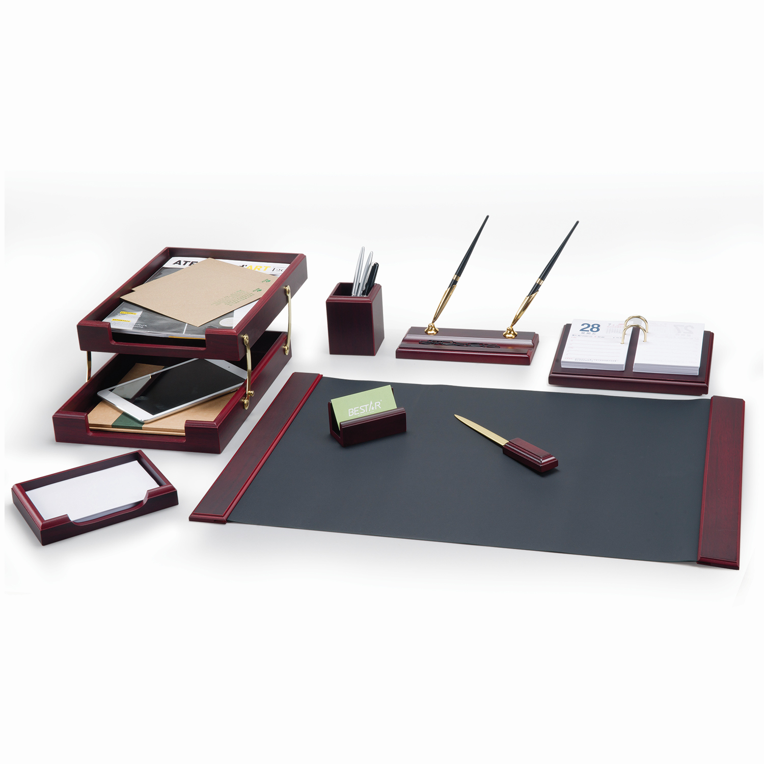 Набор подарочный настольный BESTAR "Titan" из дерева, 8 предметов, цвет "красное дерево" Код товара: 236366 19 267,12 ₽ Купить Производитель:BESTAR Настольный набор премиум-класса BESTAR "Titan" – оригинальный подарок, отличающийся утонченным стилем и совершенством деталей. В набор входит 8 универсальных предметов: - коврик для письма (размер – 60х42 см) - двойной лоток (для бумаг формата А4); - подставка для ручек (2 шариковые ручки в комплекте); - стакан-подставка для письменных принадлежностей и канцелярских мелочей; - нож для вскрытия конвертов; - подставка под листы для записей (листы в комплекте); - подставка под визитки; - подставка для перекидного календаря. Все предметы изготовлены из дерева красного цвета с золотистой фурнитурой. Набор упакован в подарочную коробку, а также дополнительно в защитный гофрокорб для транспортировки. Представленный комплект относится к премиальному ценовому сегменту.Производство: Тайвань (Китай)Серия: TitanЦвет: красное деревоКоличество предметов: 8 шт.Тип лотка: двойнойМатериал: МДФФирменная подарочная коробка: даСрок годности: 60 месВес: 4,09 кгРазмер упаковки: 12.9 × 50.5 × 38.5 смОбъём: 0.028 м3Промежуточная упаковка: 4 штТранспортная упаковка: 4 штШтрих-код: 4710899282598 Файлы Сертификат-1.jpg Сертификат-2.jpg Сертификат-3.jpg Сертификат-4.jpg Сертификат-5.jpg Сертификат-6.jpg Сертификат-7.jpg Сертификат-8.jpg Сертификат-9.jpg Сертификат-10.jpg Сертификат-11.jpg Сертификат-12.jpg Сертификат-13.jpg Сертификат-14.jpg Сертификат-15.jpg Сертификат-16.jpg Сертификат-17.jpg Сертификат-18.jpg Сертификат-19.jpg Сертификат-20.jpg