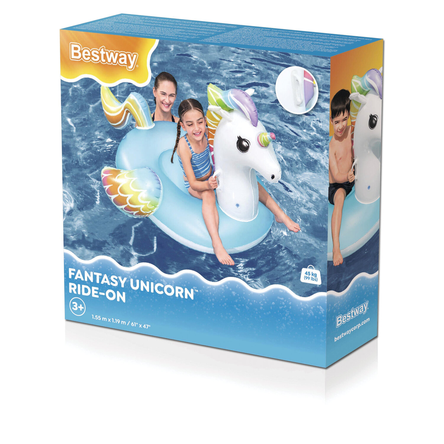 Надувная игрушка-наездник "Единорог" с ручками, 155x119 см, от 3 лет, до 45 кг, BESTWAY Код товара: 680088 1 364,22 ₽ Купить Производитель:BESTWAY Надувная игрушка-наездник "Единорог" BESTWAY – это милая игрушка для игр в воде для детей от 3 лет. Размер игрушки – 155х119 см. Надувная игрушка-наездник "Единорог" выполнена из современного винила высокой прочности. По бокам расположены две ручки, которые позволяют держаться во время купания. Для обеспечения максимальной безопасности изделие имеет две воздушные камеры. Благодаря усовершенствованному покрытию Color Shield игрушка сохраняет свои яркие цвета даже при ярком солнечном свете. Сборка и разборка надувной игрушки – это увлекательная детская игра, что делает ее идеальным компаньоном для любого купания. Изделие легко транспортировать и хранить. В комплект поставки входит не только увлекательное плавающее животное, но и ремонтная заплата, с помощью которой можно быстро и легко устранить небольшие повреждения.Производство: КитайТип товара: надувная игрушка-наездникВозраст: от 3 летРазмер: 155х119 смMaксимальная нагрузка: 45 кгКоличество в комплекте: 1 шт.Особенности: в виде единорогаЦвет: ассортиРисунок: нетСерия: надувные игрушки для плаванияМатериал : ПВХУпаковка: картонная коробкаВес: 1,21 кгРазмер упаковки: 7.3 × 24.1 × 23.9 смОбъём: 0.0048 м3Промежуточная упаковка: 8 штТранспортная упаковка: 8 штШтрих-код: 6941607365007 Файлы Сертификат-1.jpg Сертификат-2.jpg Сертификат-3.jpg Сертификат-4.jpg
