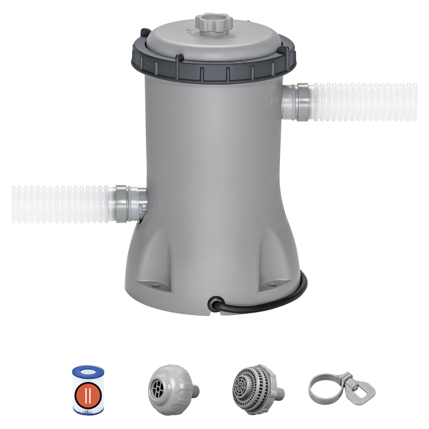 Картриджный фильтр-насос 2006 л/ч, картридж II, для бассейнов от 366 до 457 см, BESTWAY Код товара: 700949 3 391,1 ₽ Купить Производитель:BESTWAY Картриджный фильтр-насос BESTWAY 58383 для бассейнов диаметром 366–457 см обеспечивает эффективную очистку воды. Подходит для каркасных и надувных бассейнов. Производительность насоса — 2006 литров в час. Принцип работы фильтра очень прост: вода прокачивается через отверстие по шлангу, проходит фильтрацию через специальный картридж (тип II) и возвращается обратно в бассейн уже очищенной. Замена картриджа требуется раз в две недели при непрерывной работе. Устройство питается от сети 220 В, провода защищены от влаги. В комплект входят насос и один фильтр-картридж (тип II).Производство: КитайТип товара: фильтр-насос картридж IIНазначение: для каркасных и надувных бассейновРазмер: 21,3х43,1х31,7 смФорма: круглаяОсобенности: -Цвет: серыйСерия: аксессуары для бассейнаМатериал: пластикУпаковка: картонная коробкаВес: 2,73 кгРазмер упаковки: 31.9 × 27.4 × 27.4 смОбъём: 0.0269 м3Промежуточная упаковка: 4 штТранспортная упаковка: 4 штШтрих-код: 6941607353950 Файлы Сертификат-1.jpg Сертификат-2.jpg Сертификат-3.jpg Сертификат-4.jpg Сертификат-5.jpg