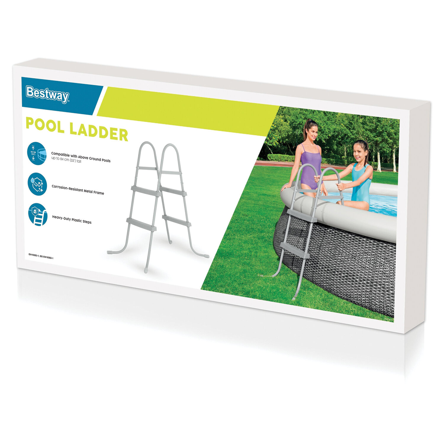 Лестница для бассейнов до 84 см, 2 ступеньки, без площадки, BESTWAY Код товара: 700955 3 903,43 ₽ Купить Производитель:BESTWAY Лестница для бассейнов BESTWAY обеспечивает удобный и безопасный вход и выход из бассейна. Коррозионно-устойчивая металлическая рама с прочными пластиковыми ступенями. Количество ступеней – 2. Подходит для наземных бассейнов высотой до 84 см. Простая сборка.Производство: КитайТип товара: лестницаНазначение: для каркасных и надувных бассейновРазмер: 84 смФорма: лестницаОсобенности: 2 ступенькиЦвет: серыйСерия: аксессуары для бассейнаМатериал: металл, пластикУпаковка: картонная коробкаВес: 5,93 кгРазмер упаковки: 8.9 × 87.5 × 42 смОбъём: 0.0327 м3Промежуточная упаковка: 1 штТранспортная упаковка: 1 штШтрих-код: 6941607354131 Файлы Сертификат-1.jpg Сертификат-2.jpg Сертификат-3.jpg Сертификат-4.jpg Сертификат-5.jpg Сертификат-6.jpg