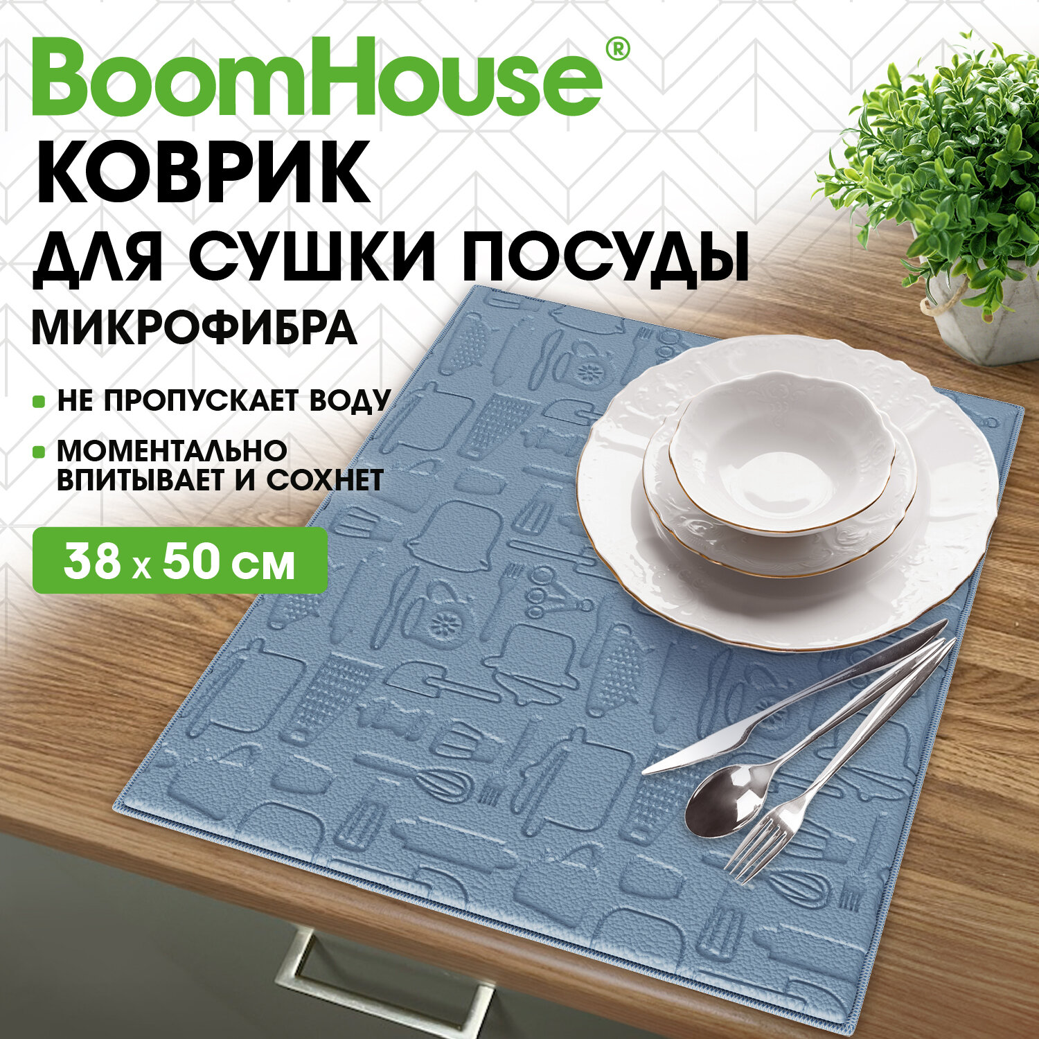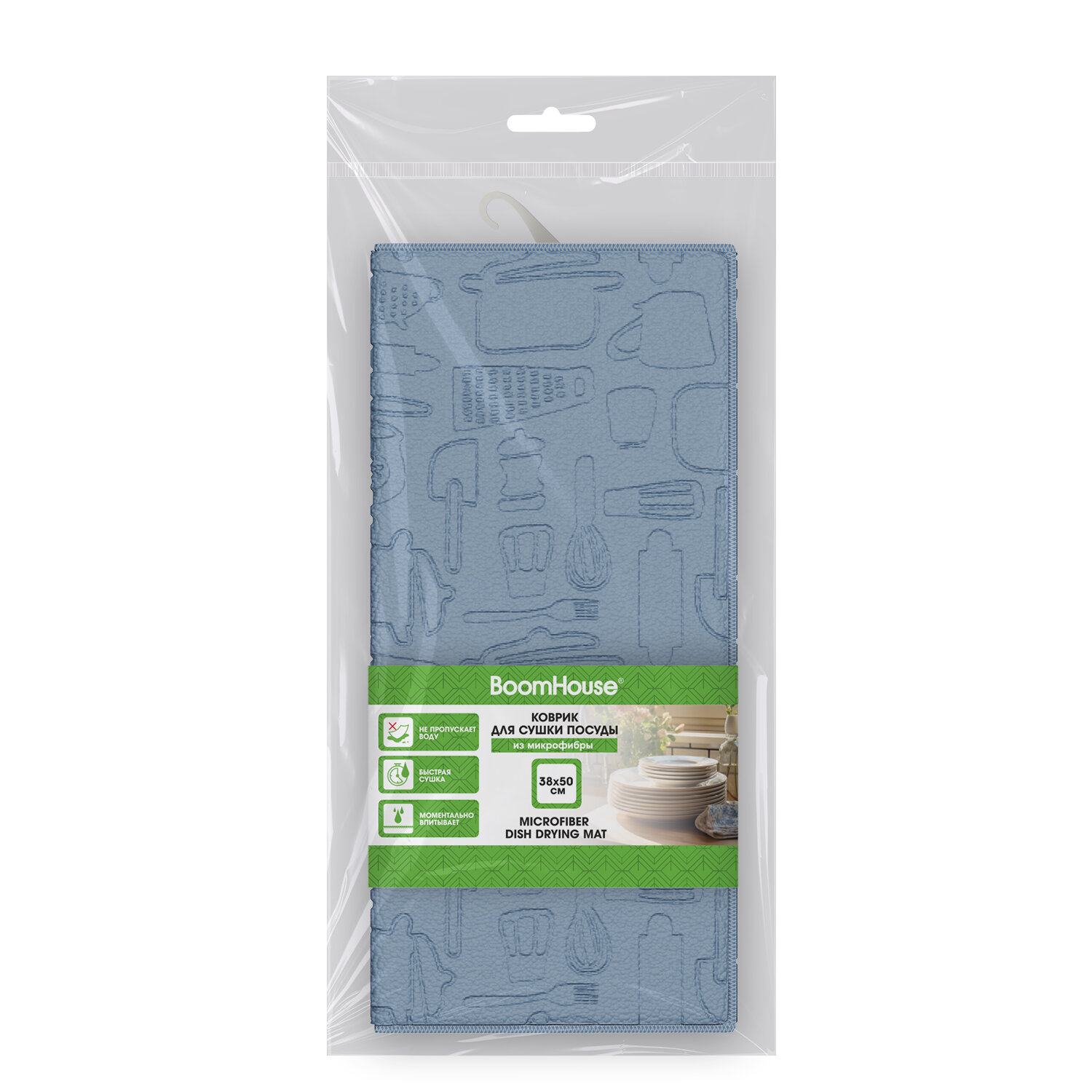 Коврик для сушки посуды из микрофибры, 38х50 см, тиснение, "ПОСУДА", СИНИЙ, 400 г/м2, BOOMHOUSE (БУМХАУС) Код товара: 701148 164,37 ₽ Купить Производитель:BoomHouse Коврик для сушки посуды BOOMHOUSE из микрофибры эффективно впитывает влагу и быстро сохнет, обеспечивая чистоту и порядок на кухне. Стильный и гигиеничный аксессуар идеально подойдёт для тех, кто заботится о собственном комфорте! Коврик для сушки посуды BOOMHOUSE – это современное гигиеничное решение для быстрой сушки любой посуды. Благодаря микрофибре и наличию внутренней прослойки из поролона коврик для сушки посуды BOOMHOUSE моментально впитывает всю влагу, гарантируя, что поверхность под ним и вокруг раковины останется идеально сухой, что предотвращает появление луж и размножение бактерий. Коврик быстро сохнет и прост в уходе. Внешние стороны коврика изготовлены из микрофибры с суммарной плотностью 400 г/м2. Одна из сторон имеет тиснение, которое создает объемный рисунок. Края обработаны оверлоком, что гарантирует долговечность и отсутствие распускания даже после многократных стирок. Толщина – 5 мм. Размер коврика (38x50 см) оптимален для размещения на ограниченном пространстве, но при этом позволяет сушить сразу несколько тарелок или крупную кухонную утварь. Форма коврика – прямоугольная. Каждый коврик BOOMHOUSE поставляется в индивидуальном пакете, а также имеет удобный пластиковый крючок для вывешивания на стойку.Производство: КитайТип коврика: ВлаговпитывающийНазначение: Для сушки посудыМатериал: Микрофибра, поролонРазмер: 38х50 смТолщина: 5 ммРисунок: даТип рисунка: Тиснение "Посуда"Цвет: синийВес: 127 грРазмер упаковки: 1.8 × 39 × 17.6 смОбъём: 0.0014 м3Промежуточная упаковка: 48 штТранспортная упаковка: 48 штШтрих-код: 4606224506845 Файлы Сертификат-1.jpg Сертификат-2.jpg