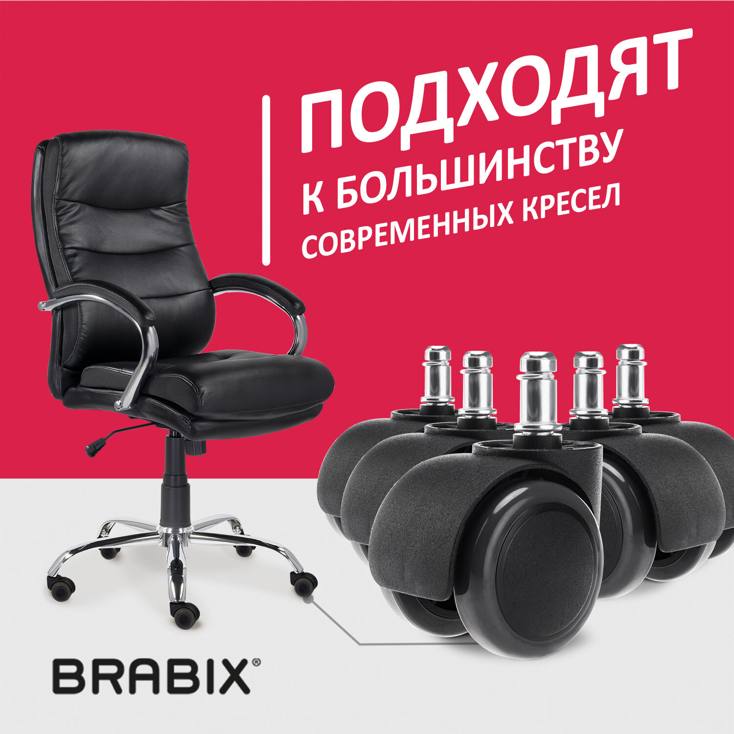 Колеса (ролики) BRABIX для кресла, прорезиненные, КОМПЛЕКТ 5 шт., шток d 11 мм, черные, в коробе Код товара: 532009 565,25 ₽ Купить Производитель:BRABIX Комплект роликов для офисных кресел. Стандартный размер штока – 11х21 мм. Максимальная нагрузка – 45 кг на 1 колесо. Полиуретановое покрытие обеспечивает бесшумный ход и защищает пол от повреждений. Рекомендованы для ламината, паркета, плитки, линолеума. Производство: КитайТип товара: колесаКоличество в комплекте: 5 шт.Серия: Колеса (ролики) BRABIXДиаметр: 50 ммНагрузка: 225 кгДиаметр основания штока: 39 ммСоответствует требованиям ГОСТа: нетМатериал: пластик/полиуретанЦвет: черный/серыйВес: 568 грРазмер упаковки: 6.1 × 27.5 × 9.2 смОбъём: 0.0019 м3Промежуточная упаковка: 30 штТранспортная упаковка: 30 штШтрих-код: 4606224273341 Файлы Сертификат-1.jpg Сертификат-2.jpg Сертификат-3.jpg Сертификат-4.jpg Сертификат-5.jpg Сертификат-6.jpg Сертификат-7.jpg Сертификат-8.jpg Сертификат-9.jpg Сертификат-10.jpg Сертификат-11.jpg Сертификат-12.jpg Сертификат-13.jpg Сертификат-14.jpg Сертификат-15.jpg Сертификат-16.jpg Сертификат-17.jpg Сертификат-18.jpg Сертификат-19.jpg Сертификат-20.jpg Сертификат-21.jpg Сертификат-22.jpg Сертификат-23.jpg Сертификат-24.jpg Сертификат-25.jpg Сертификат-26.jpg