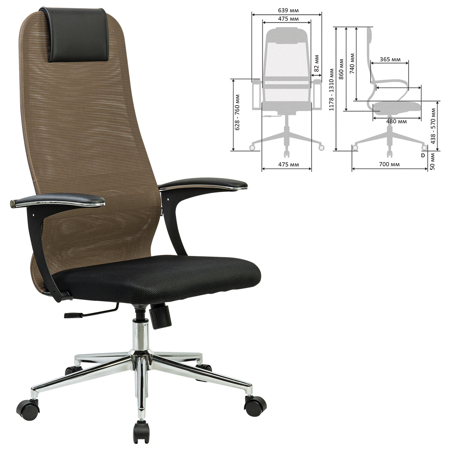 Кресло BRABIX PREMIUM "Ultimate EX-801" хром, плотная двойная сетка Х2, черное/коричневое Код товара: 532920 13 733,95 ₽ Купить Производитель:BRABIX Кресла серии Ultimate - это философия комфорта и абсолютного качества. Утонченный, современный дизайн, в первую очередь, продиктован стремлением к эргономике, сочетающей в себе удобство эксплуатации и внимание к здоровью пользователя. Спинка высокая, эргономичной формы, с ярко выраженной поясничной поддержкой. Спинка имеет сверхпрочный стальной каркас с износостойким полимерным покрытием черного цвета. Спинка снабжена мягким комфортным подголовником. Сиденье средней жесткости, объемное, на столярном каркасе. Обивка спинки из износоустойчивой "дышащей" сетчатой ткани двойного плетения. Подлокотники стальные нового поколения, с хромированными молдингами и мягкими накладками. Пятилучие металлическое хромированное, стильное и прочное. Модель оснащена механизмом качания "Top-Gun" с регулировкой под вес и возможностью фиксации в рабочем положении.Производство: РоссияМатериал обивки: ткань/сетка Х2Максимальная нагрузка: до 150 кгЦвет обивки: черный/коричневыйТип механизма кресла: "Топ-ган" - качание с регулировкой под вес и фиксацией в 1 положенииСетчатая спинка: даКрестовина (пятилучие): металл/хромированный металлПодлокотники: металлические с мягкими накладкамиМинимальная высота кресла: 1178 ммМаксимальная высота кресла: 1310 ммШирина кресла: 639 ммМинимальная высота до сиденья: 438 ммМаксимальная высота до сиденья: 570 ммСиденье ширина: 475 ммСиденье глубина: 480 ммСпинка ширина: 475 ммСпинка высота: 860 ммСерия: EX-801Соответствует требованиям ГОСТа: ГОСТ 19917-93Поставляется в разобранном виде: даВес: 15,66 кгРазмер упаковки: 90.5 × 67.5 × 27.5 смОбъём: 0.168 м3Промежуточная упаковка: 1 штТранспортная упаковка: 1 штШтрих-код: 4606224428895 Файлы Приложение-1.pdf Приложение-2.pdf Сертификат-1.jpg Сертификат-2.jpg Сертификат-3.jpg