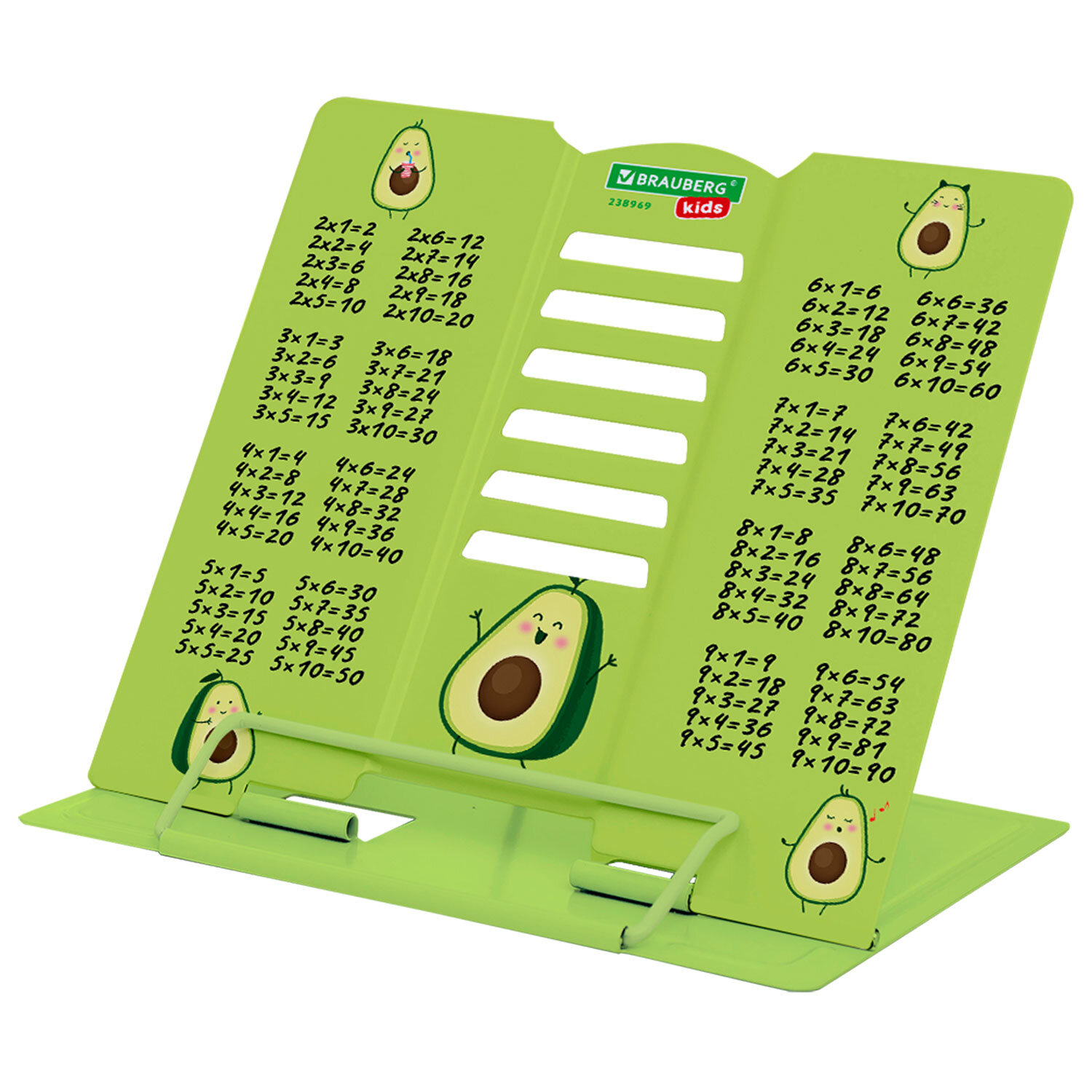 Подставка для книг и учебников BRAUBERG KIDS mini "Авокадо" с таблицей умножения, регулируемый угол наклона, металлическая Код товара: 238969 316 ₽ Купить Производитель:BRAUBERG KIDS Подставка для книг и учебников BRAUBERG KIDS mini станет незаменимым помощником для школьников и любителей чтения. Использование подставки для книг способствует формированию правильной осанки. Яркий дизайн станет изюминкой в любом интерьере. Подставка полностью выполнена из металла, поэтому отлично подойдет для надежной фиксации тяжелых и объемных учебных материалов и книг. Оригинальный дизайн понравится школьнику любого возраста, таблица умножения будет полезна в учебе. Регулируемый угол наклона обеспечивает удобство при работе с текстом, облегчает чтение и выполнение домашней работы. На нижней части подставки предусмотрены противоскользящие элементы. Размер подставки – 150х150х130 мм. Цвет – зеленый. Подставка упакована в прозрачный пакет с картонным европодвесом.Производство: КитайНазначение: для книг и учебниковРегулируемый угол наклона: даДержатель для страниц: нижнийСерия: Smart Shelf miniМатериал корпуса: металлВысота: 15 смШирина: 15 смЦвет: зеленыйДизайн: АвокадоУпаковка: пакет с картонным европодвесомВес: 250 грРазмер упаковки: 1.5 × 15.2 × 12.8 смОбъём: 0.0005 м3Промежуточная упаковка: 48 штТранспортная упаковка: 48 штШтрих-код: 4606224508481