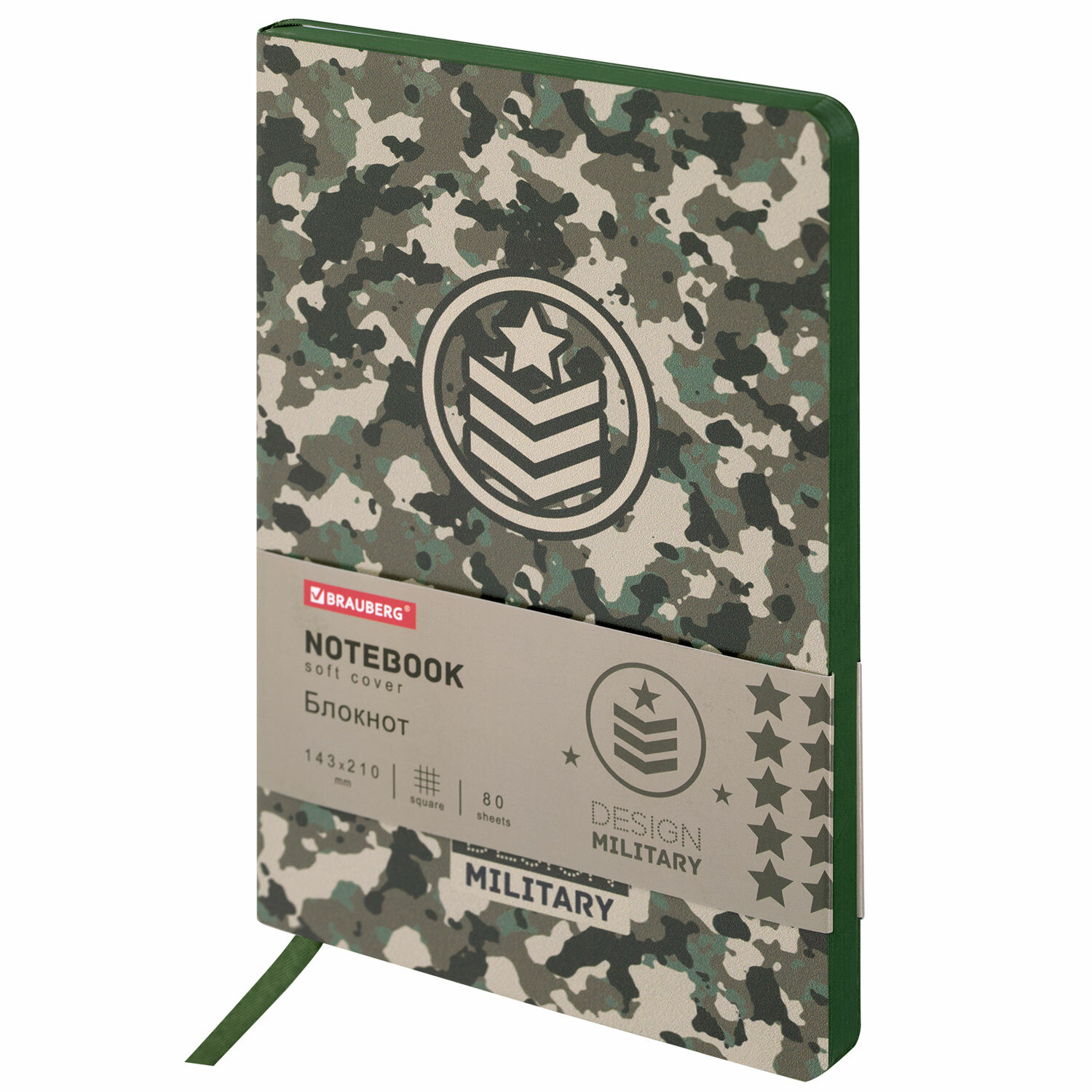 Блокнот А5 (143x210 мм), BRAUBERG VISTA "Military", под кожу, гибкий, 80 л. Ликвидация Код товара: 112085 142,02 ₽ Купить Производитель:BRAUBERG Блокнот BRAUBERG VISTA "Military" выполнен в оригинальном стиле. Линовка внутреннего блока - клетка (5х5 мм), которая пользуется большим спросом у покупателей. Внутренний блок включает 80 листов белой бумаги плотностью 70 г/м2. Благодаря стандартному формату А5 блокнот удобно использовать как в офисе, так и на выездных деловых встречах. Интегральная (мягкая) обложка с полноцветной печатью делает блокнот неповторимым и запоминающимся. Срез блокнота прокрашен, что придает ему особый шарм. Дополнением является закладка-ляссе, с помощью которой можно быстро открыть блокнот на нужной странице. Бизнес-блокнот является непременным условием в образе делового человека. Его презентабельность, привлекательность, престижность и местами стоимость создают общее впечатление о персоне.Производство: КитайТип товара: бизнес-блокнотСерия: VistaФормат: А5Количество листов: 80Обложка: интегральнаяТекстура обложки: эко-кожаОбложка подходит для тиснения: блинтового, горячего, фольгойЗастежка: нетВнутренний блок: офсетПлотность внутреннего блока: 70 г/м2Цвет внутреннего блока: белыйЛиновка блока: клеткаСкрепление блока: сшивкаЗакругленные уголки: даЗакладка-ляссе: даЦвет обложки: с дизайномДизайн обложки: MilitaryИндивидуальная упаковка: даКоличество цветов в упаковке: 1Вес: 245 грРазмер упаковки: 1 × 21 × 14.6 смОбъём: 0.0005 м3Промежуточная упаковка: 20 штТранспортная упаковка: 20 штШтрих-код: 4606224284682 Сертификат-1.jpg Сертификат-2.jpg Сертификат-3.jpg