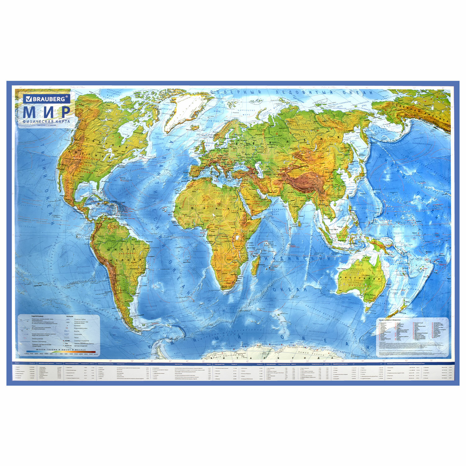 Карта мира физическая 120х78 см, 1:25М, с ламинацией, интерактивная, в тубусе, BRAUBERG Код товара: 112380 551,43 ₽ Купить Производитель:BRAUBERG На географической карте мира BRAUBERG отображаются названия континентов, океанов и морей, рек, гор, течений. Отправьтесь в волшебное путешествие вместе с интерактивной картой мира BRAUBERG благодаря приложению IQ Globen! Посетите самые удивительные места нашей планеты, узнайте о политическом устройстве разных стран, о населяющих планету животных и растениях. Рассмотрите главные мировые достопримечательности или запустите ракету в космос! Скачайте приложение IQ Globen на IOS или Android, в главном меню выберите "Карты", откройте карту мира и наведите камеру на один из материков. Эффект дополненной реальности не заставит себя ждать. Герои приложения помогут в изучении нового. Настенная физическая карта мира с масштабом 1:25 000 000 обладает размером 120х78 см. Выполнена из ламинированного картона плотностью 170 г/м2. Поставляется в тубусе.Производство: РоссияВид карты: Мир / физическаяРазмещение: настенноеВысота: 78 смШирина: 120 смМасштаб: 1:25 000 000Материал: мелованный картонСерия: World mapПлотность: 170 г/м2Покрытие: ламинацияУпаковка: тубусВес: 412 грРазмер упаковки: 6.6 × 84.1 × 6.6 смОбъём: 0.0044 м3Промежуточная упаковка: 9 штТранспортная упаковка: 9 шт Файлы Сертификат-1.jpg Сертификат-2.jpg Сертификат-3.jpg Сертификат-4.jpg Сертификат-5.jpg Сертификат-6.jpg Сертификат-7.jpg Сертификат-8.jpg Сертификат-9.jpg Сертификат-10.jpg Сертификат-11.jpg Сертификат-12.jpg Сертификат-13.jpg Сертификат-14.jpg Сертификат-15.jpg Сертификат-16.jpg Сертификат-17.jpg Сертификат-18.jpg Сертификат-19.jpg Сертификат-20.jpg Сертификат-21.jpg Сертификат-22.jpg Сертификат-23.jpg Сертификат-24.jpg Сертификат-25.jpg Сертификат-26.jpg