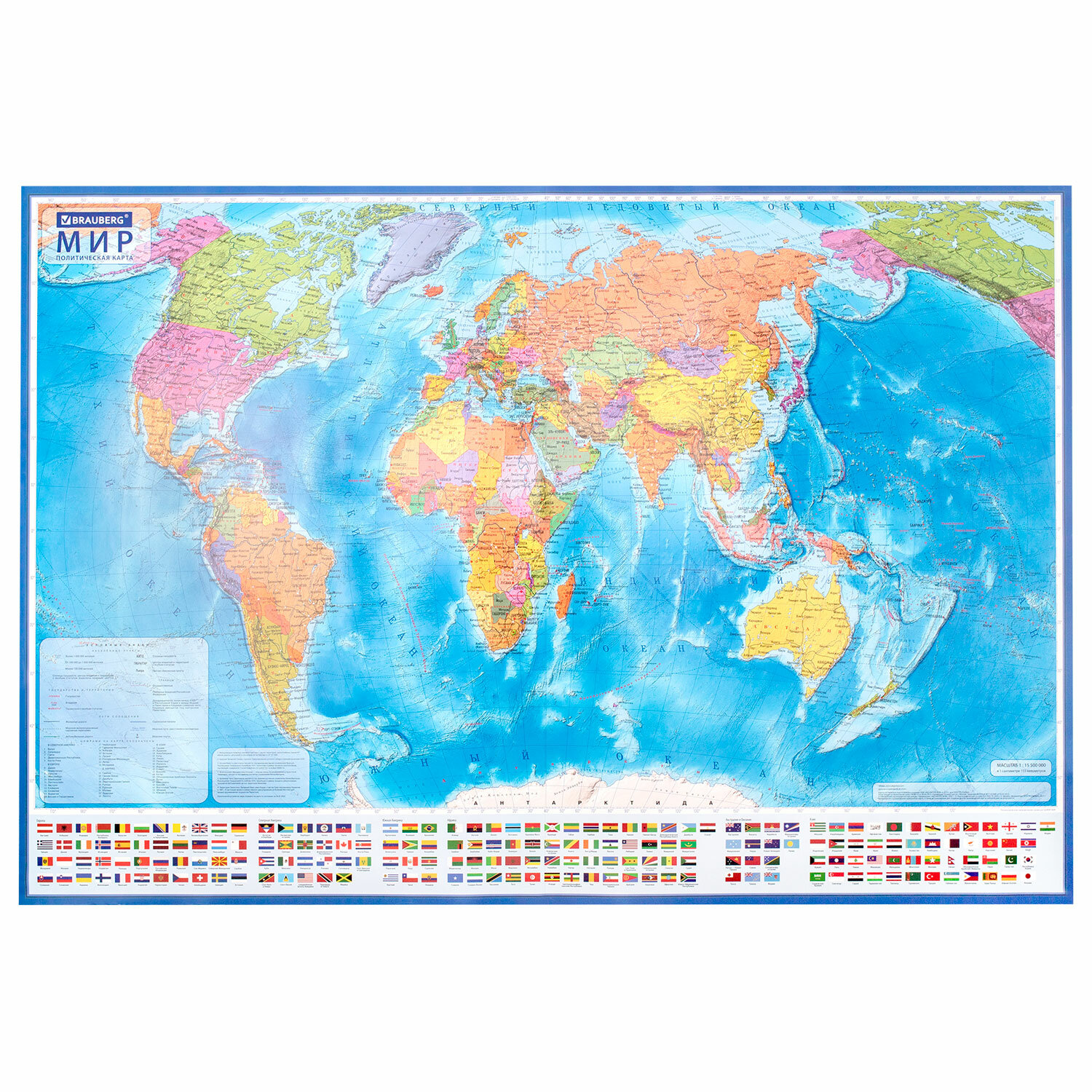 Карта мира политическая 199х134 см, 1:15,5М, с ламинацией, интерактивная, европодвес, BRAUBERG Код товара: 112387 1 097,91 ₽ Купить Производитель:BRAUBERG На политической карте мира BRAUBERG отображается современное политико-административное устройство мира: названия государств и их столицы, крупнейшие города и границы стран. Ниже расположены государственные флаги. Окунитесь в волшебный мир географии вместе с интерактивной картой мира BRAUBERG благодаря приложению IQ Globen! Начните свое путешествие в другие страны, наведя смартфон на государственные флаги. Помимо общих сведений о государствах, вы сможете узнать интересные факты о жителях различных стран, познакомитесь с их обычаями и традициями. Возможности приложения на этом не заканчиваются: оно поведает вам о растительном и животном мире каждого континента, расскажет о первооткрывателях материков и островов, а также продемонстрирует известные достопримечательности. Скачайте приложение IQ Globen на IOS или Android, в главном меню выберите "Карты", откройте карту мира и наведите камеру на один из материков. Эффект дополненной реальности не заставит себя ждать. Персонажи из приложения помогут в изучении мира. Настенная карта мира с масштабом 1:15 500 000 обладает размером 199х134 см. Выполнена из ламинированного картона плотностью 170 г/м2. Поставляется в упаковке с европодвесом.Производство: РоссияВид карты: Мир / политическаяРазмещение: настенноеВысота: 134 смШирина: 199 смМасштаб: 1:15 500 000Материал: мелованный картонСерия: PoliticПлотность: 170 г/м2Покрытие: ламинацияУпаковка: пакет с европодвесомВес: 649 грРазмер упаковки: 6.4 × 134.5 × 6.4 смОбъём: 0.0074 м3Промежуточная упаковка: 9 штТранспортная упаковка: 9 шт Файлы Сертификат-1.jpg Сертификат-2.jpg Сертификат-3.jpg Сертификат-4.jpg Сертификат-5.jpg Сертификат-6.jpg Сертификат-7.jpg Сертификат-8.jpg Сертификат-9.jpg Сертификат-10.jpg Сертификат-11.jpg Сертификат-12.jpg Сертификат-13.jpg Сертификат-14.jpg Сертификат-15.jpg Сертификат-16.jpg Сертификат-17.jpg Сертификат-18.jpg Сертификат-19.jpg Сертификат-20.jpg Сертификат-21.jpg Сертификат-22.jpg Сертификат-23.jpg Сертификат-24.jpg Сертификат-25.jpg Сертификат-26.jpg