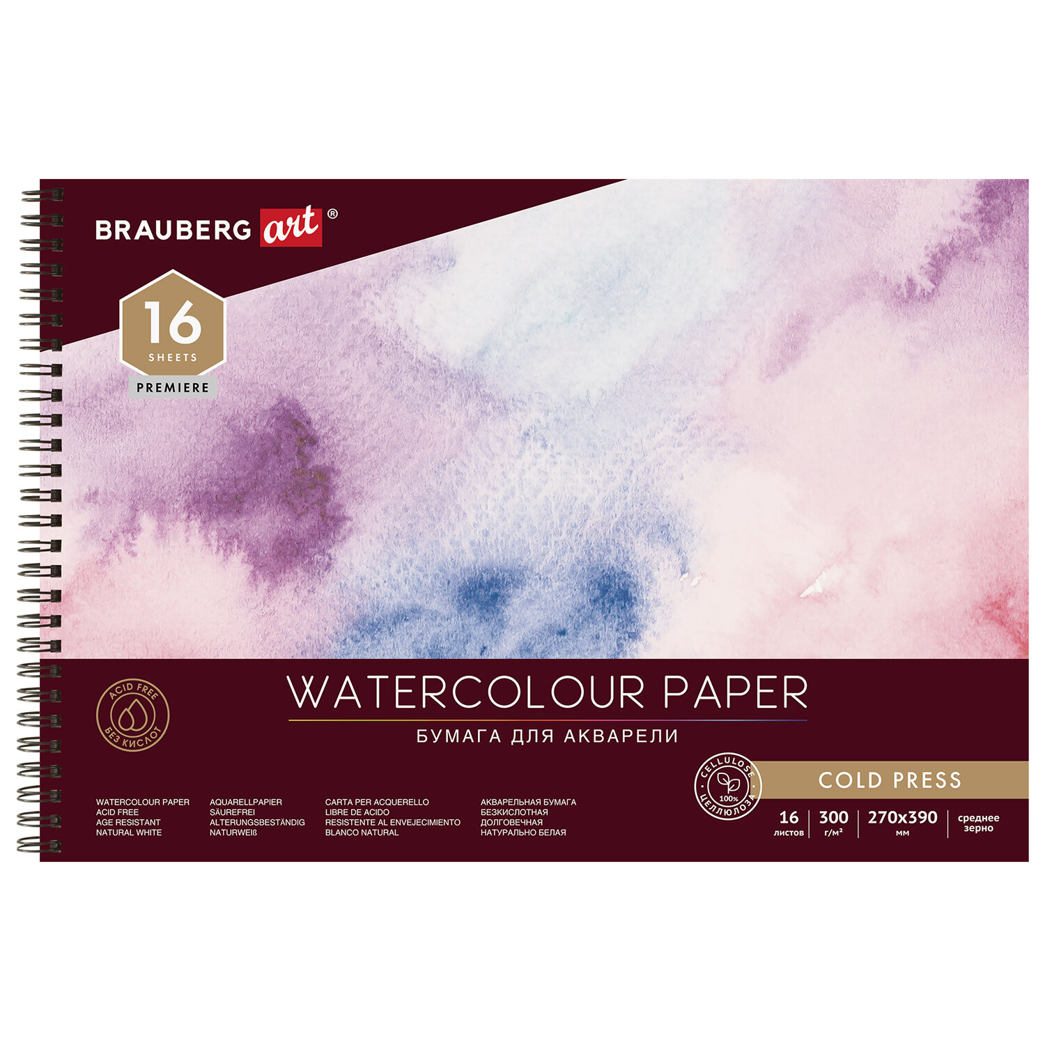 Альбом для акварели, бумага 300 г/м2, 270х390 мм, среднее зерно, 16 листов, гребень, BRAUBERG ART PREMIERE Ликвидация Код товара: 113213 385,69 ₽ Купить Производитель:BRAUBERG ART Альбом для акварели BRAUBERG ART PREMIERE предназначен для профессионалов и людей, увлекающихся живописью. В альбоме использована профессиональная импортная акварельная бумага. Альбом с профессиональной акварельной импортной бумагой плотностью 300 г/м2 из 100% целлюлозы. Содержит жесткую подложку, выполняющую роль планшета. Прекрасно подойдет как для мокрой акварели (по-сырому), так и для классической техники акварели. При впитывании воды бумага не деформируется, что обеспечивает равномерную и плавную заливку, стойка к стиранию, скоблению. Идеально держит цвет, тона останутся выразительными и экспрессивными. Без кислот, что гарантирует долговечность ваших творений! Бумага BRAUBERG ART PREMIERE подойдет как для начинающих любителей акварельной живописи, так и для выражения самых смелых идей профессионалов.Производство: КитайФормат: 270х390 ммСерия: PremiereПлотность внутреннего блока: 300 г/м2Тип товара: альбом для акварелиКоличество листов: 16Внутренний блок: бумага для акварелиШирина: 270 ммДлина: 390 ммТекстура: среднее зерноЦвет внутреннего блока: белыйБелизна 100%: даБез кислот: даОбложка: мелованный картонТип скрепления: гребеньЖесткая подложка: даДизайн обложки: АкварельКоличество дизайнов в упаковке: 1 шт.Индивидуальная упаковка: даВес: 735 грРазмер упаковки: 1.5 × 39.4 × 26.9 смОбъём: 0.0018 м3Промежуточная упаковка: 15 штТранспортная упаковка: 30 штШтрих-код: 4606224325095 Сертификат-1.jpg Сертификат-2.jpg Сертификат-3.jpg